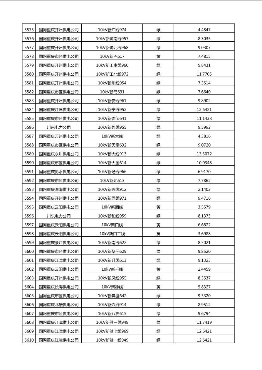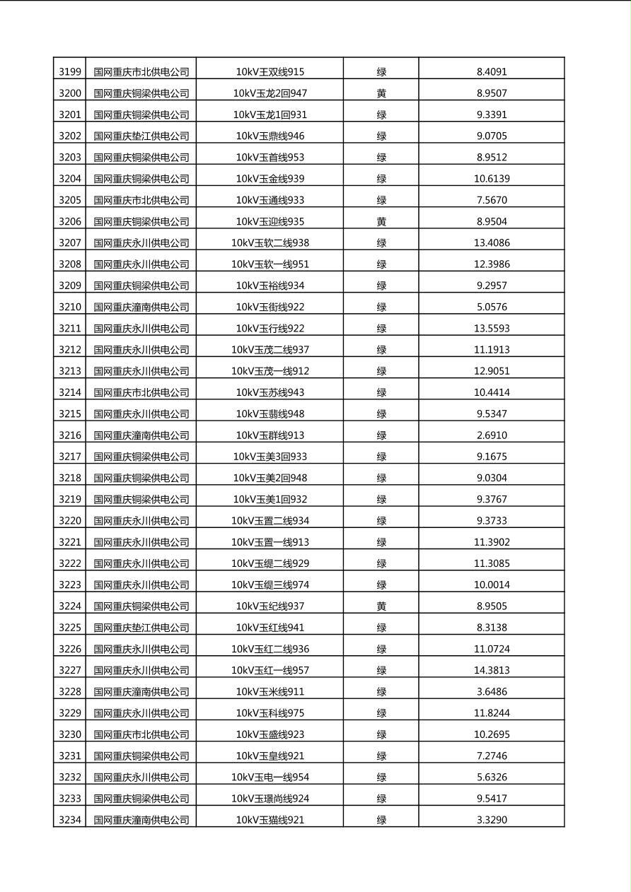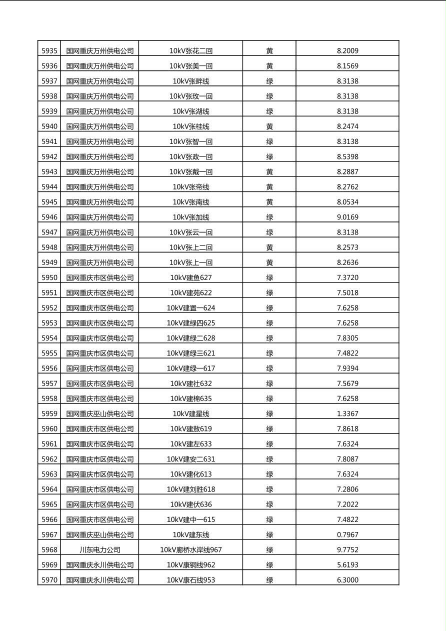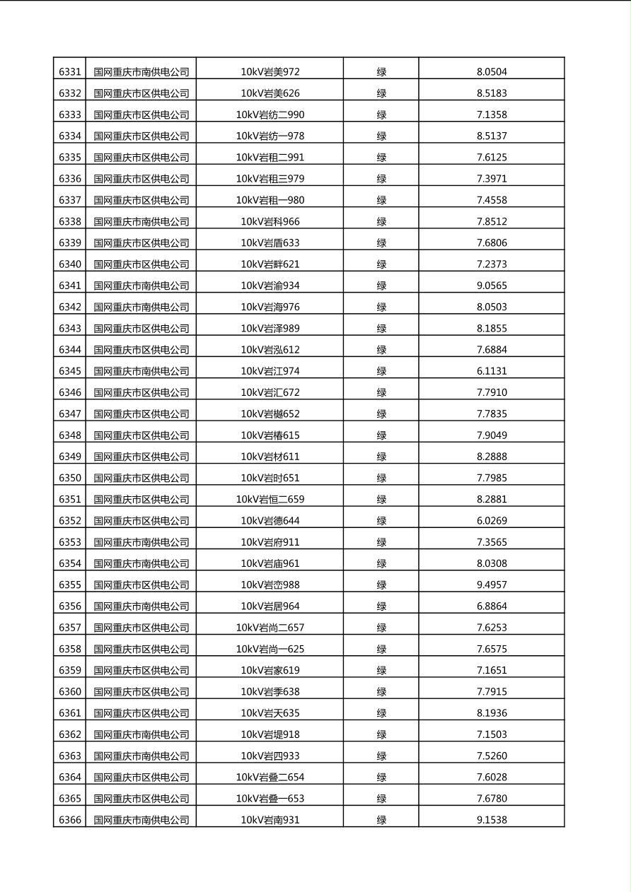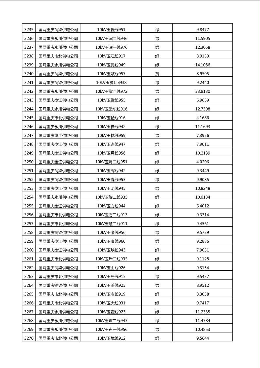 国网重庆市电力公司2025年第4季度分布式光伏可开放容量公示(10千伏配线)