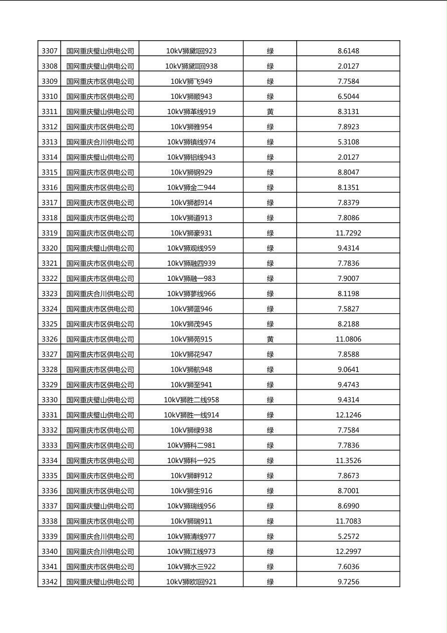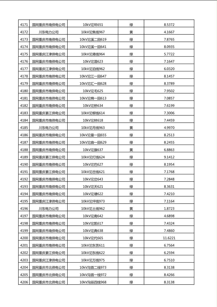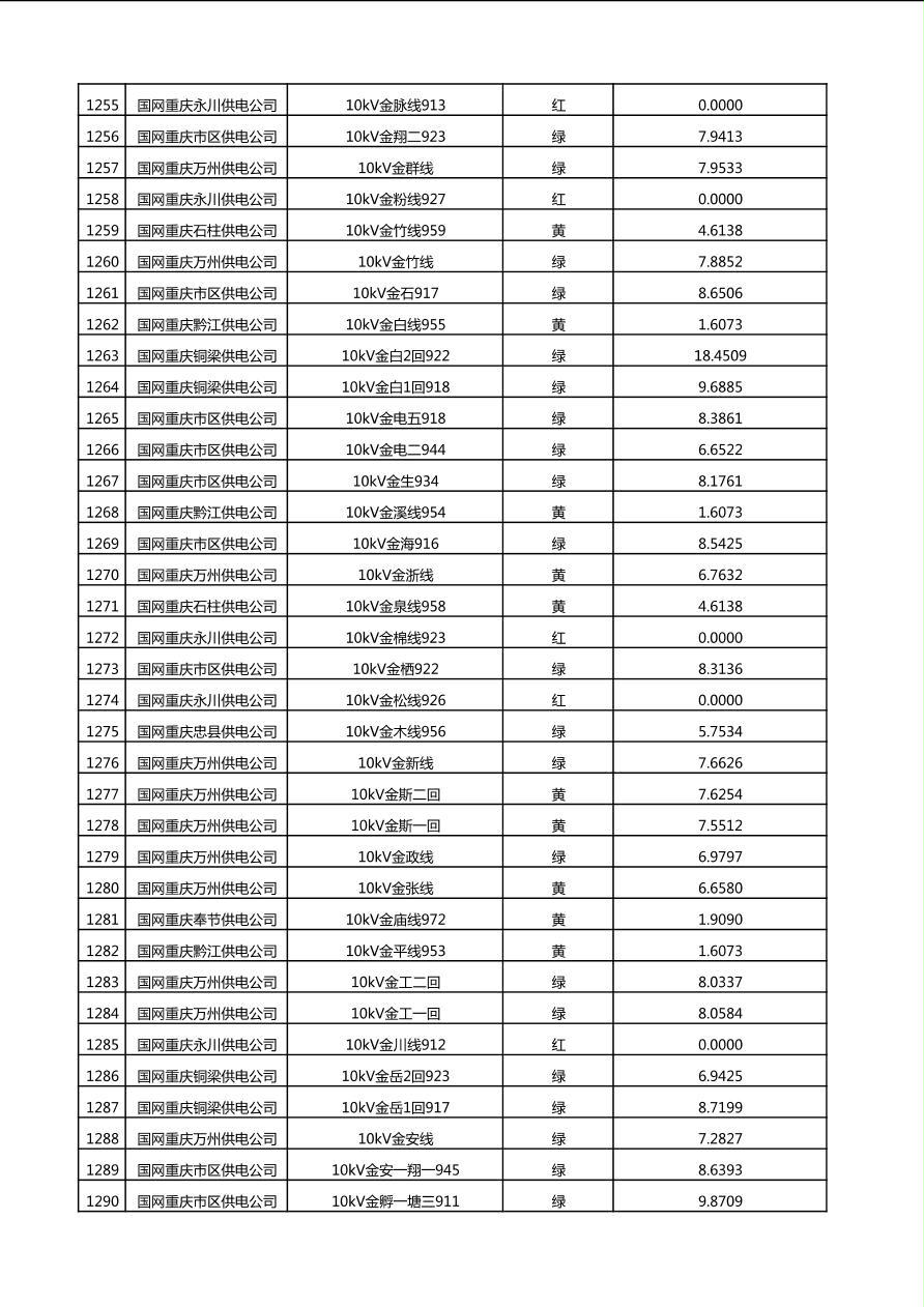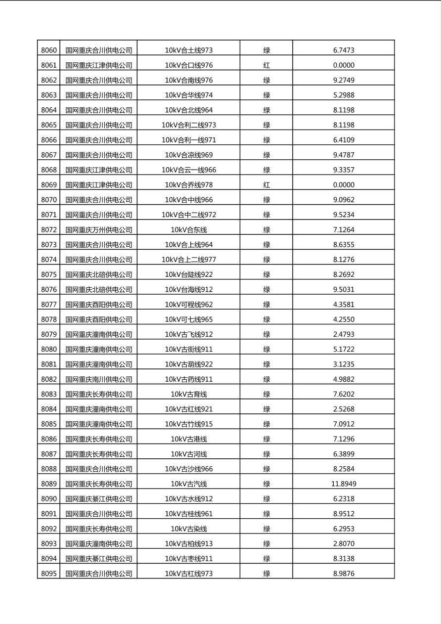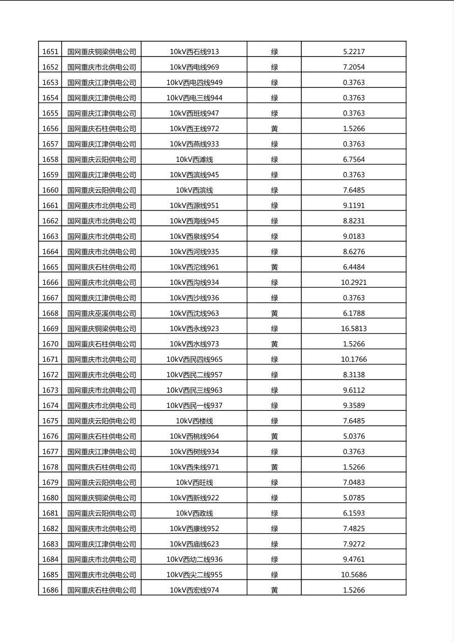 国网重庆市电力公司2025年第4季度分布式光伏可开放容量公示(10千伏配线)