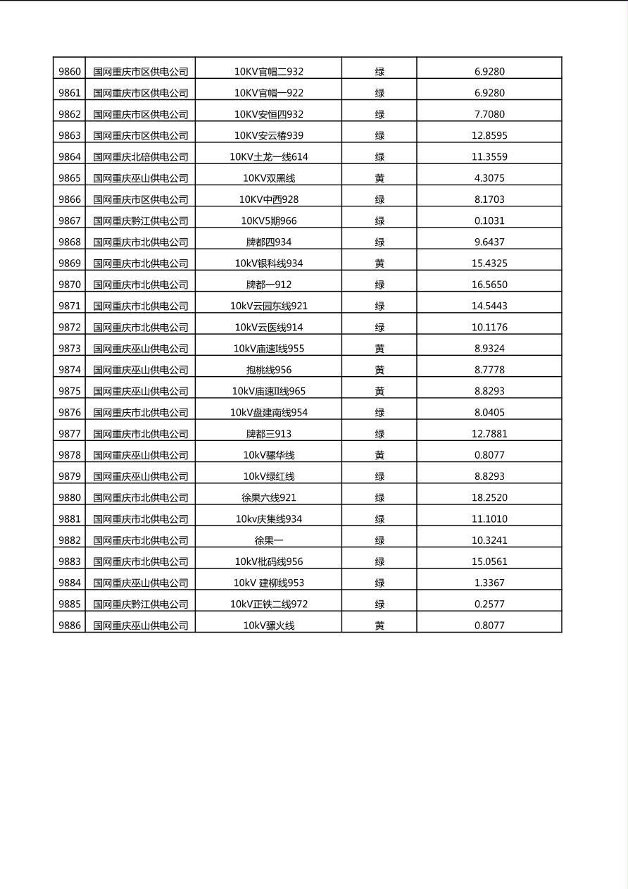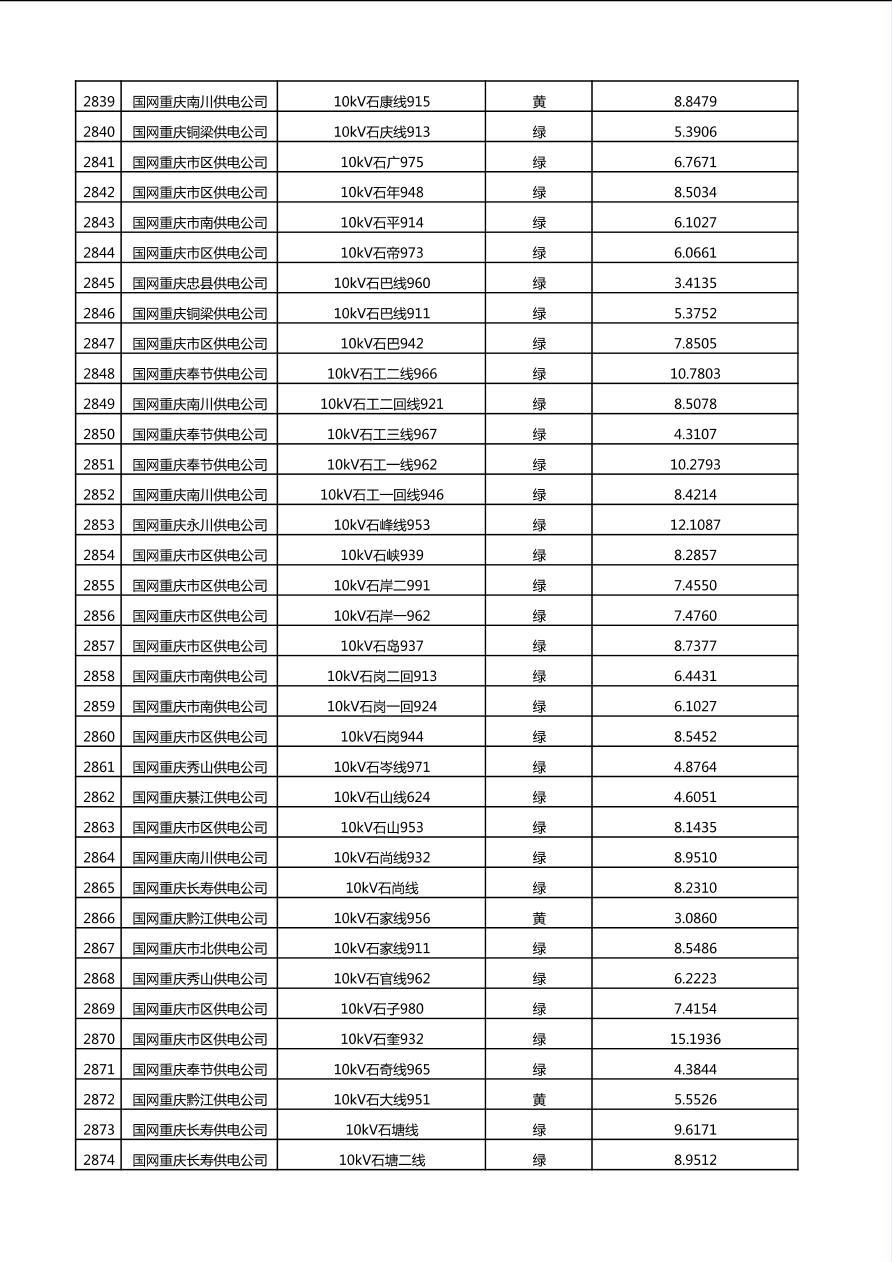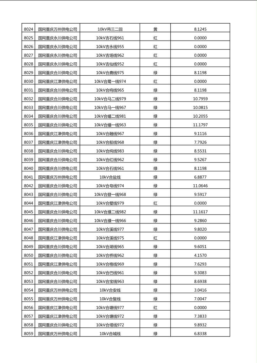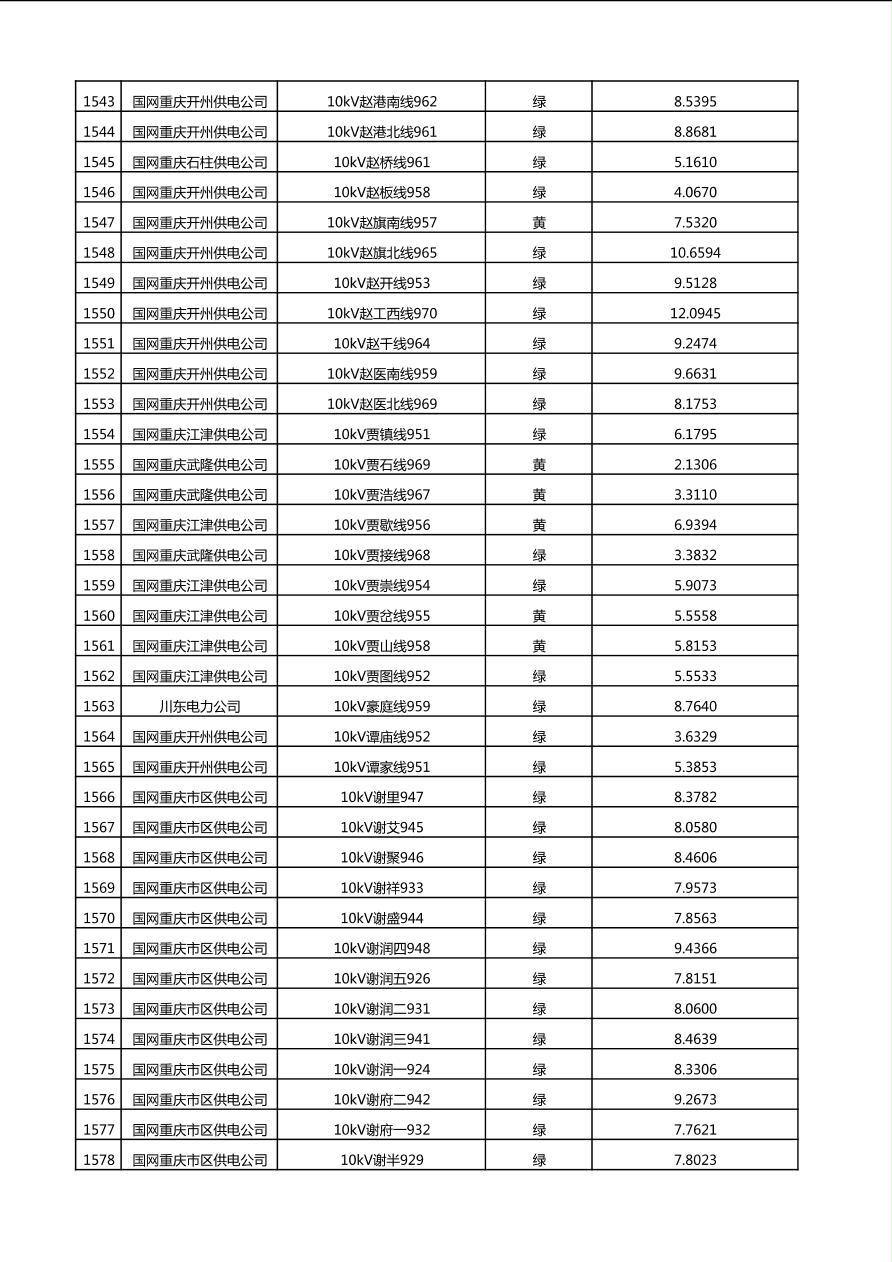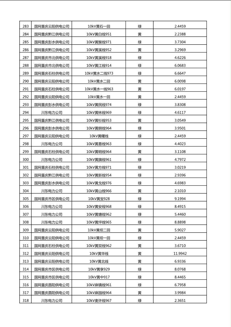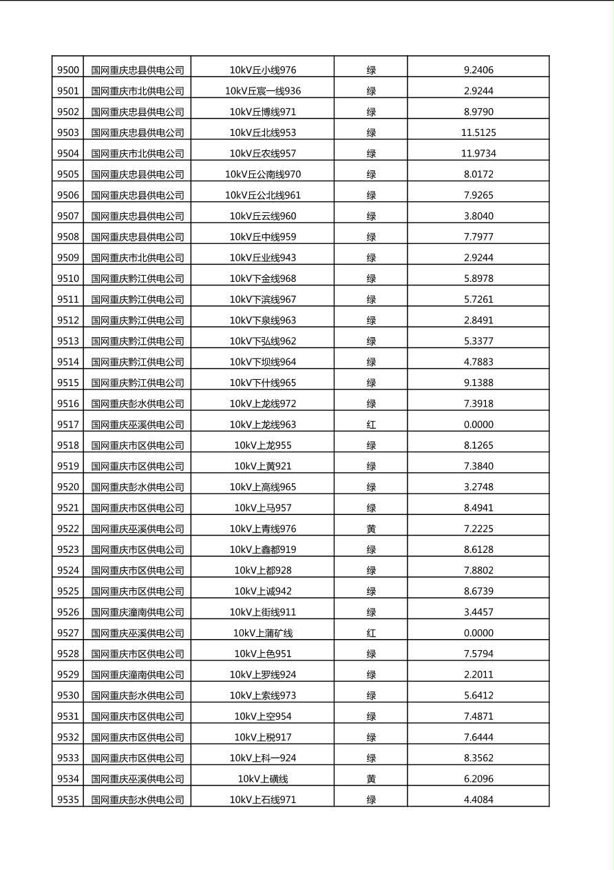 国网重庆市电力公司2025年第4季度分布式光伏可开放容量公示(10千伏配线)
