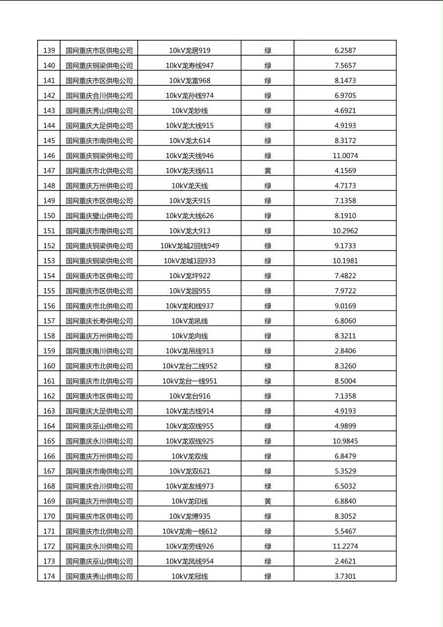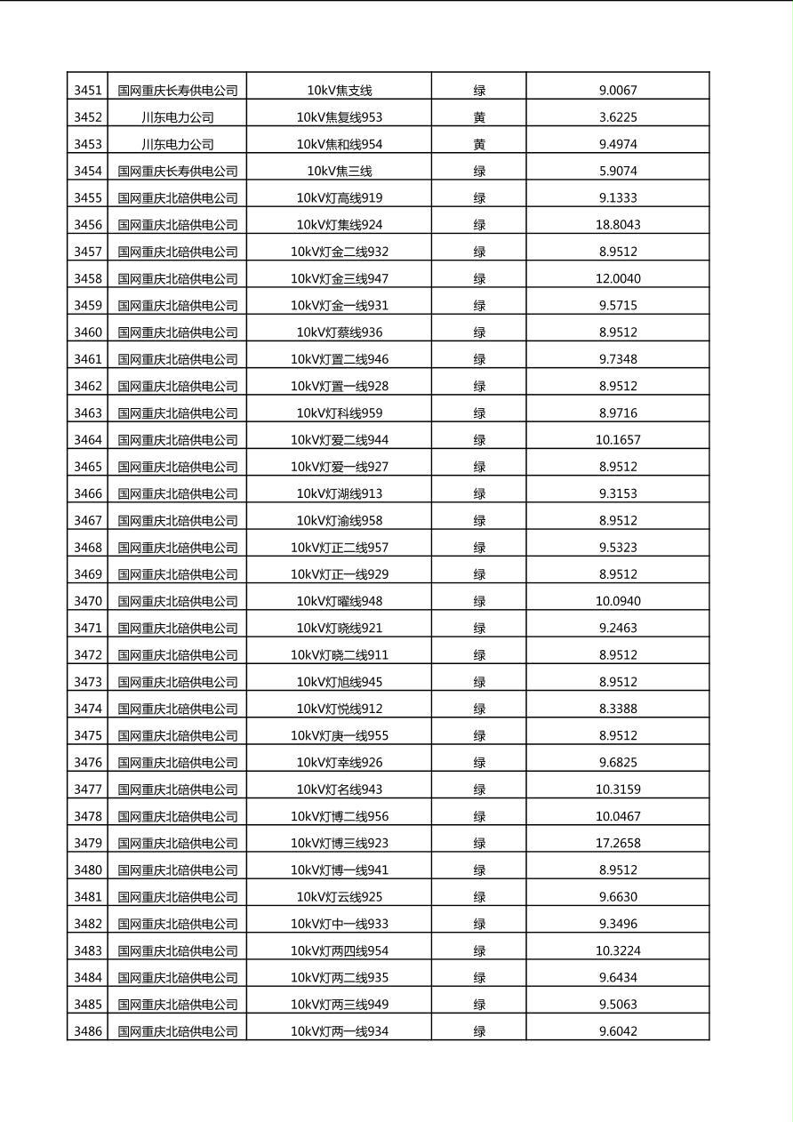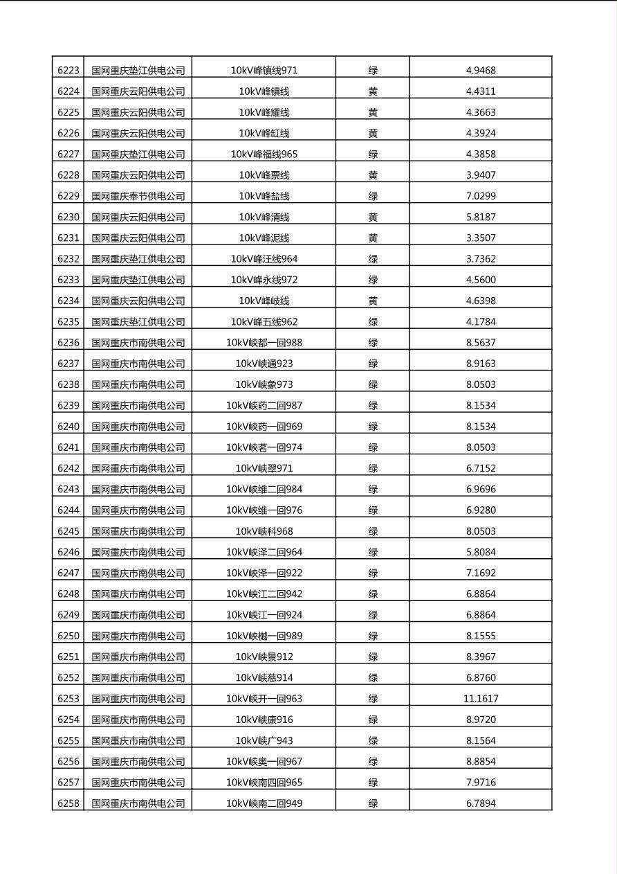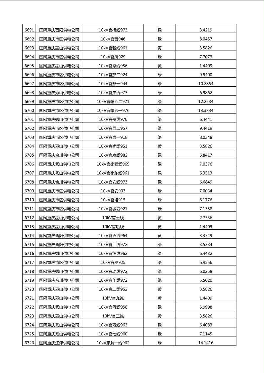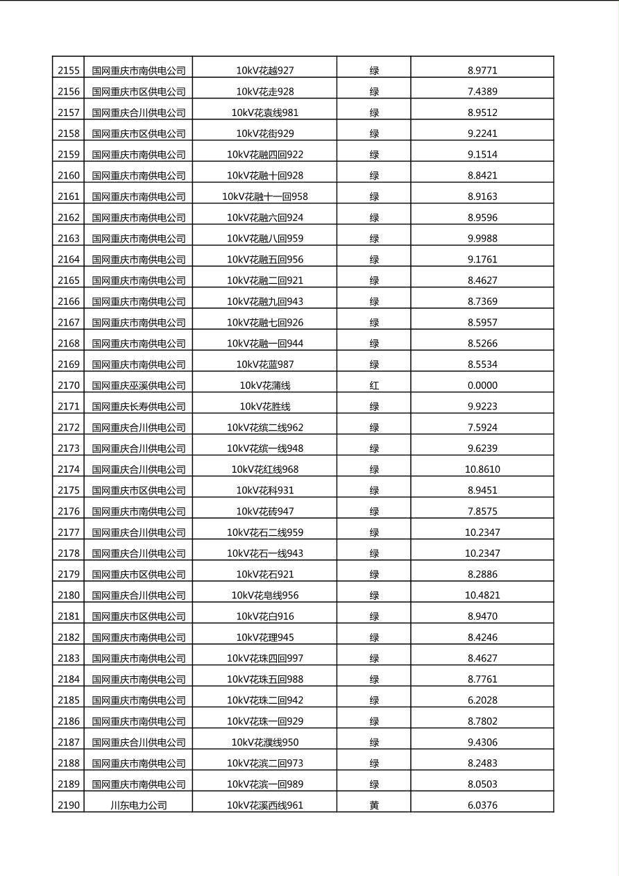 国网重庆市电力公司2025年第4季度分布式光伏可开放容量公示(10千伏配线)