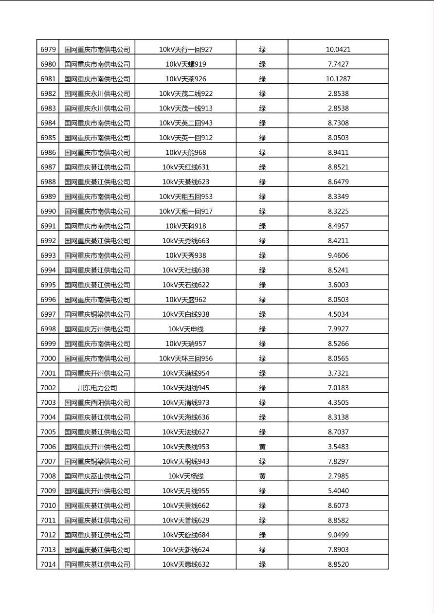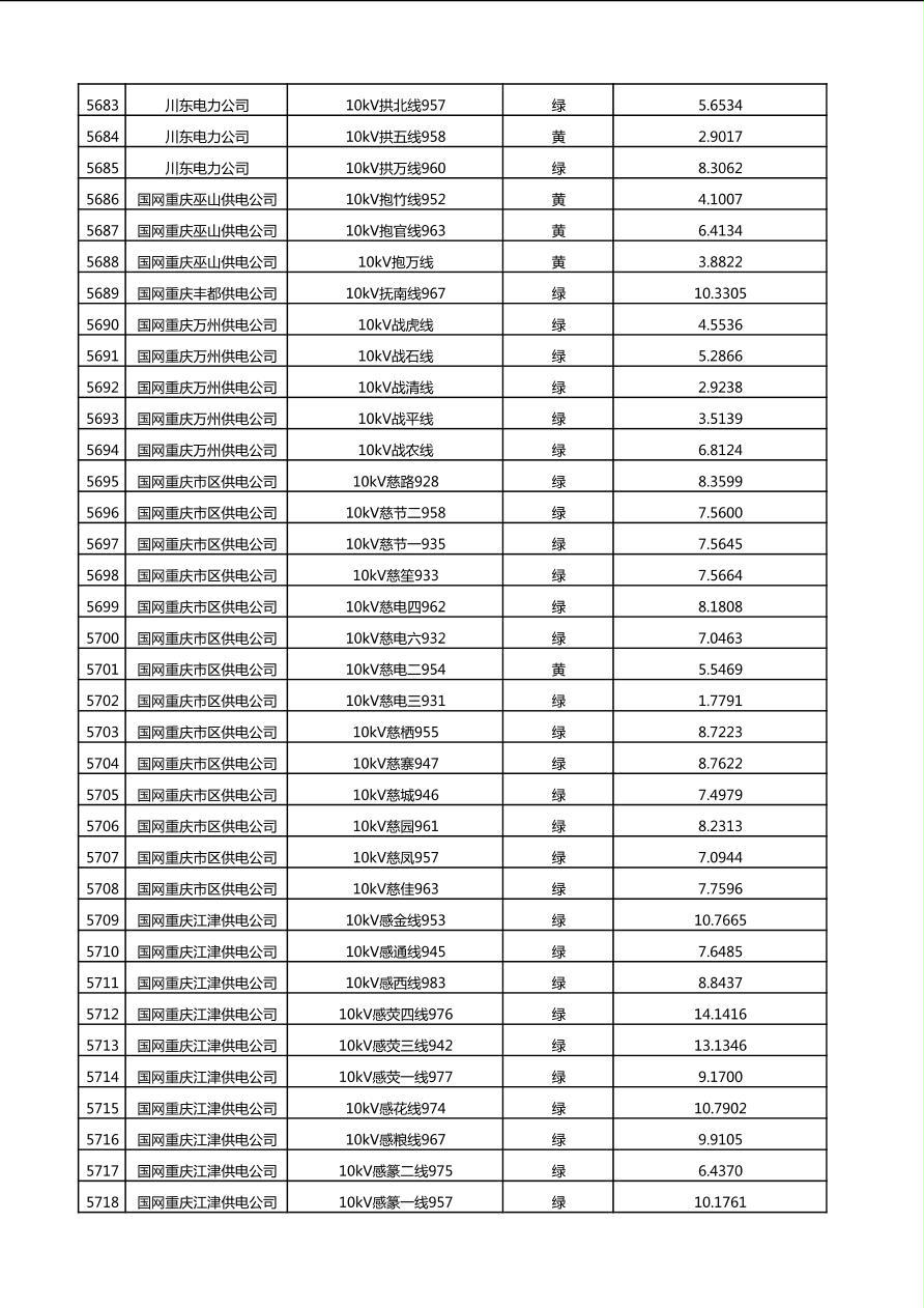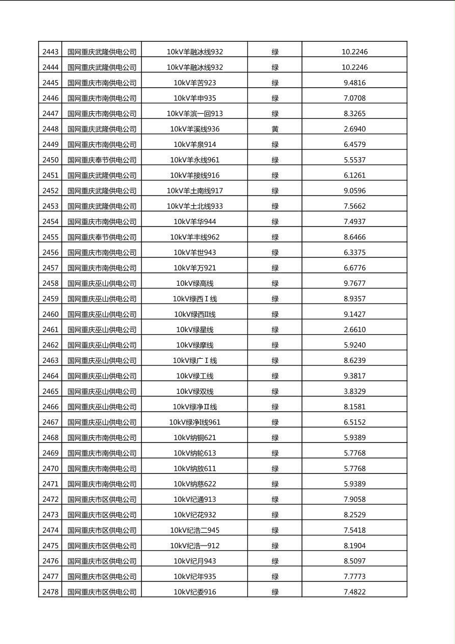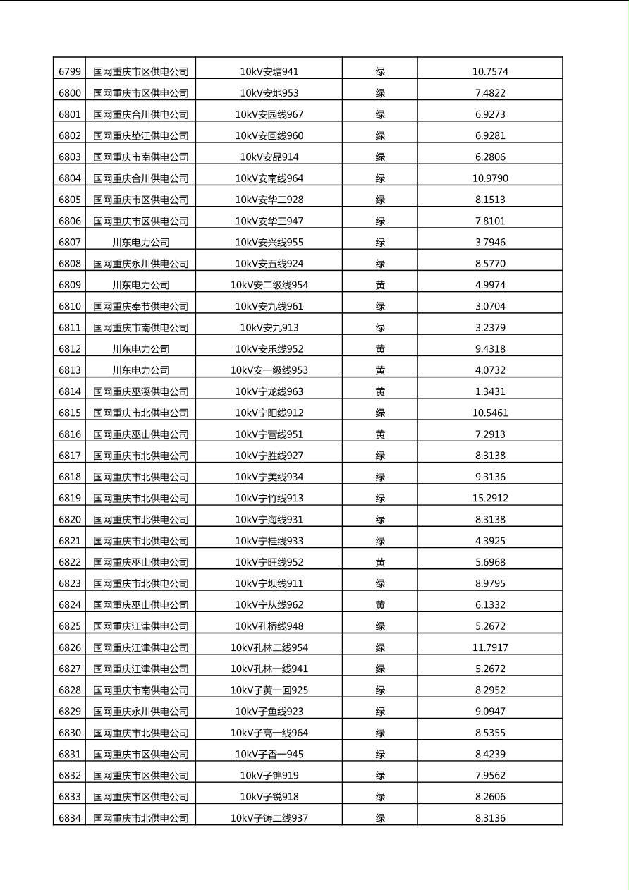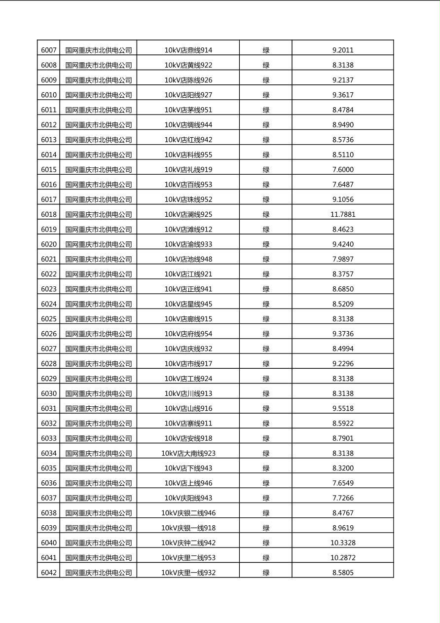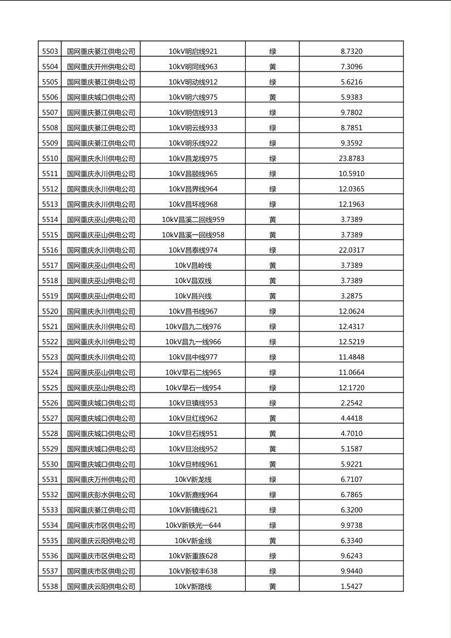 国网重庆市电力公司2025年第4季度分布式光伏可开放容量公示(10千伏配线)