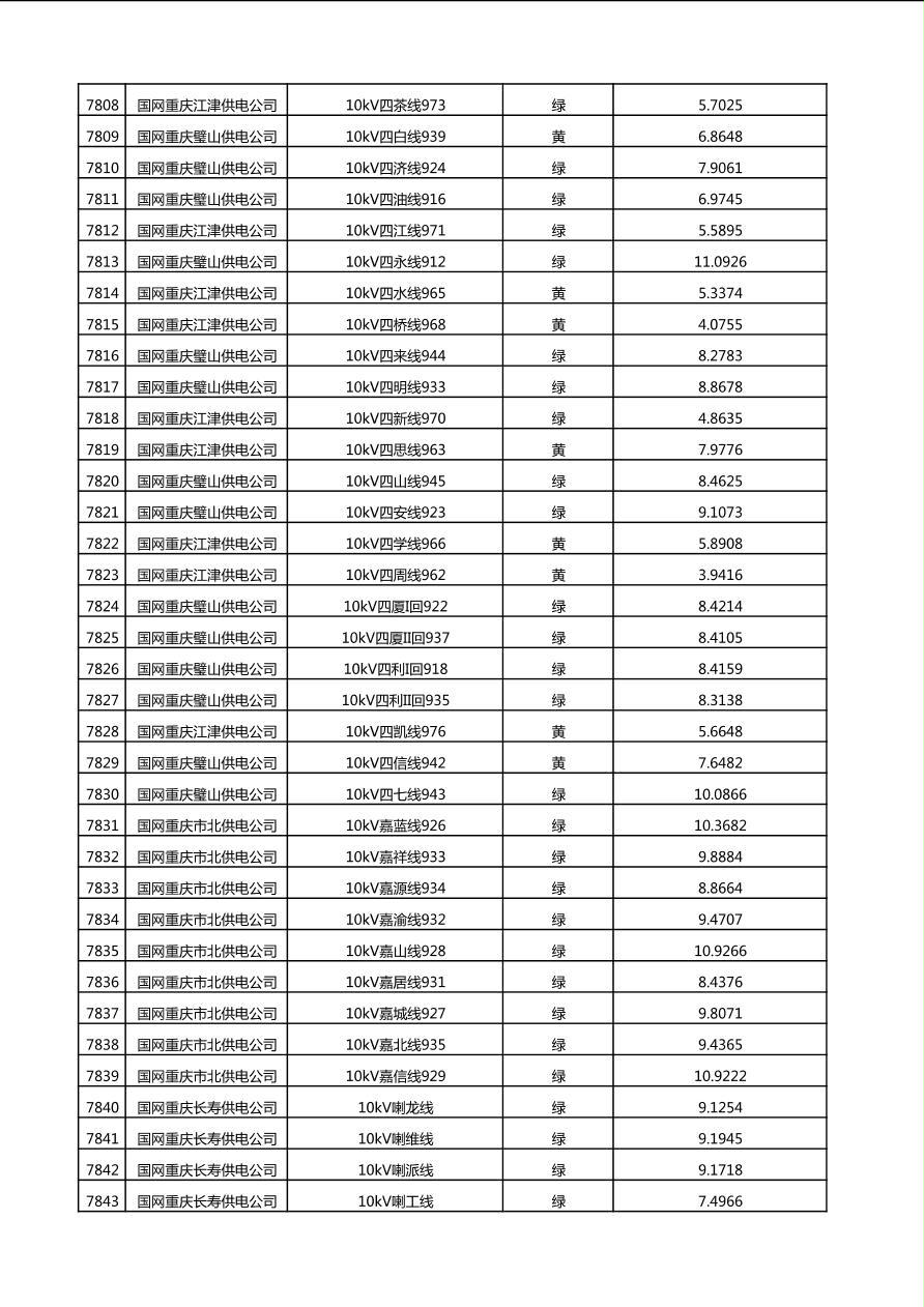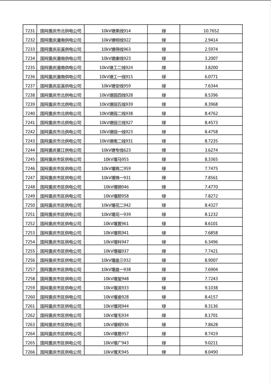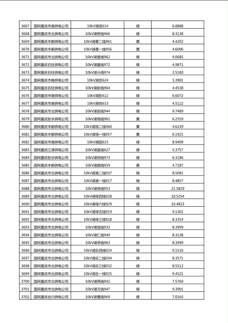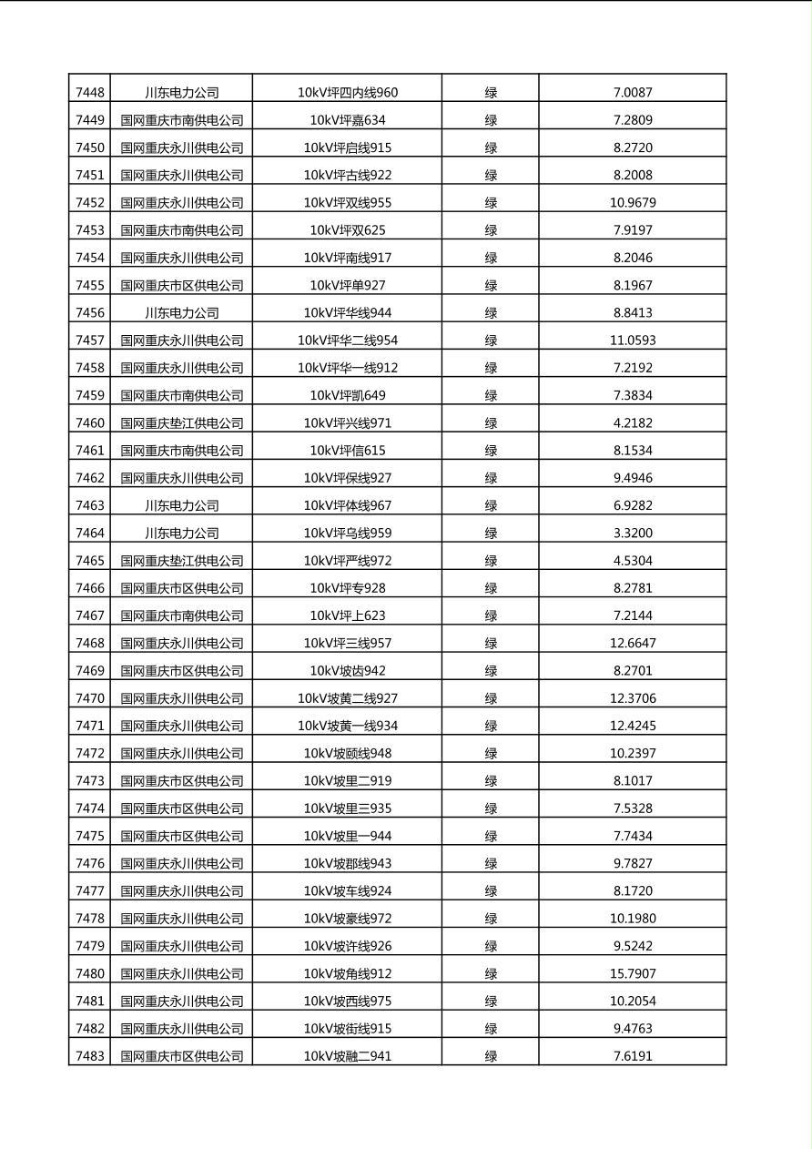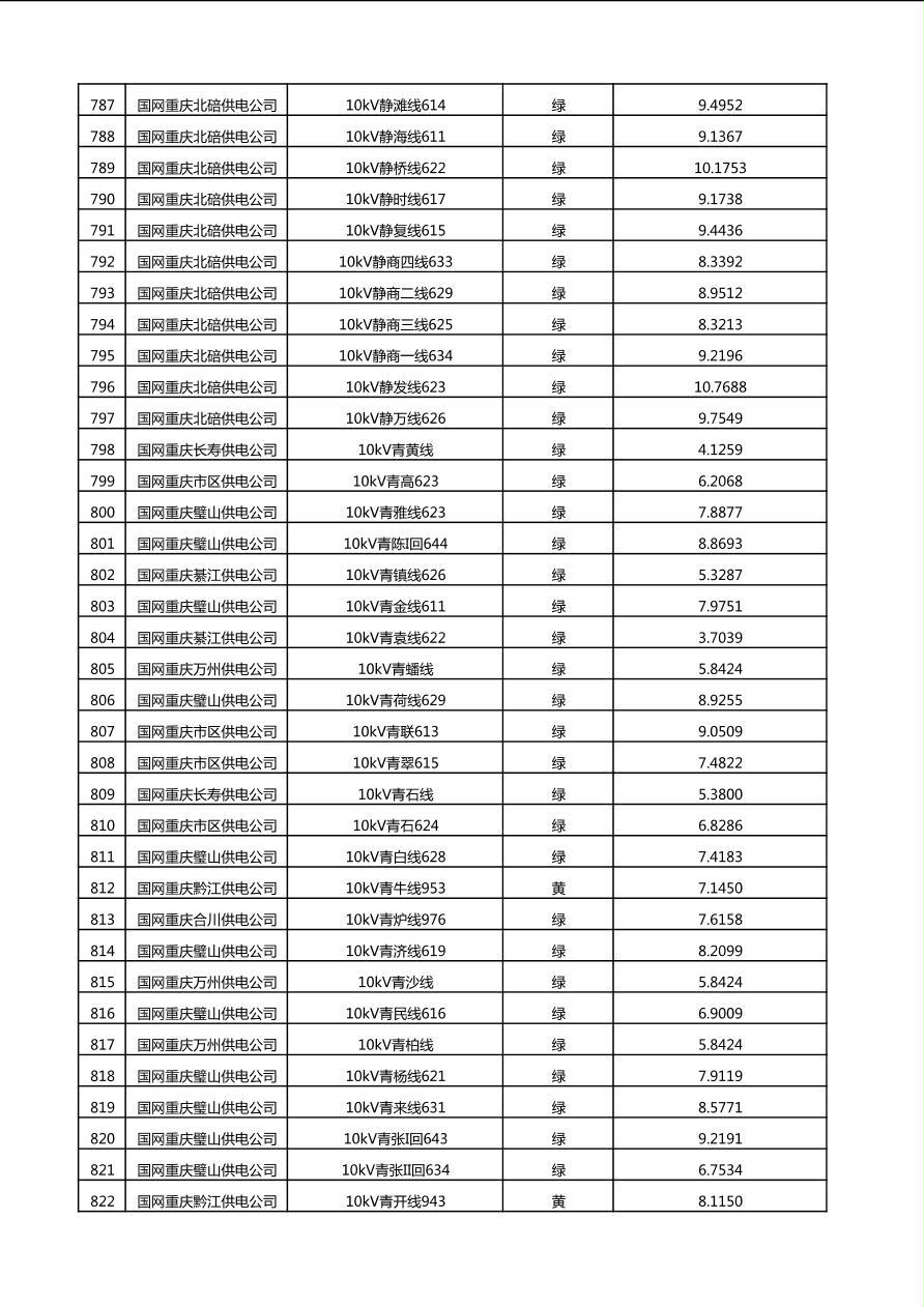 国网重庆市电力公司2025年第4季度分布式光伏可开放容量公示(10千伏配线)