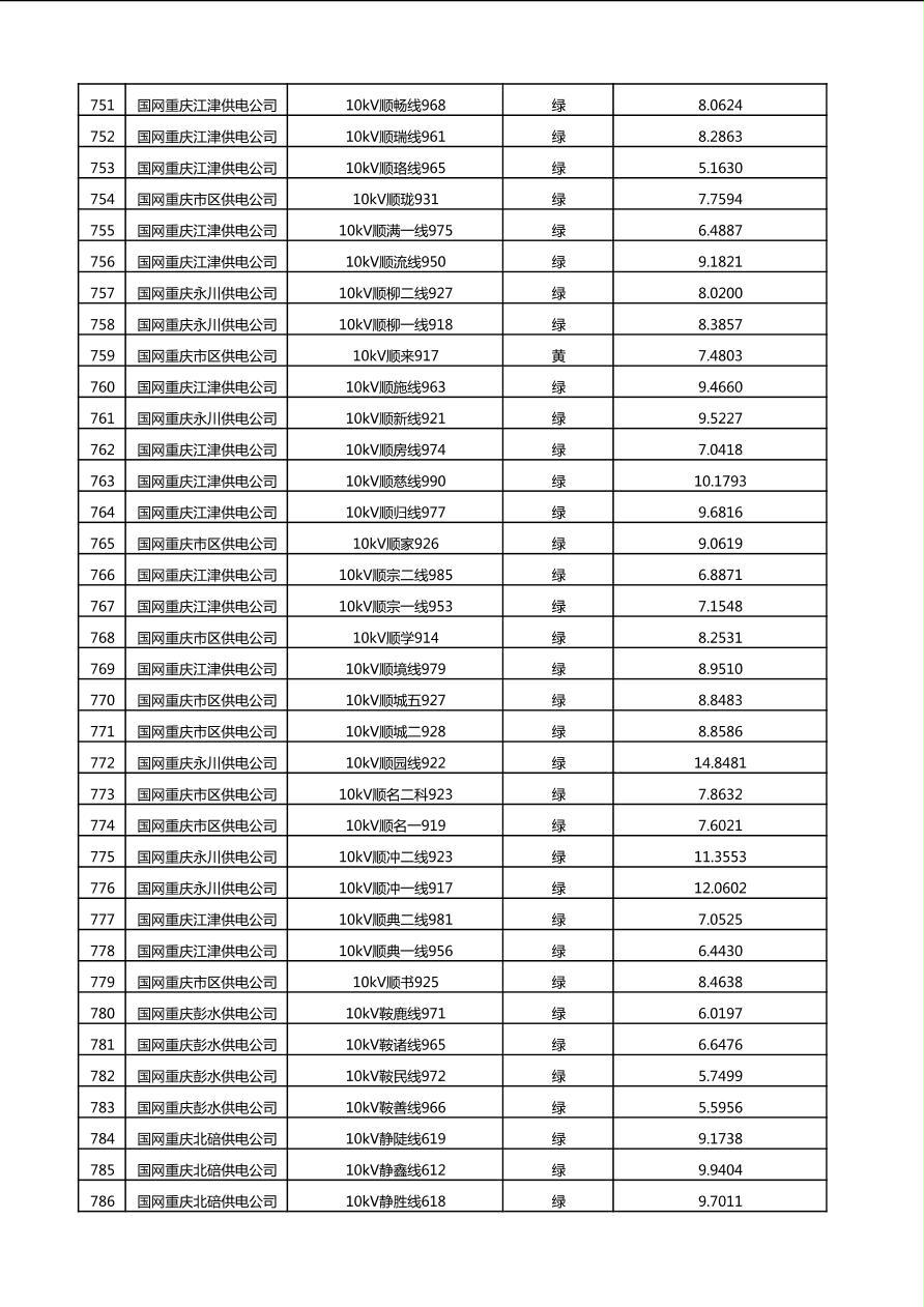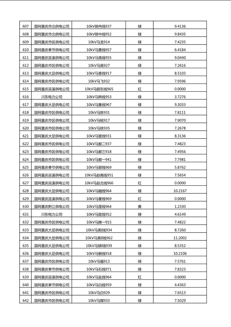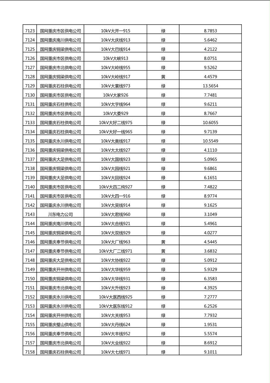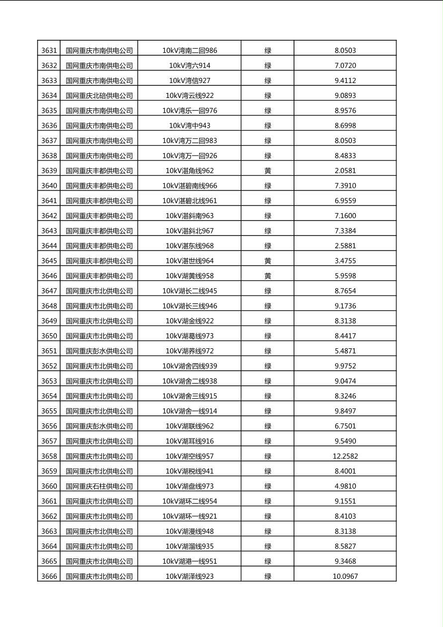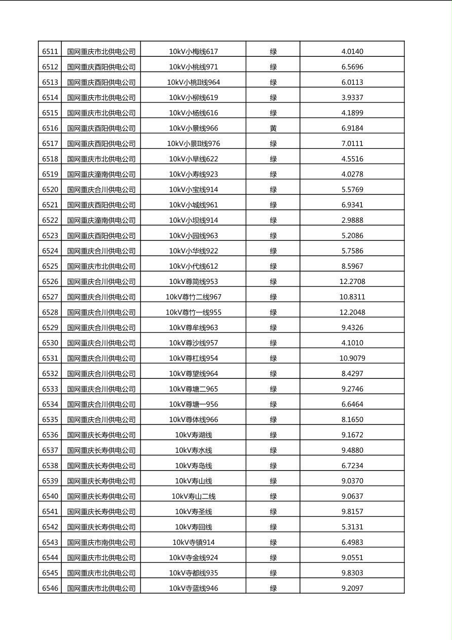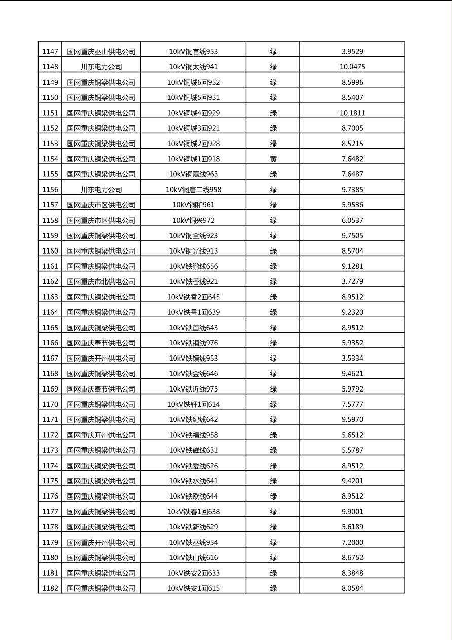 国网重庆市电力公司2025年第4季度分布式光伏可开放容量公示(10千伏配线)