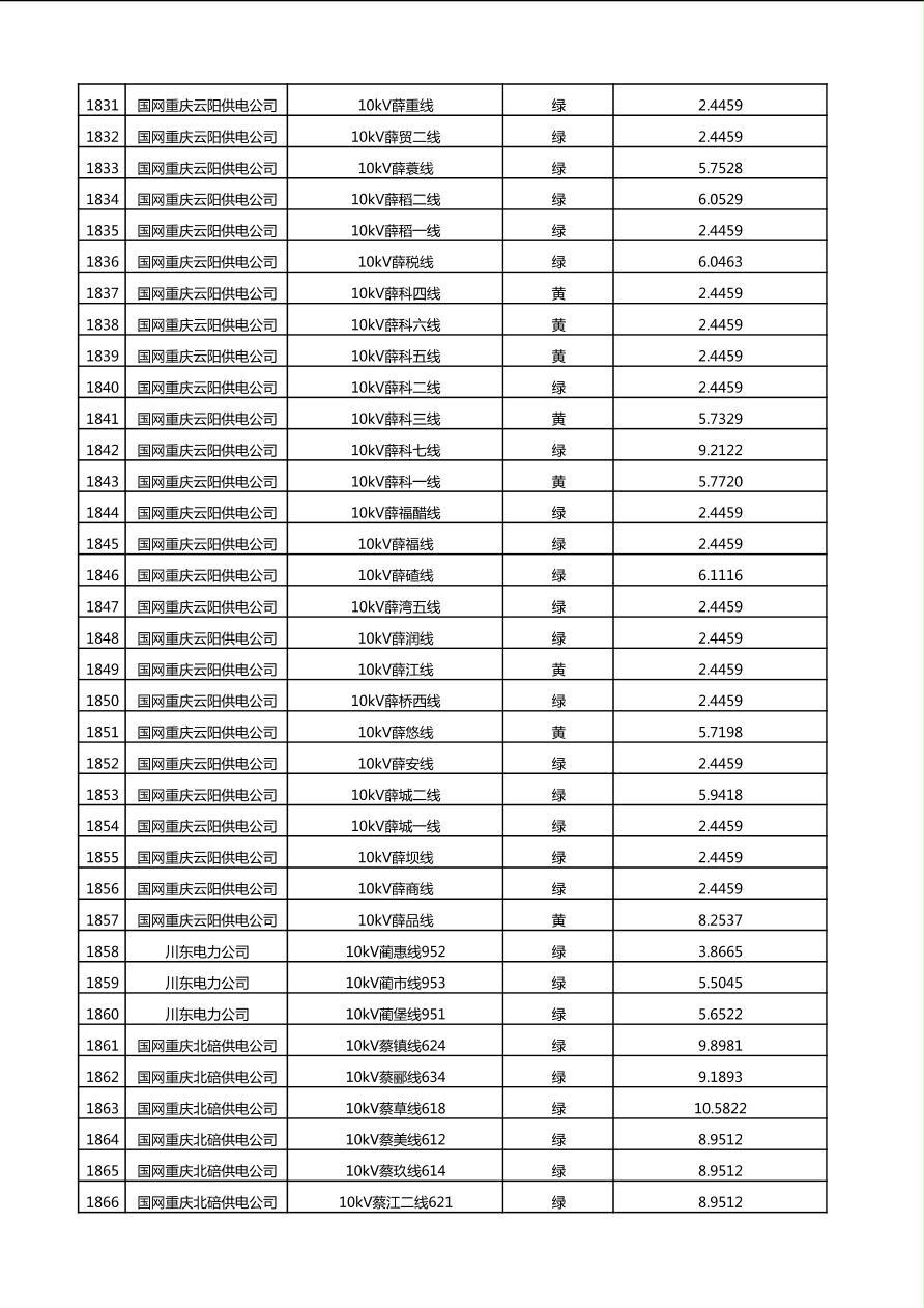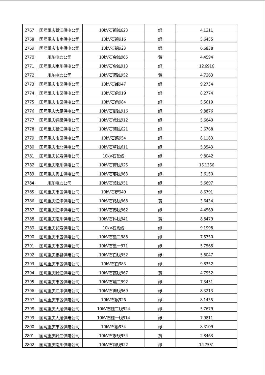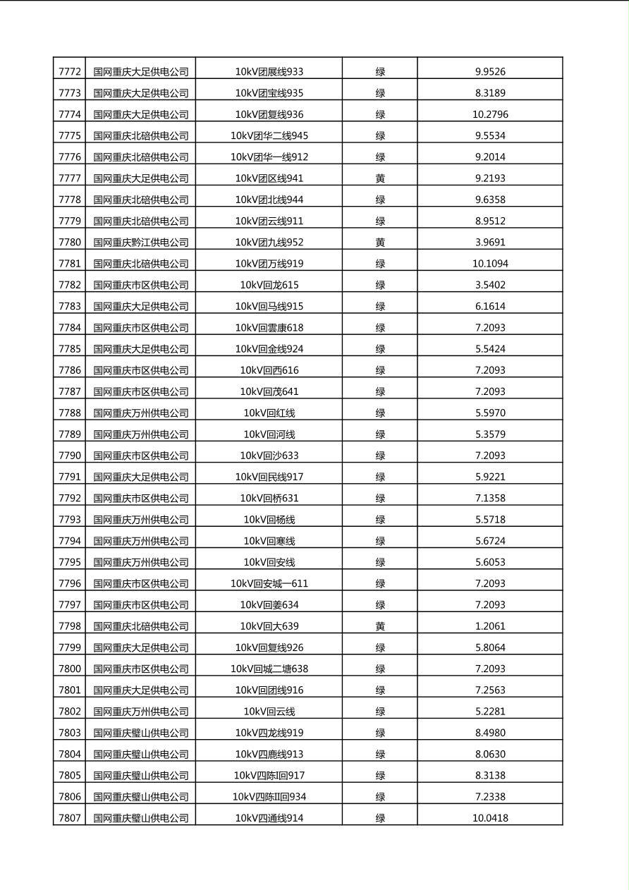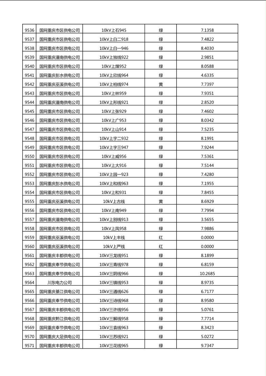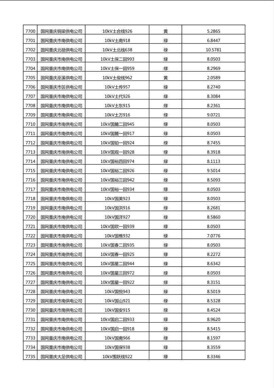 国网重庆市电力公司2025年第4季度分布式光伏可开放容量公示(10千伏配线)