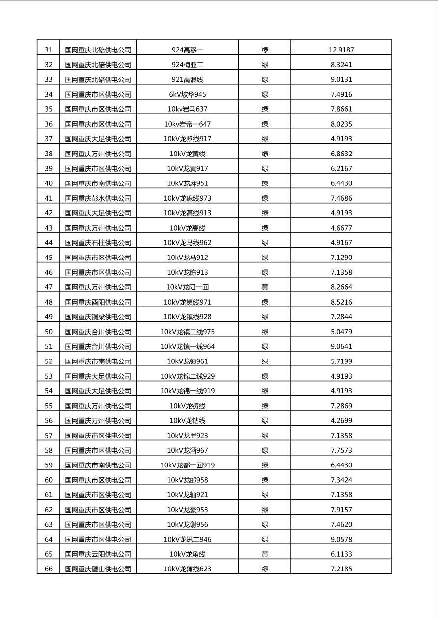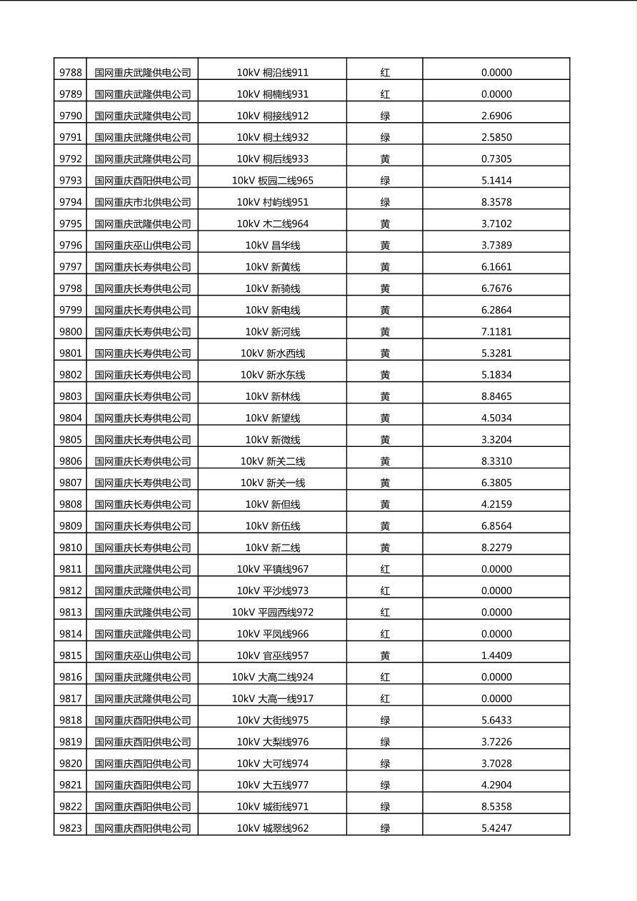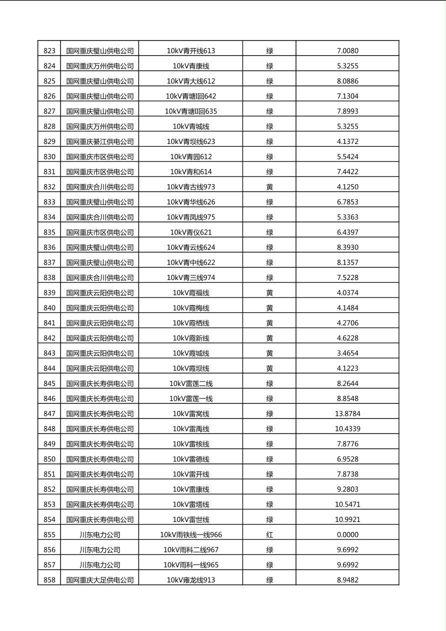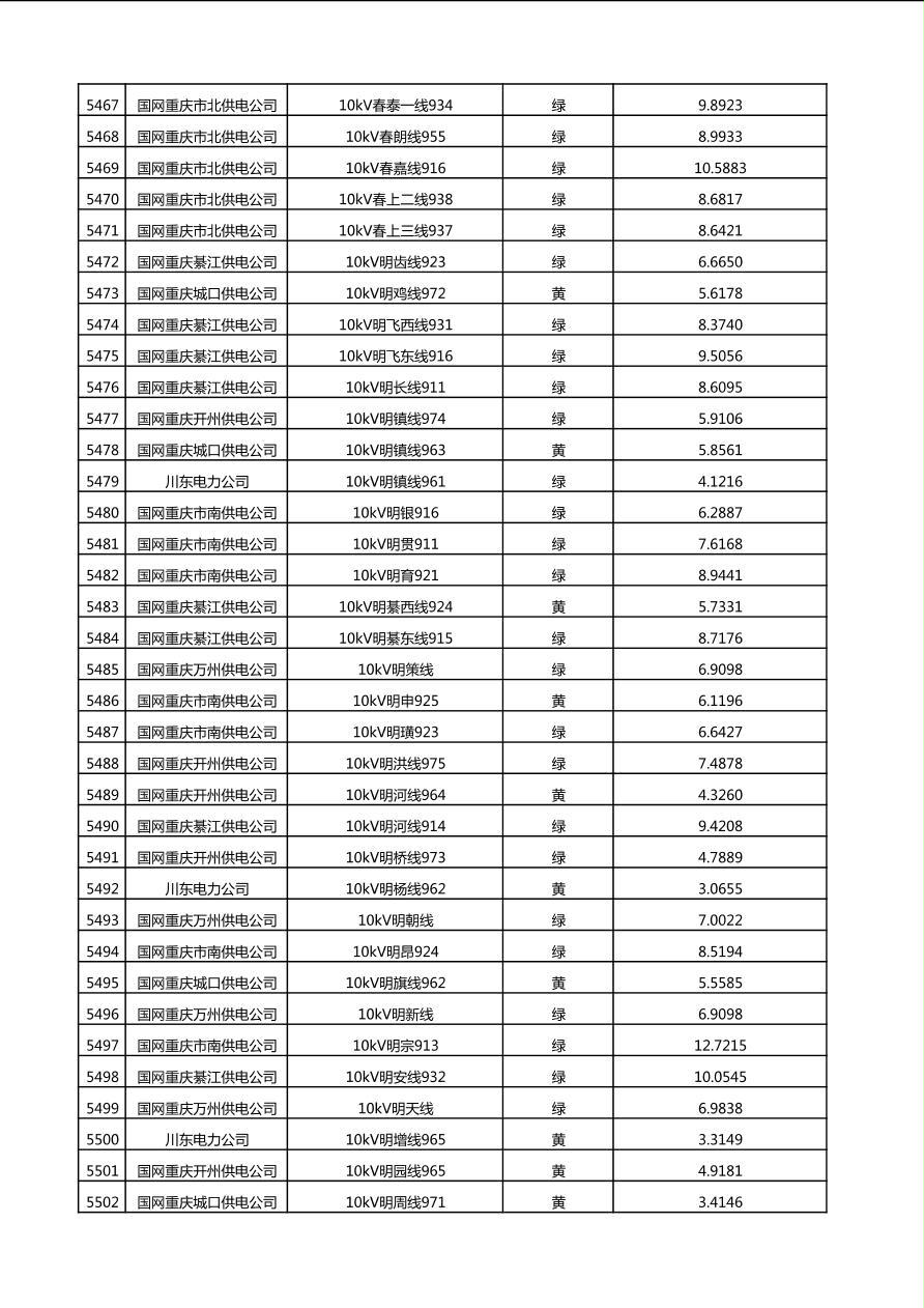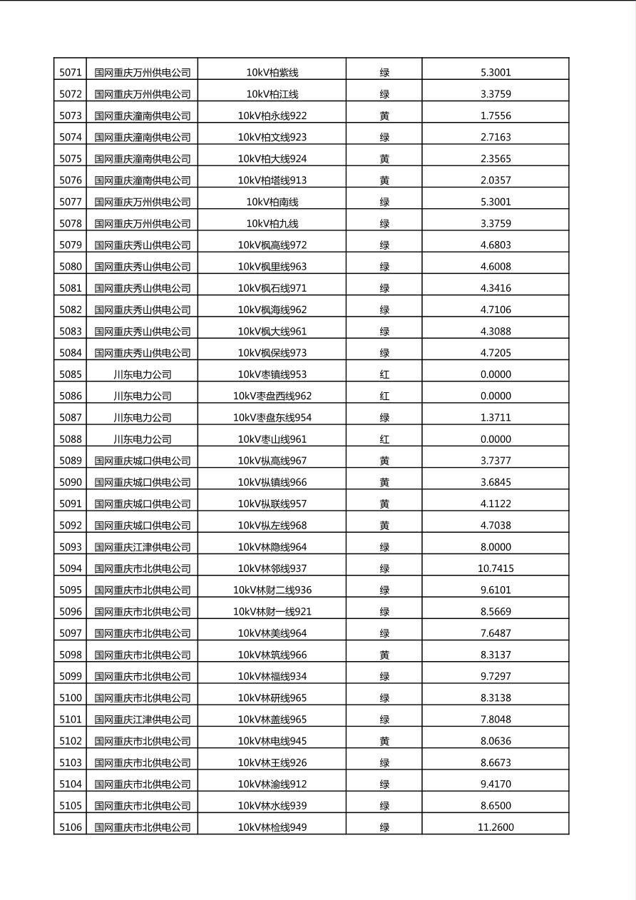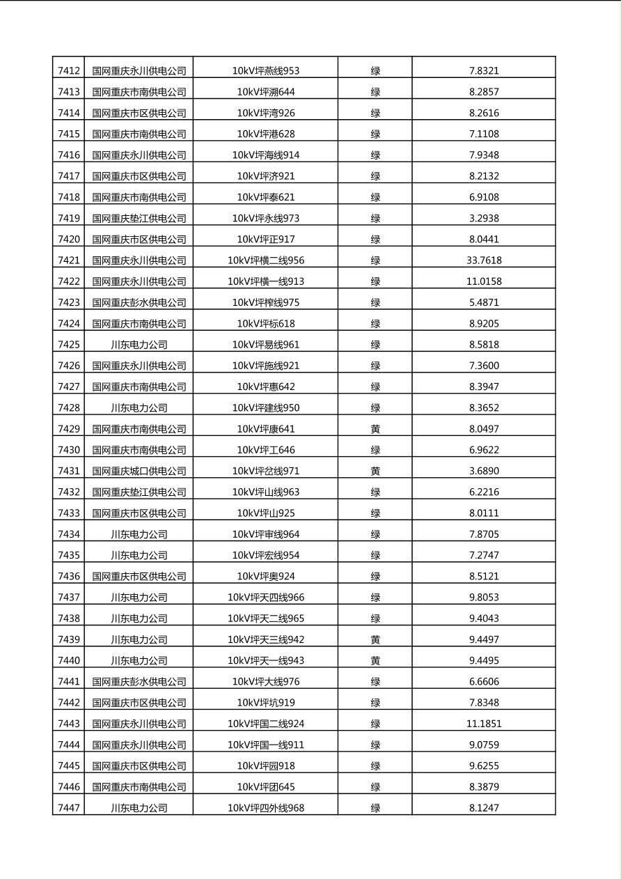 国网重庆市电力公司2025年第4季度分布式光伏可开放容量公示(10千伏配线)
