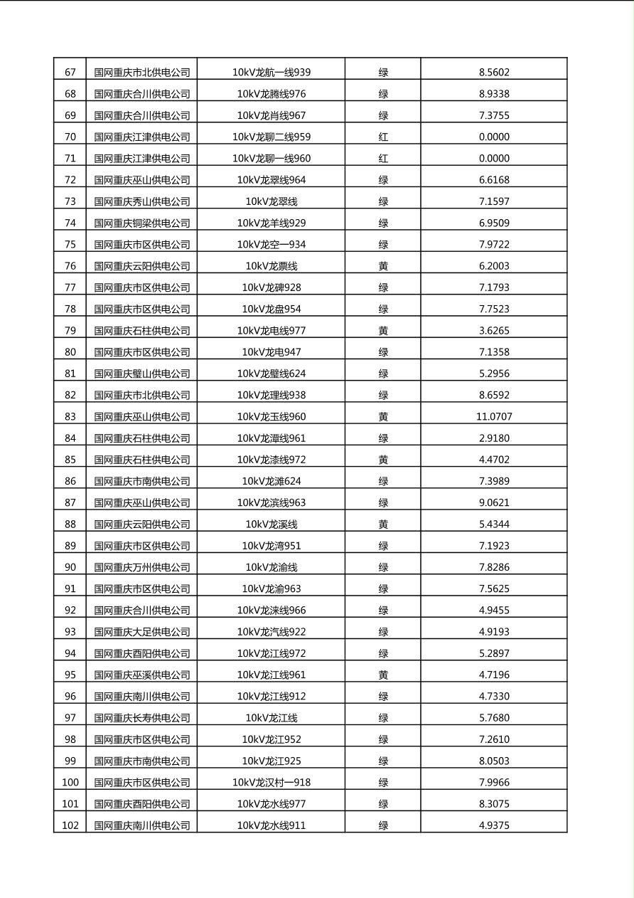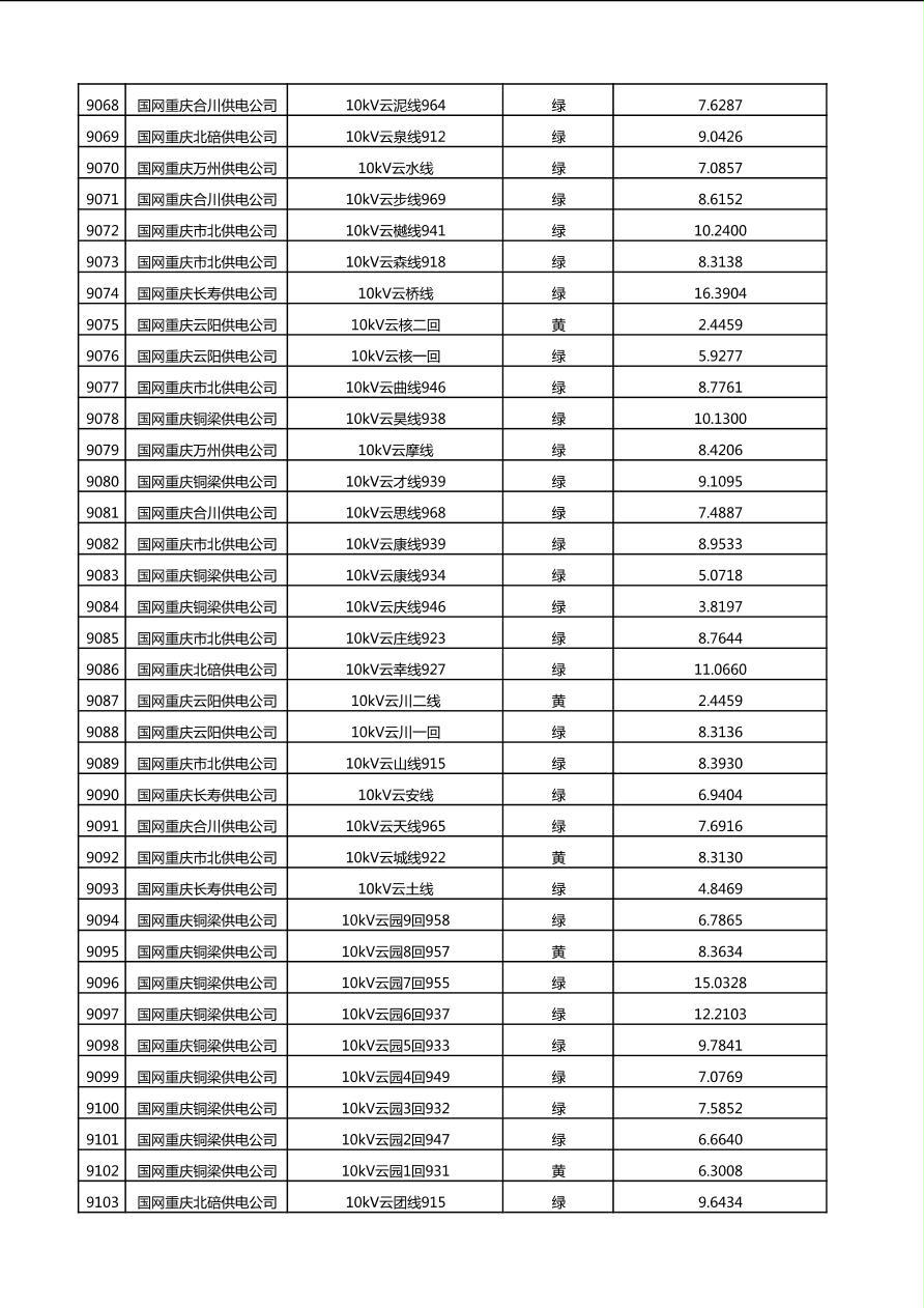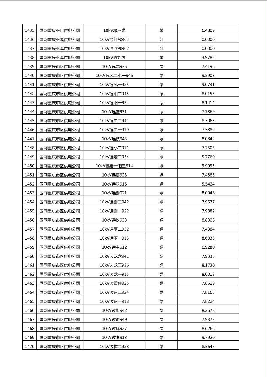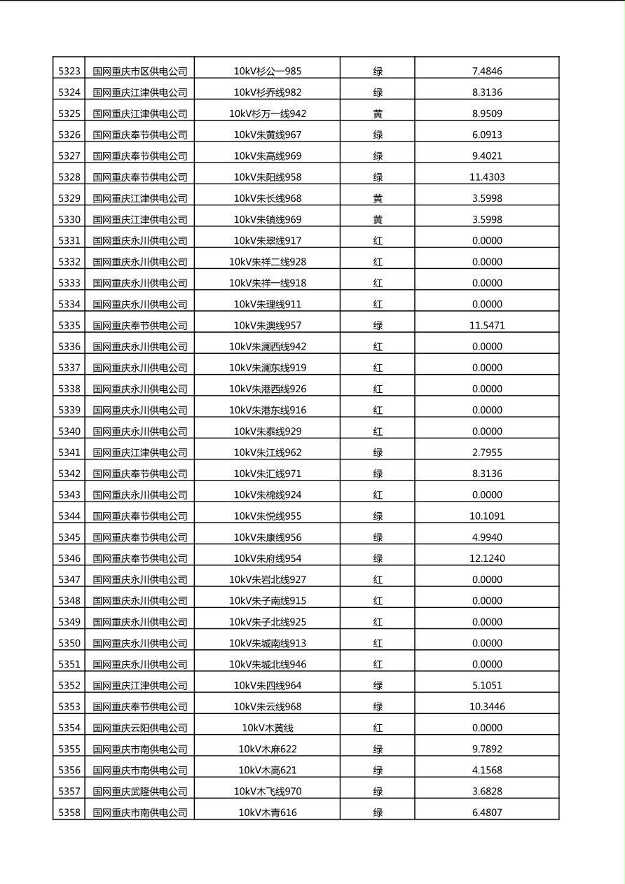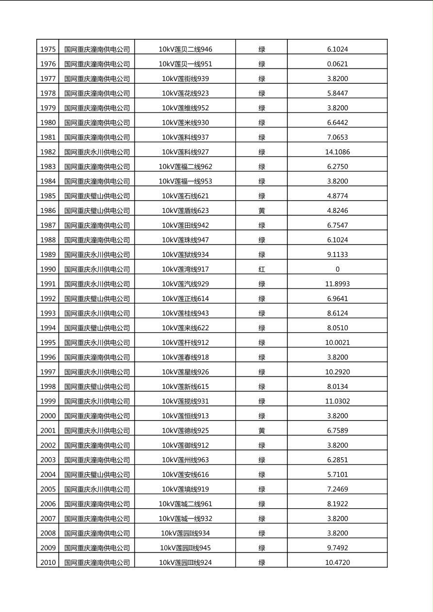 国网重庆市电力公司2025年第4季度分布式光伏可开放容量公示(10千伏配线)
