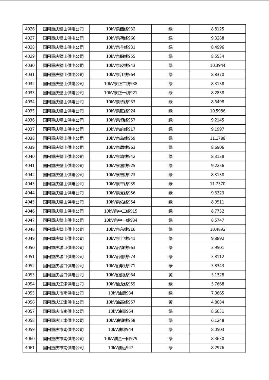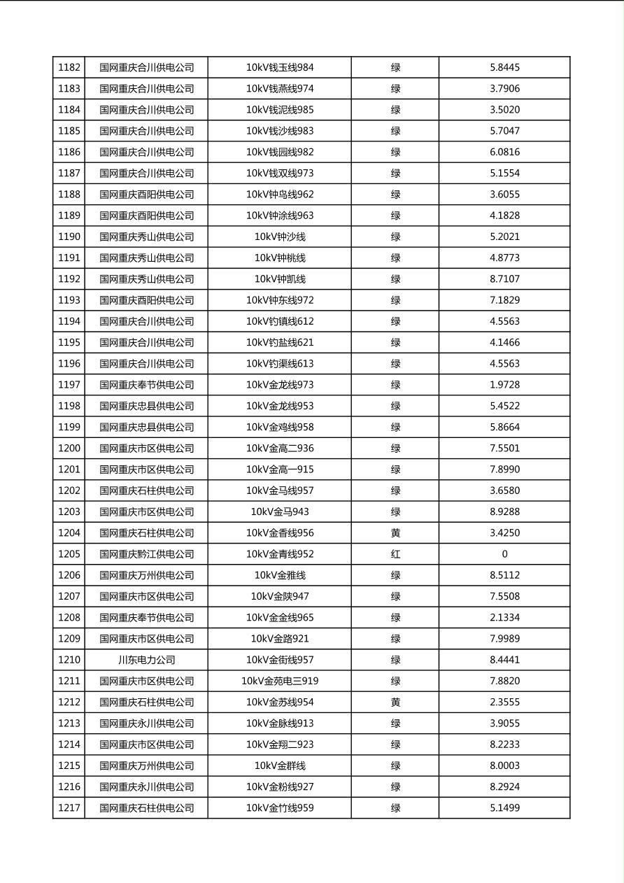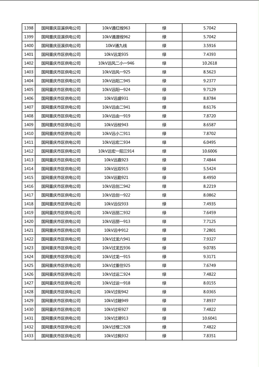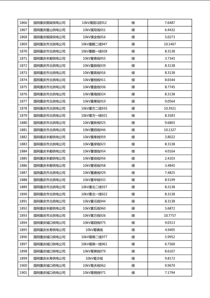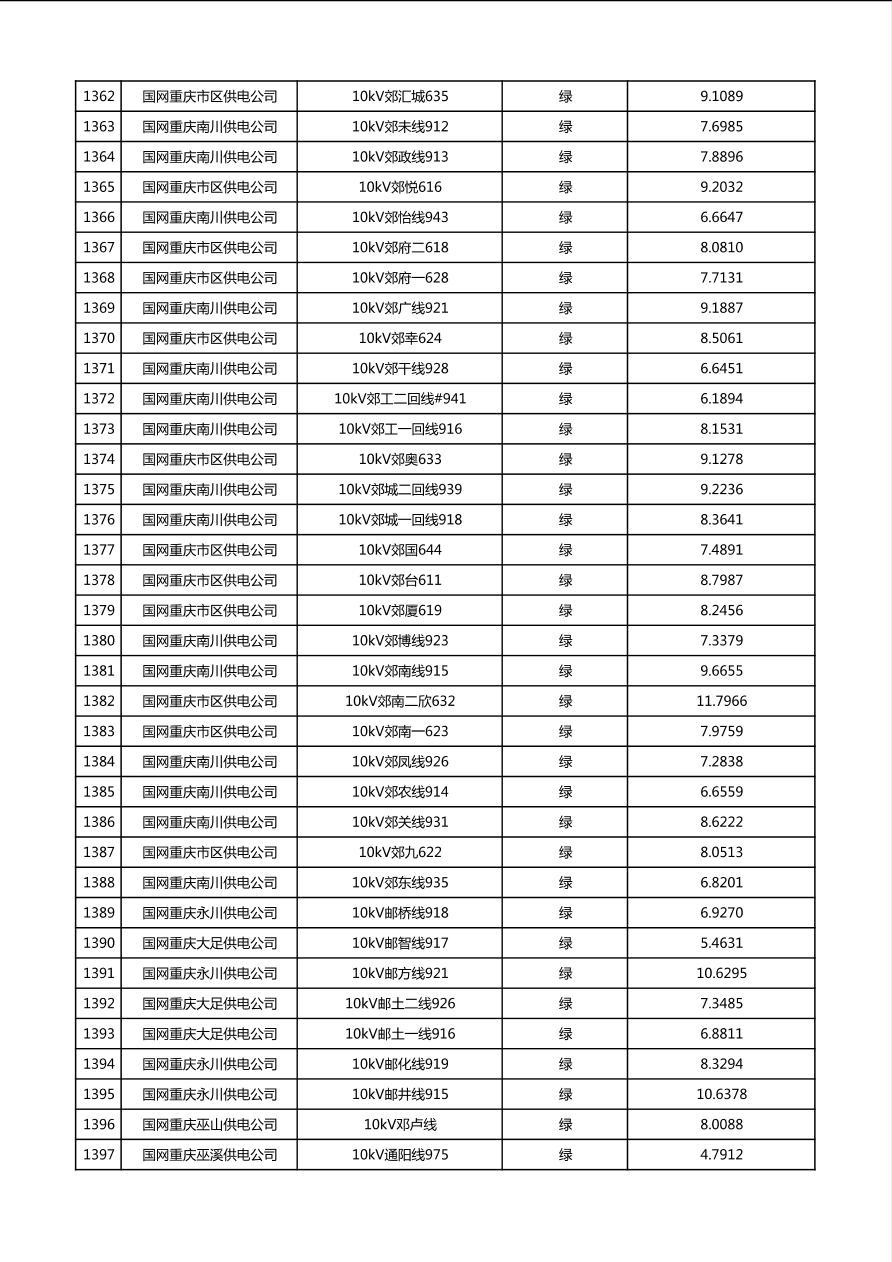 国网重庆市电力公司2026年第1季度分布式光伏可开放容量公示(配线)