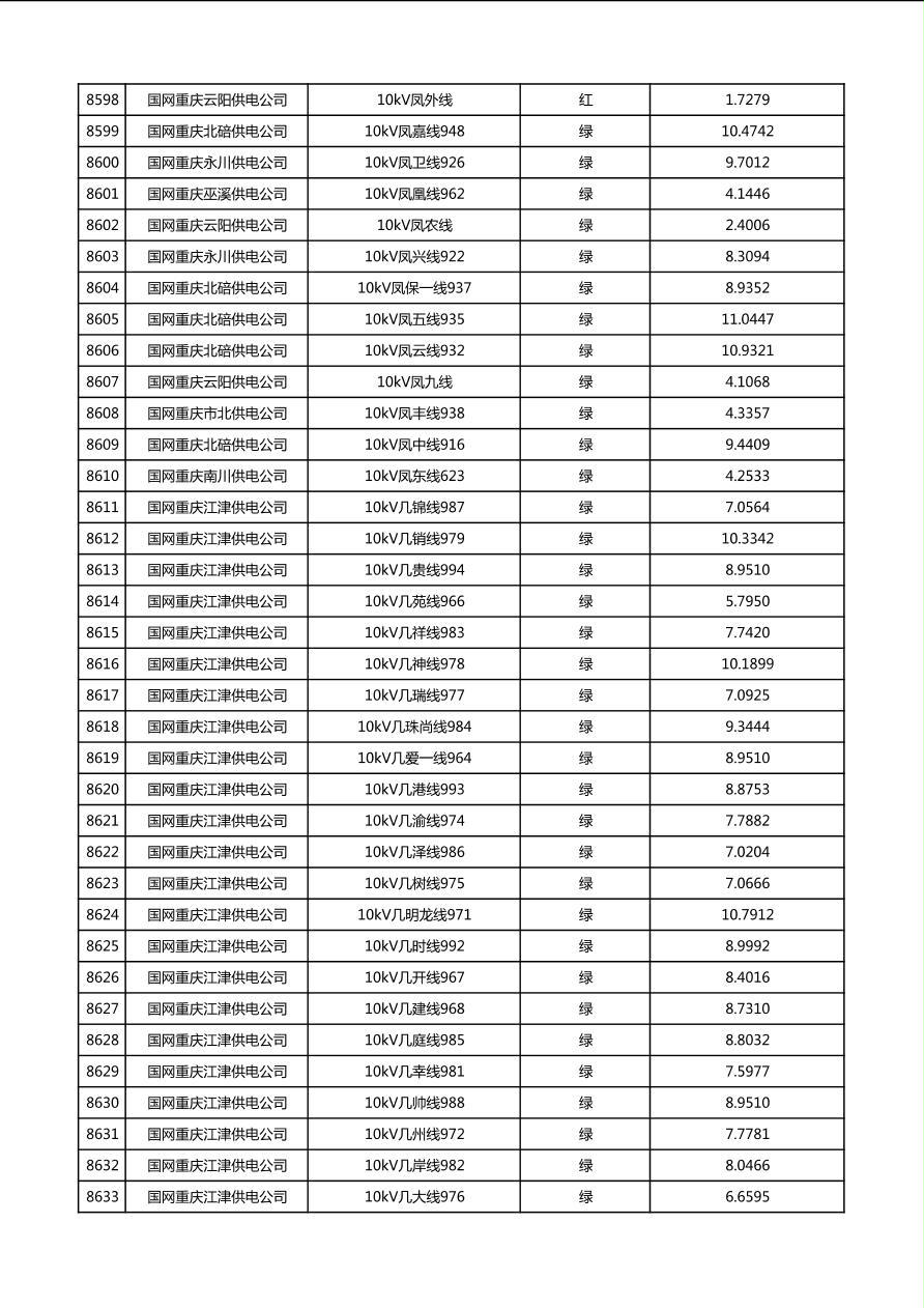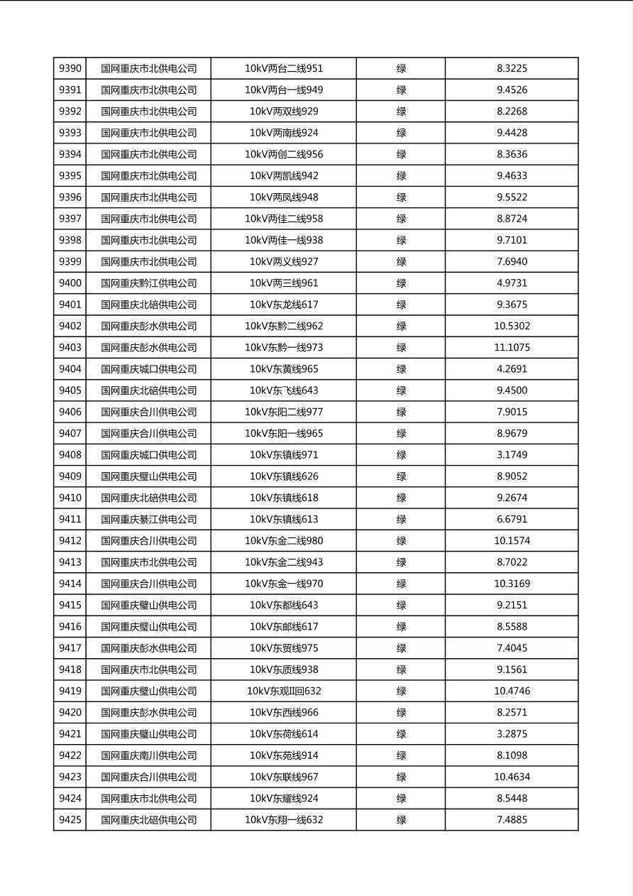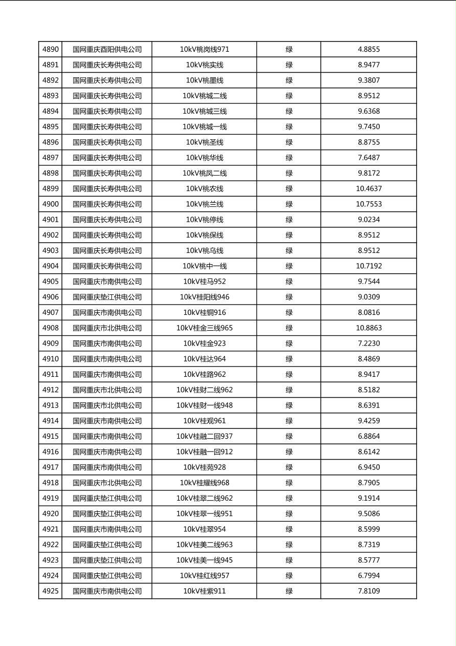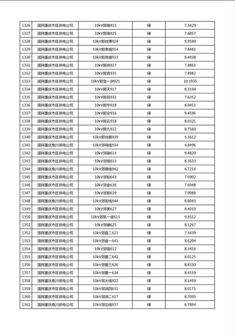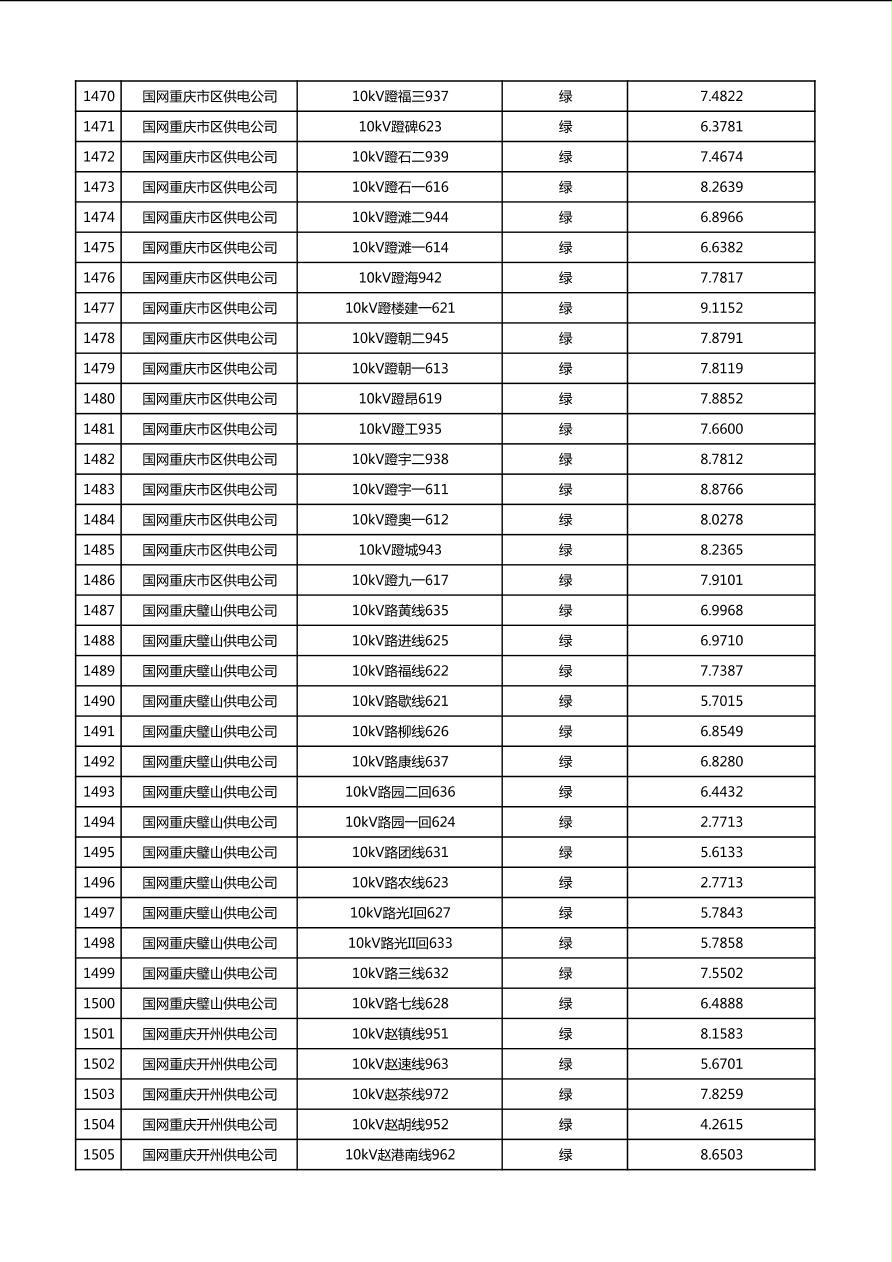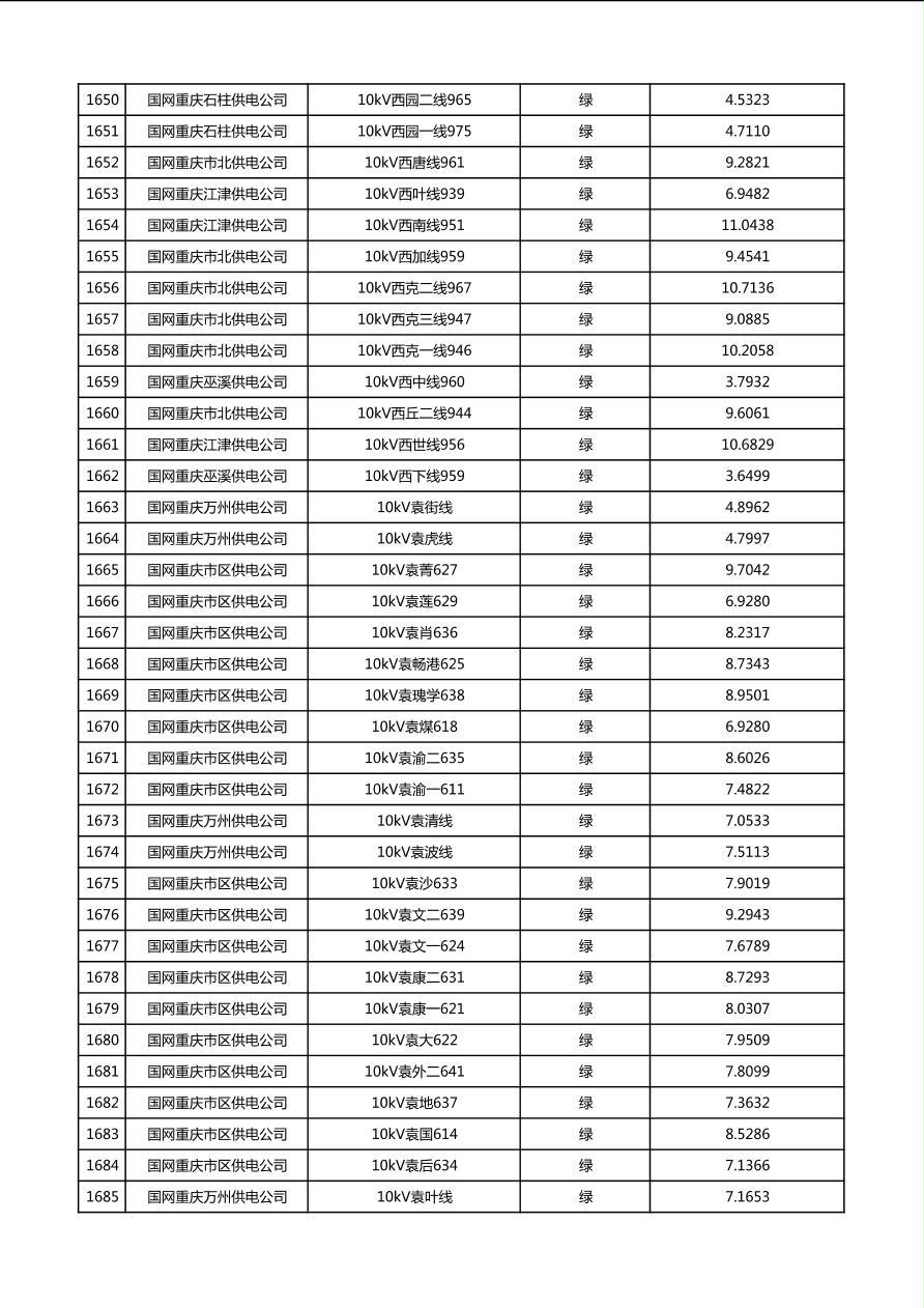 国网重庆市电力公司2026年第1季度分布式光伏可开放容量公示(配线)