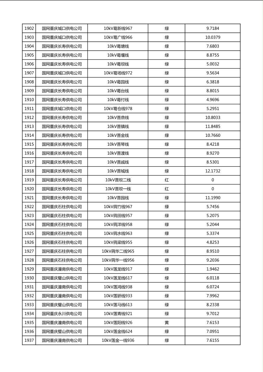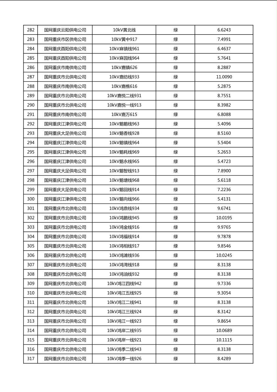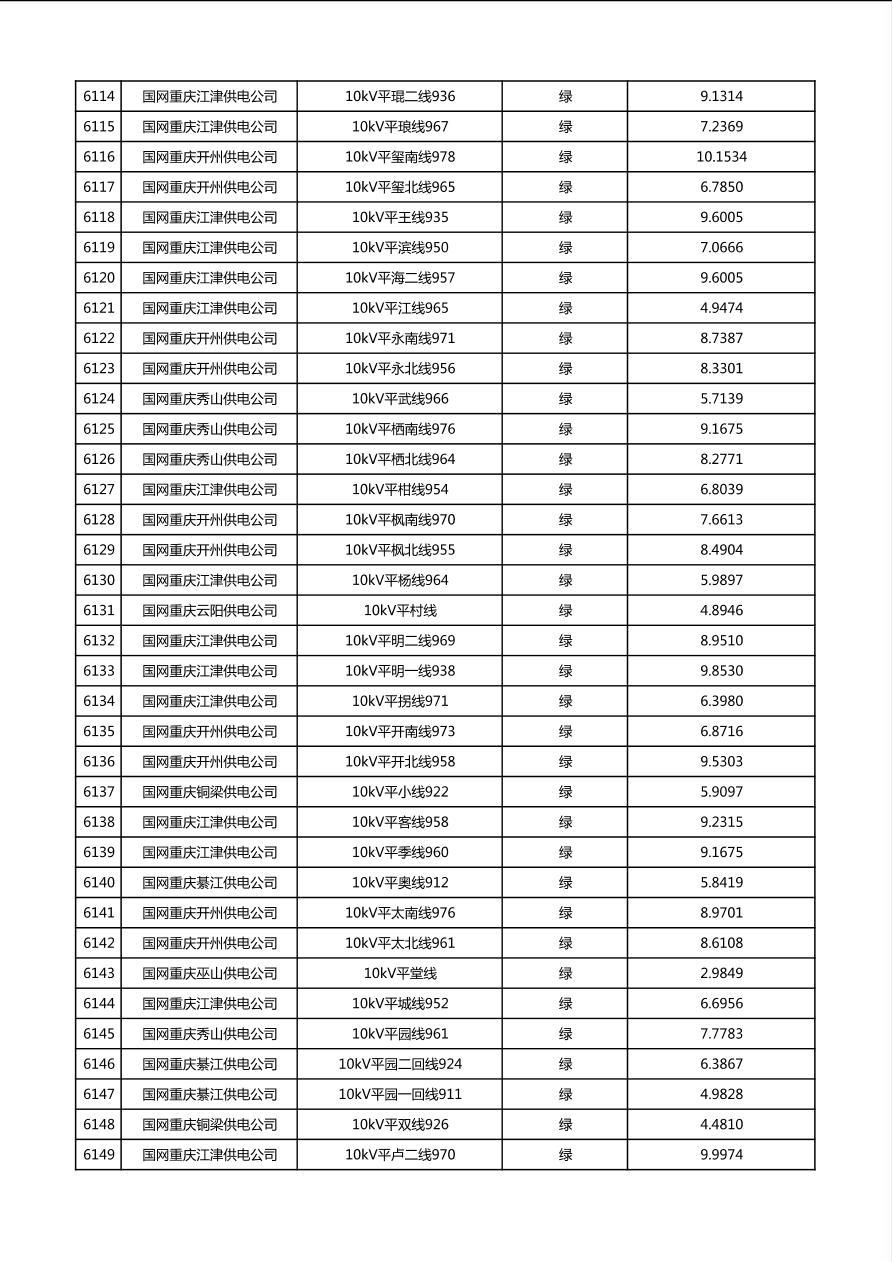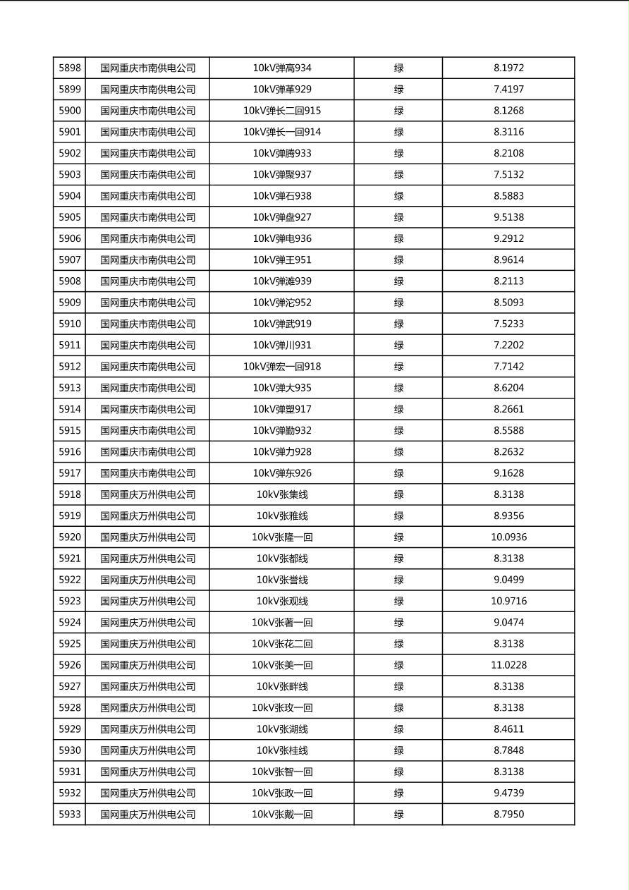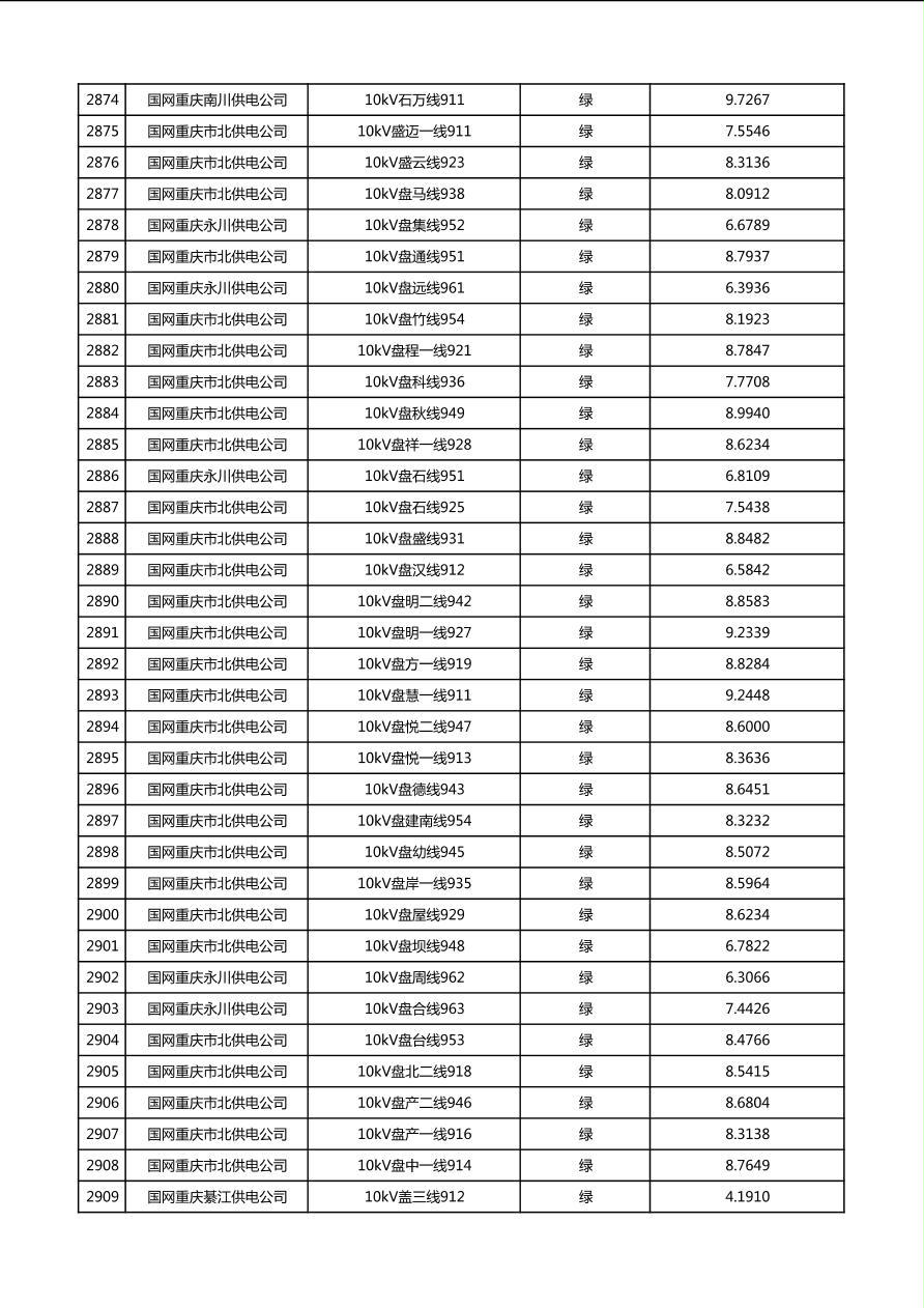 国网重庆市电力公司2026年第1季度分布式光伏可开放容量公示(配线)