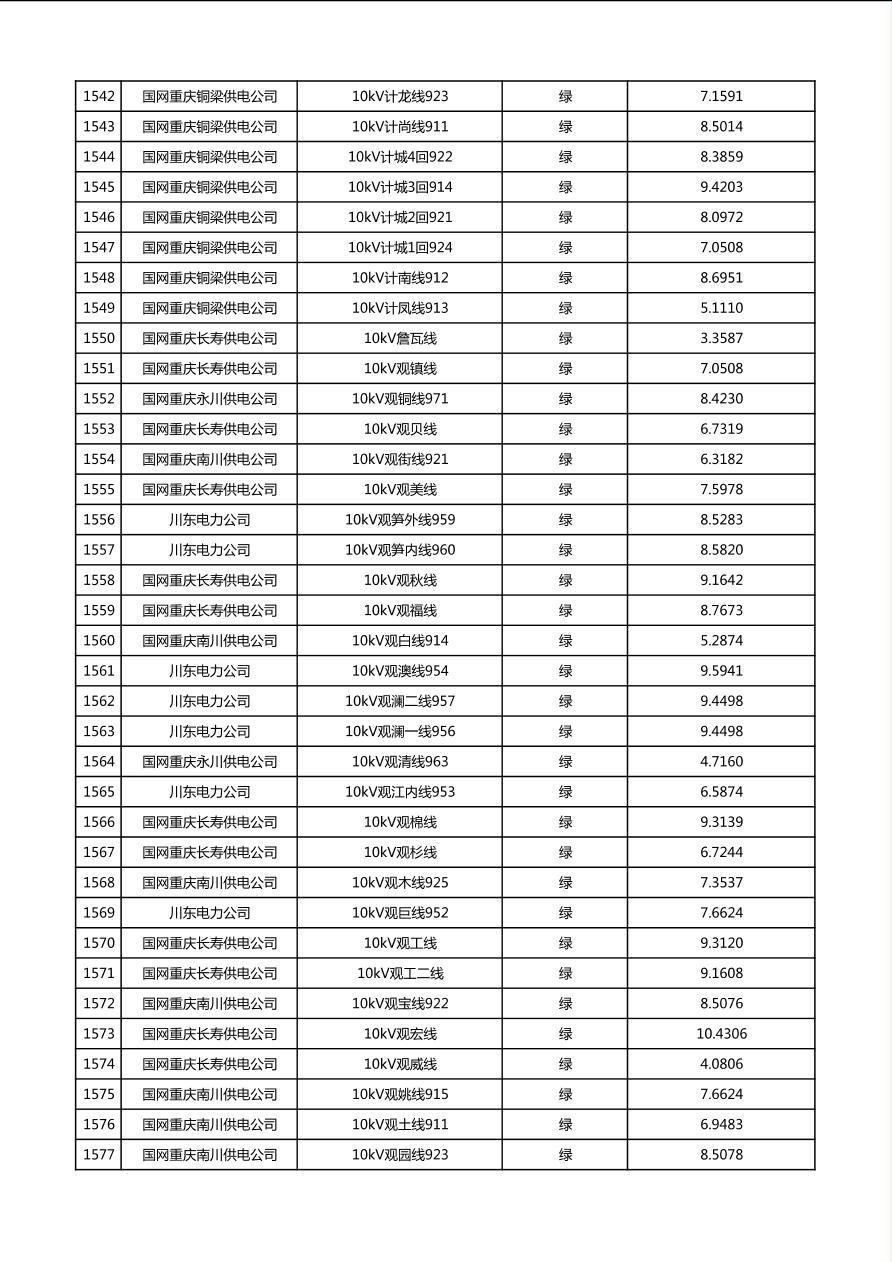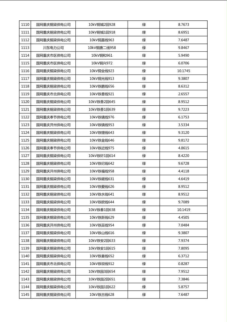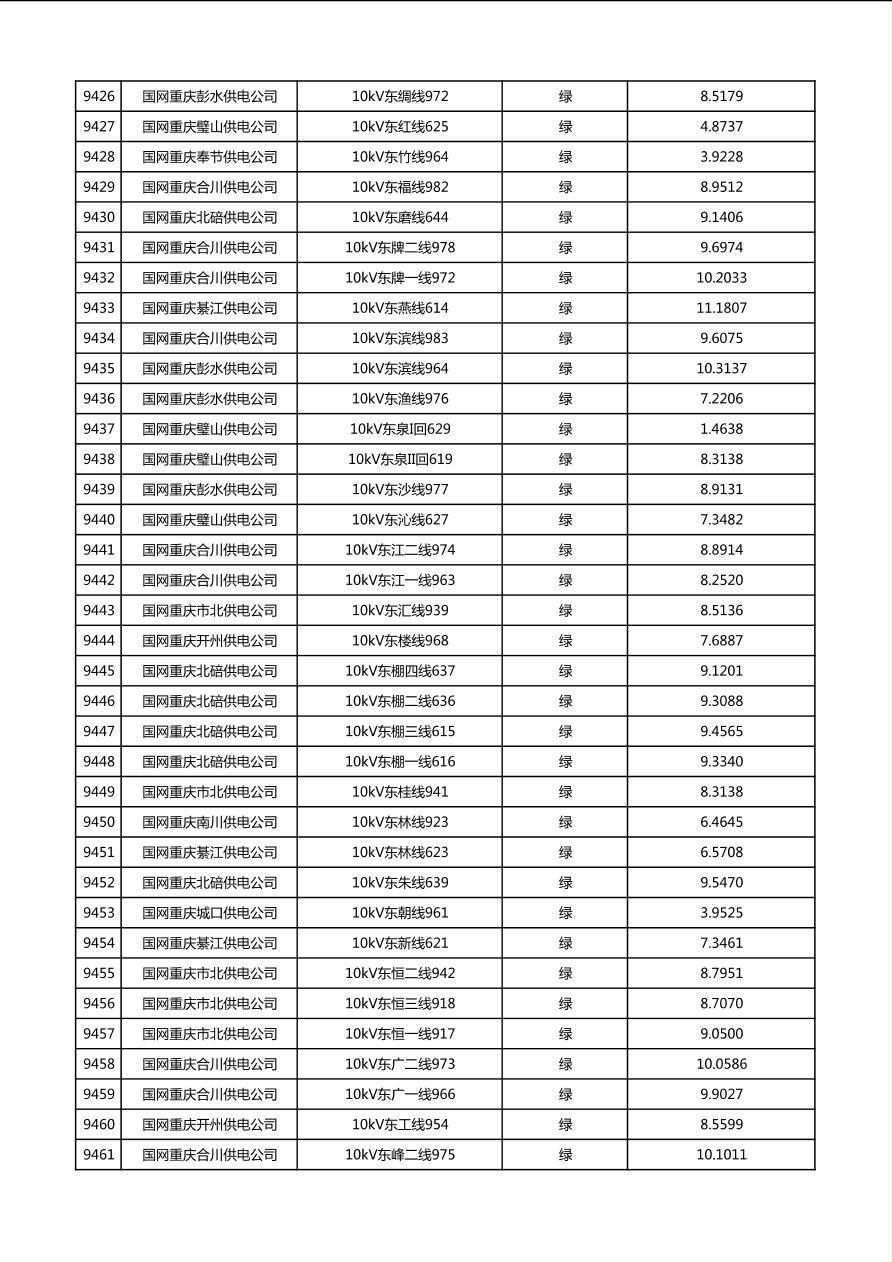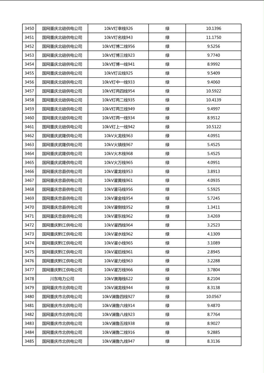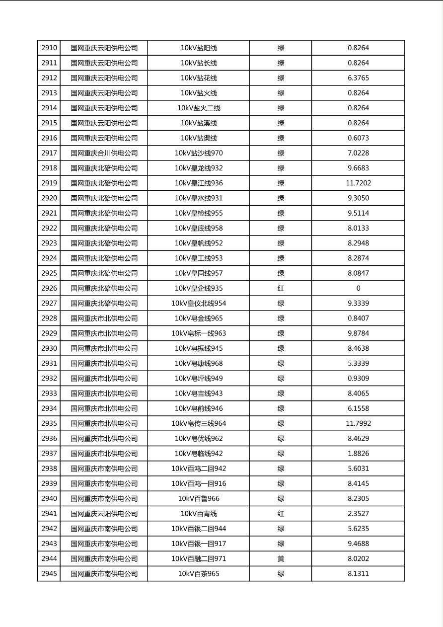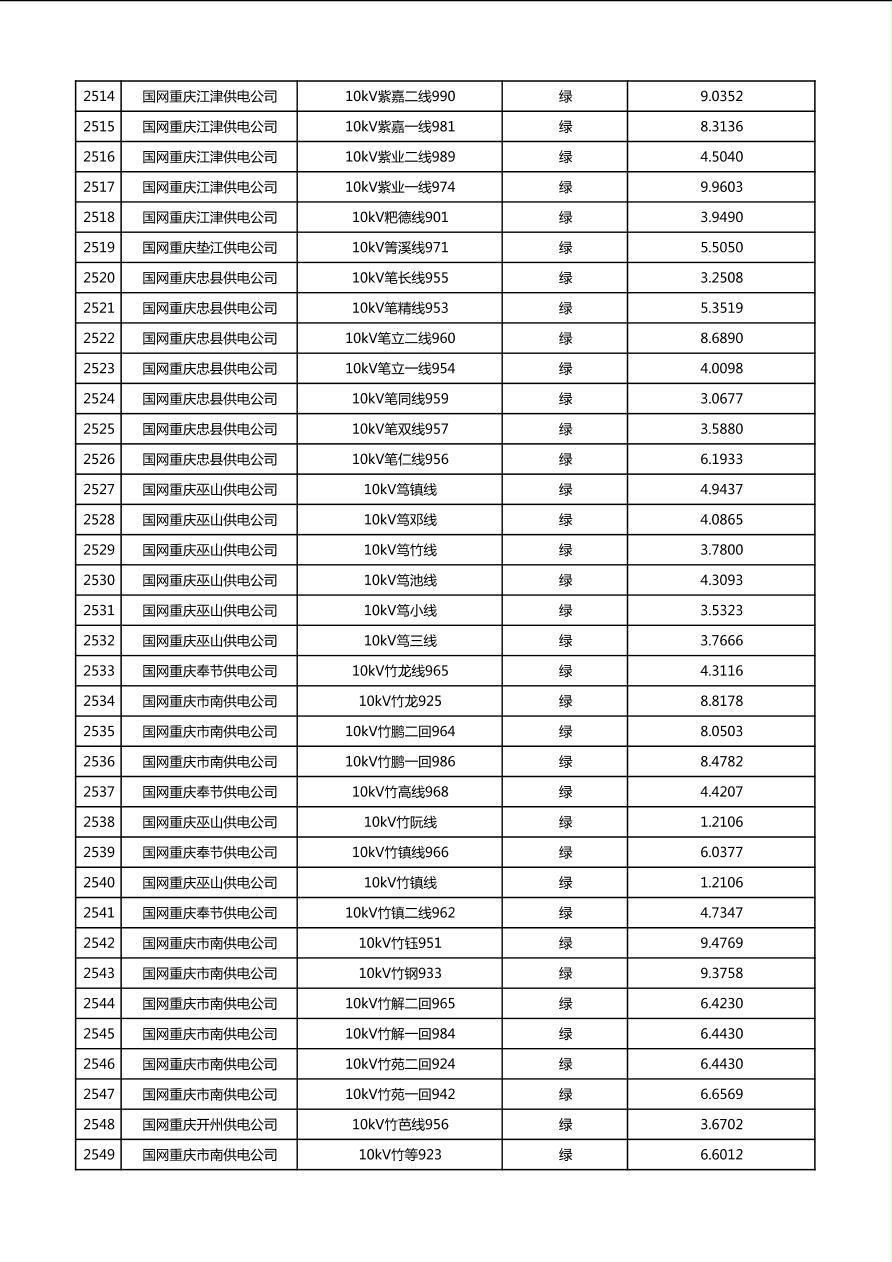 国网重庆市电力公司2026年第1季度分布式光伏可开放容量公示(配线)