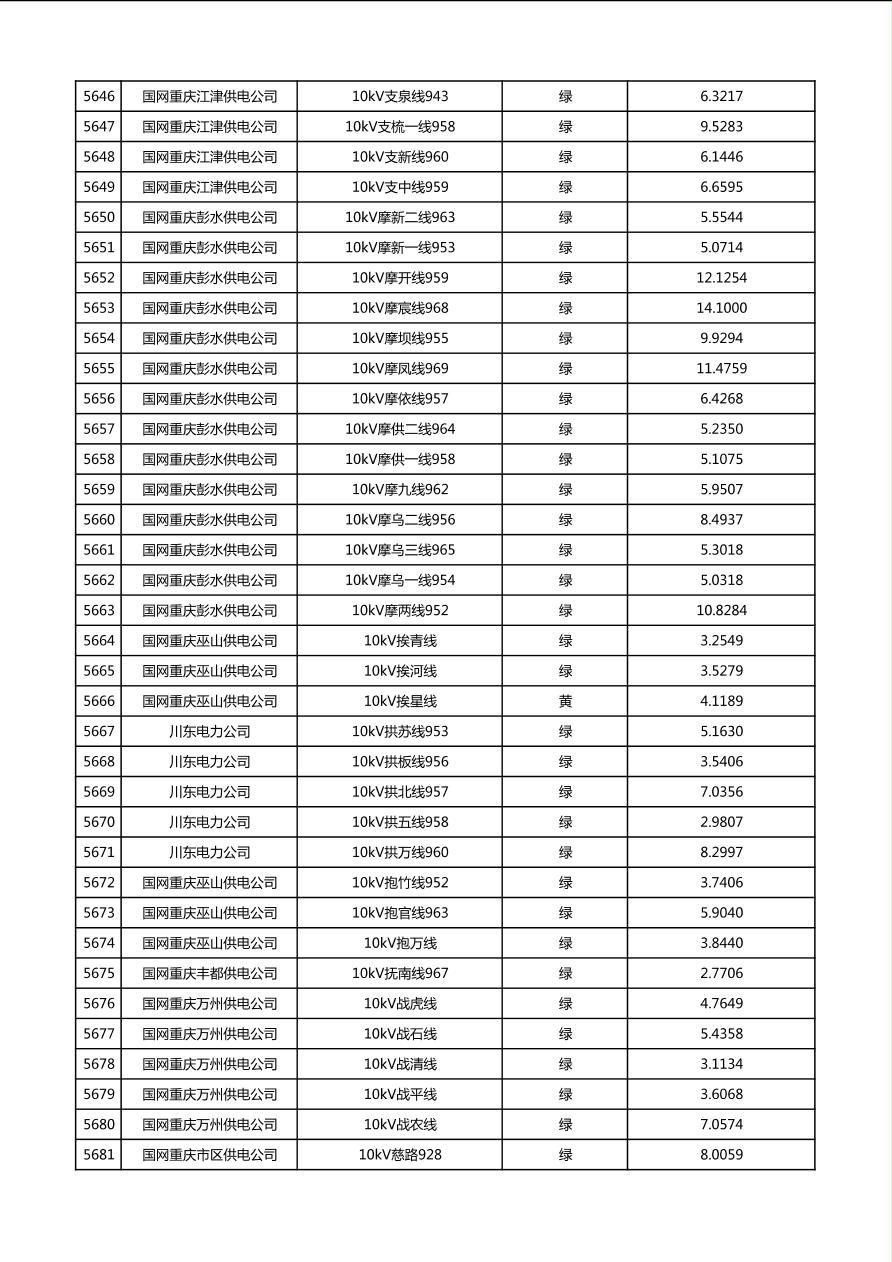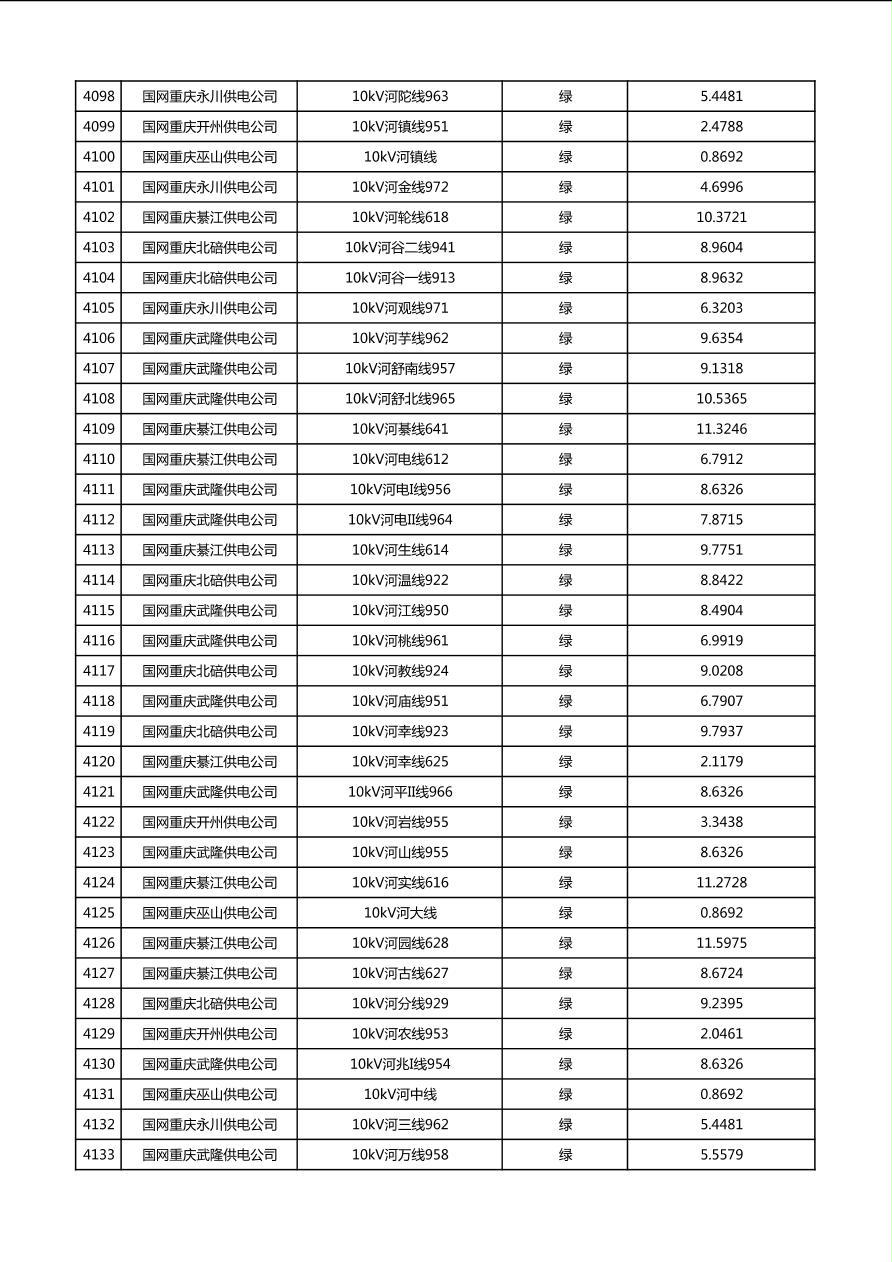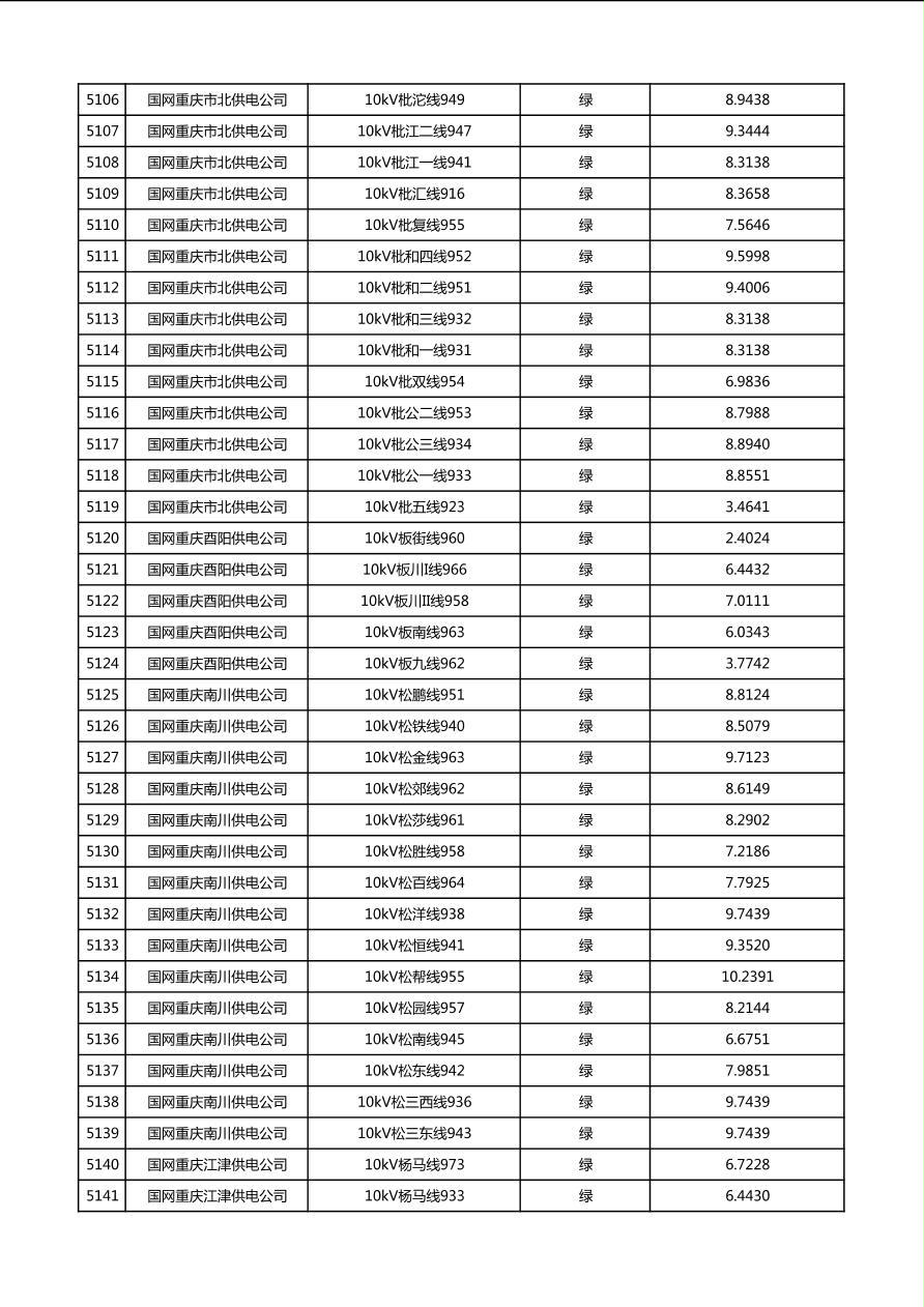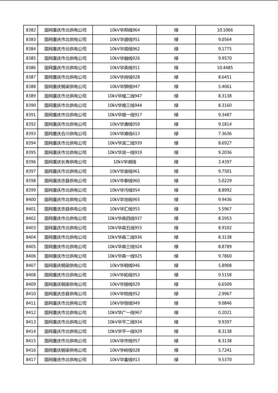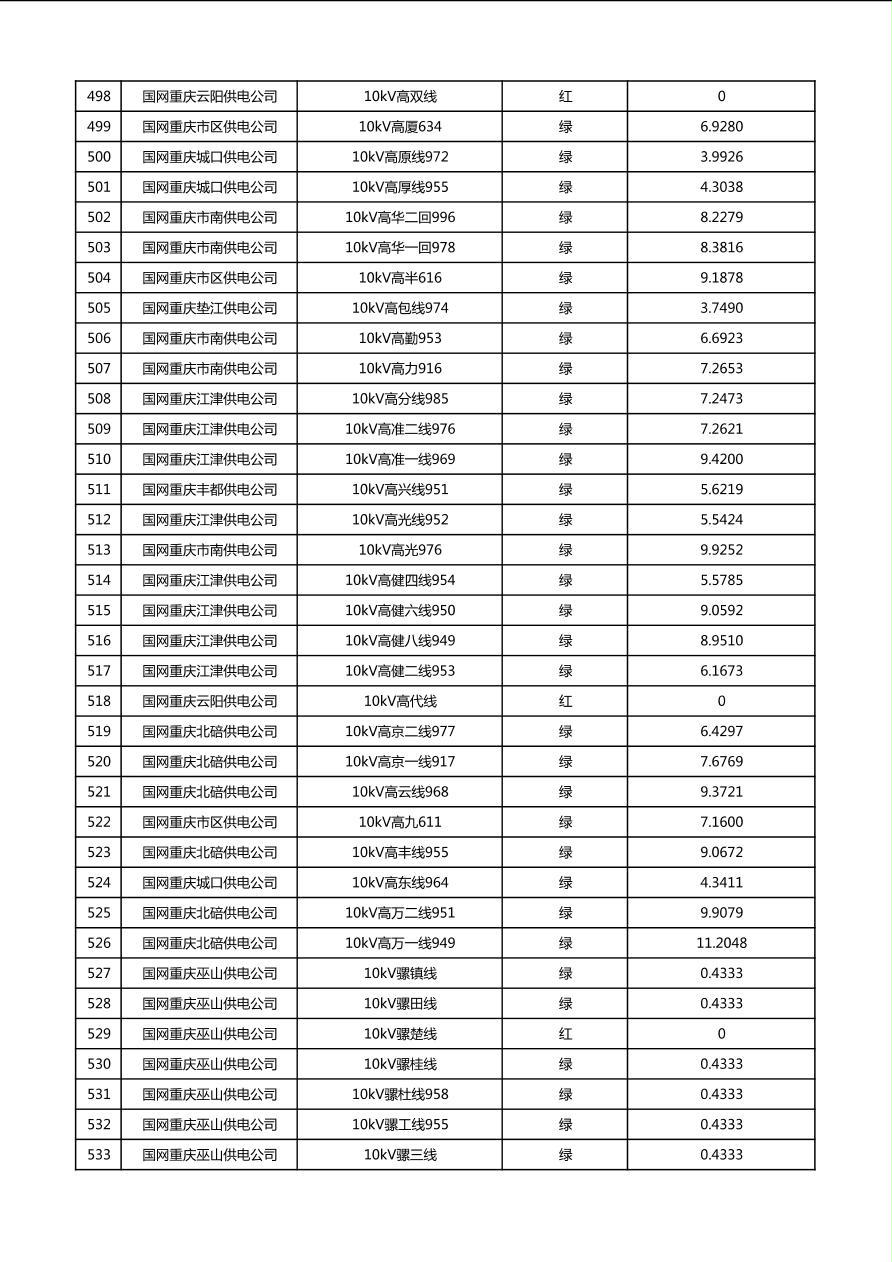 国网重庆市电力公司2026年第1季度分布式光伏可开放容量公示(配线)