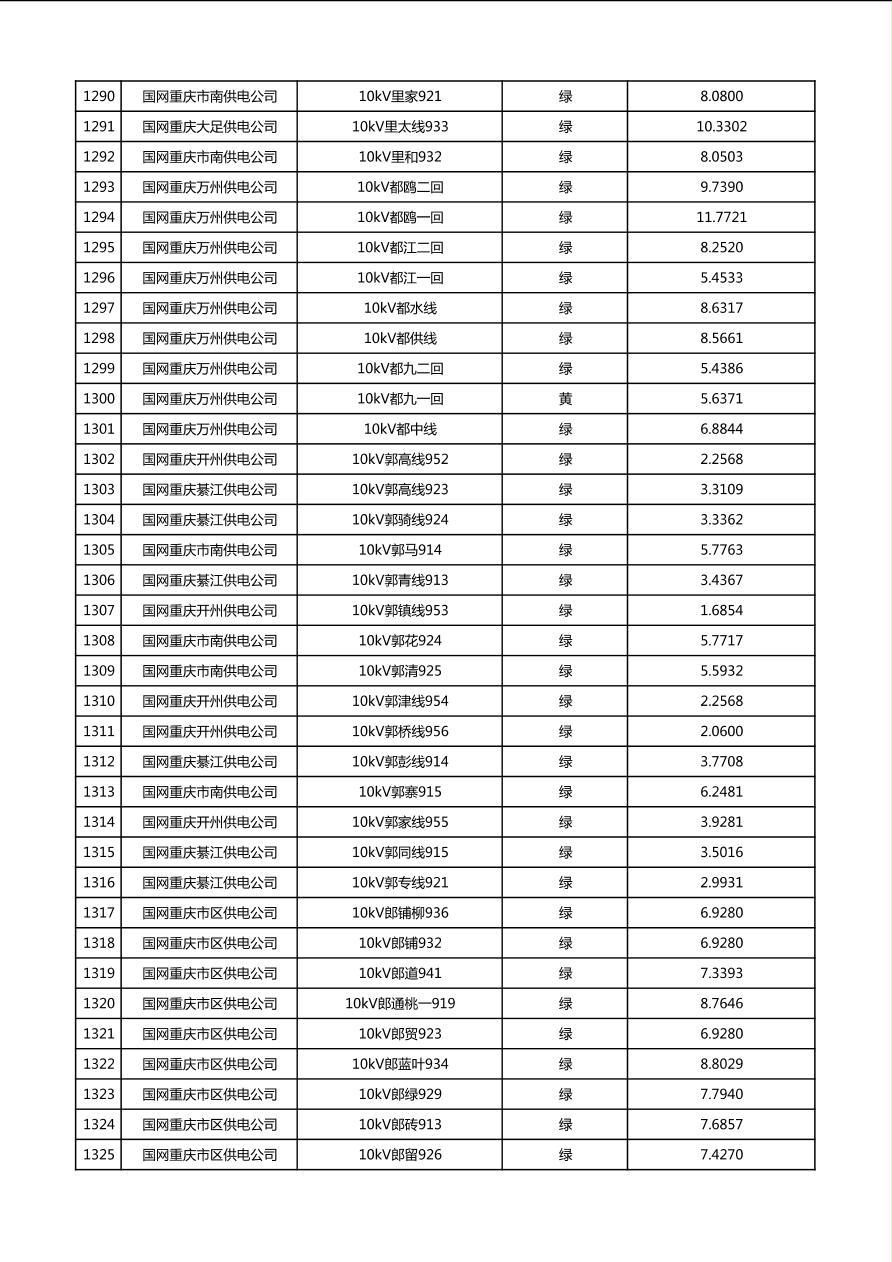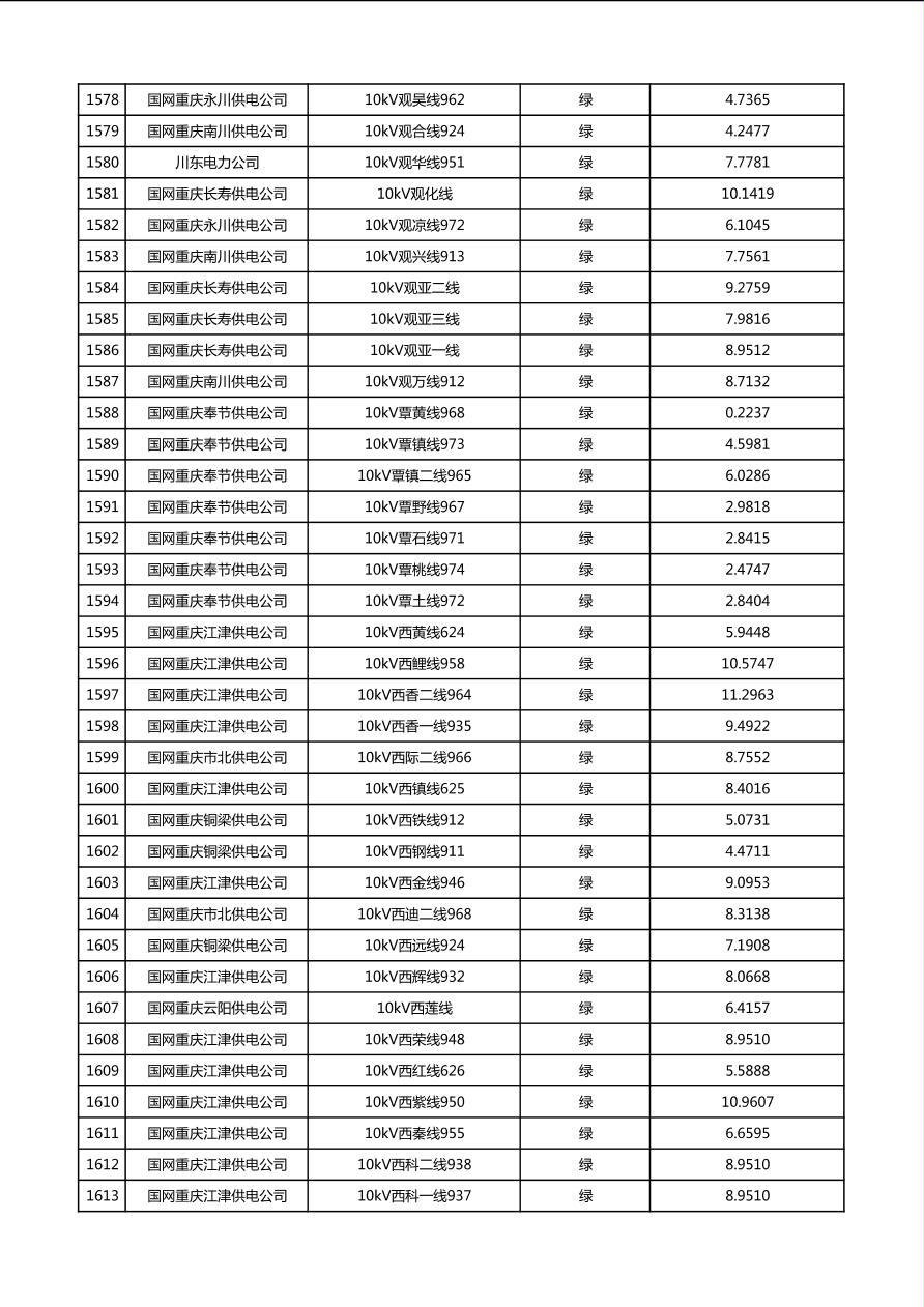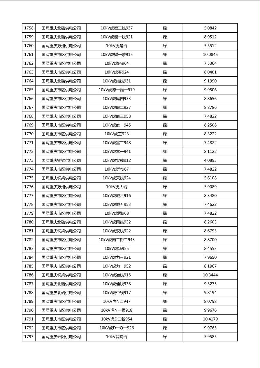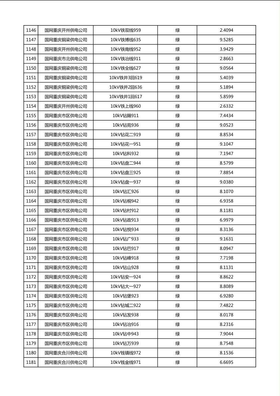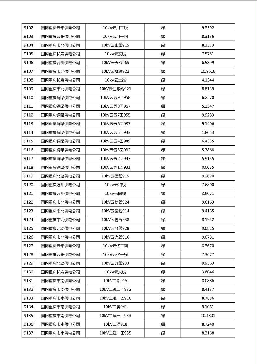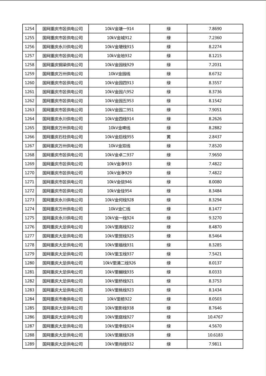 国网重庆市电力公司2026年第1季度分布式光伏可开放容量公示(配线)