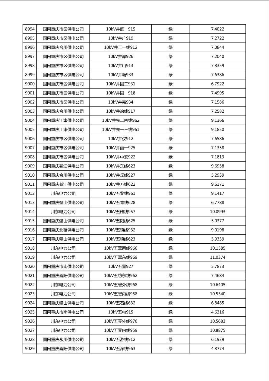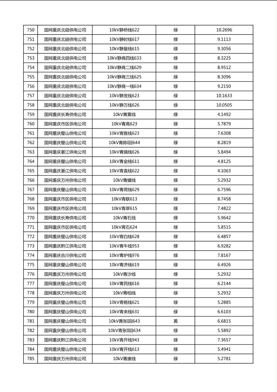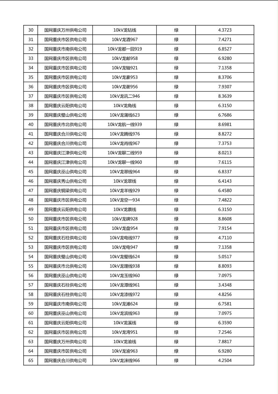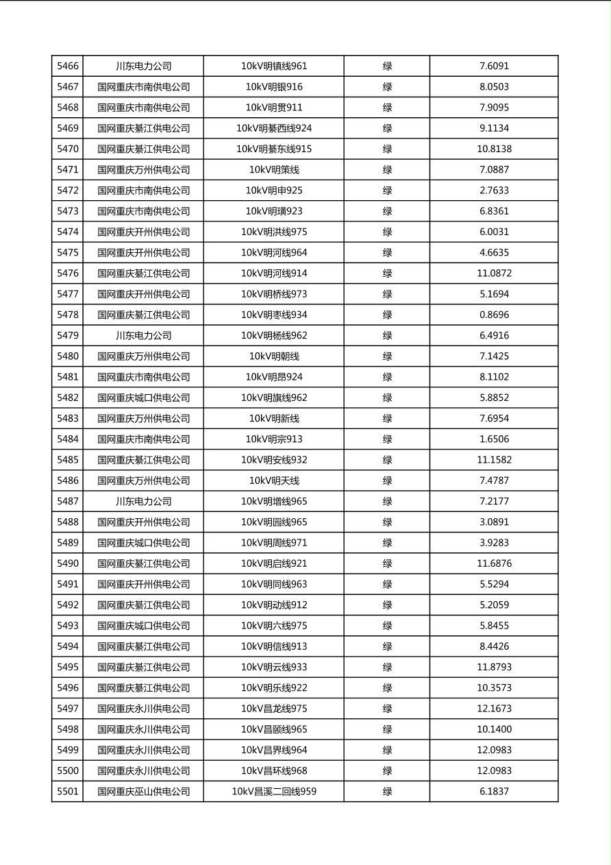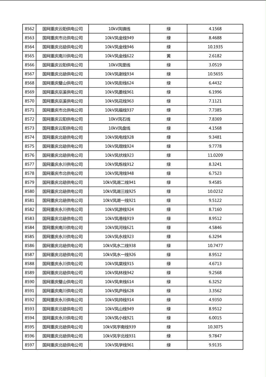 国网重庆市电力公司2026年第1季度分布式光伏可开放容量公示(配线)