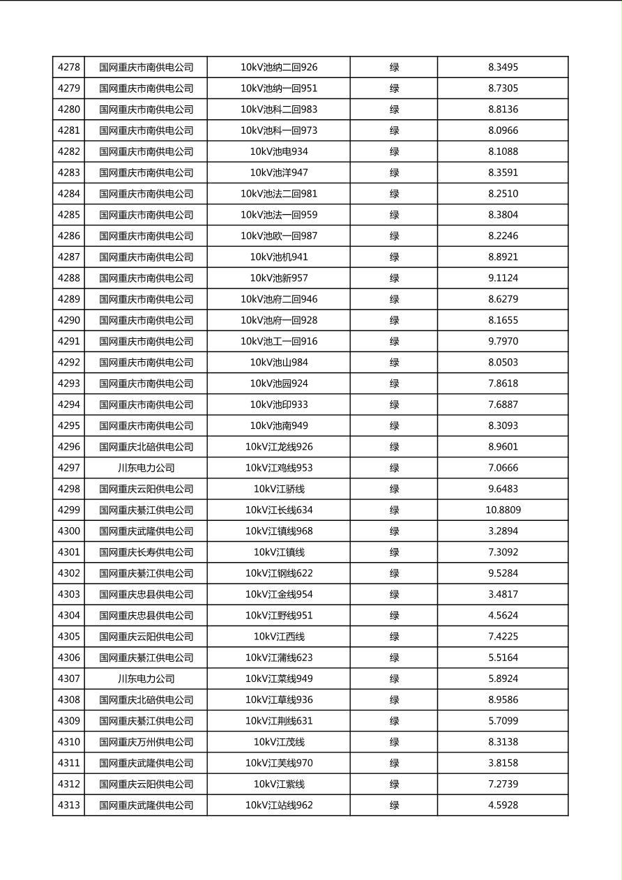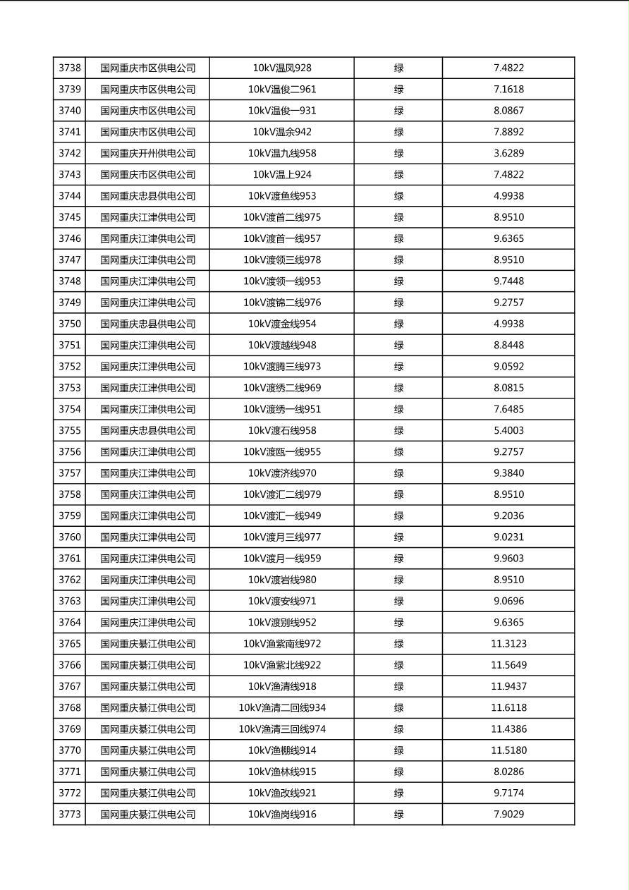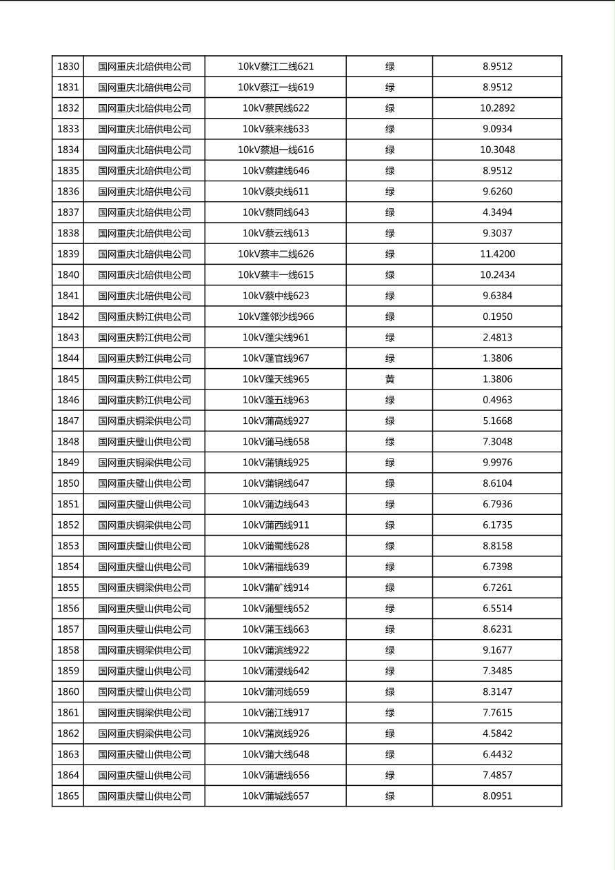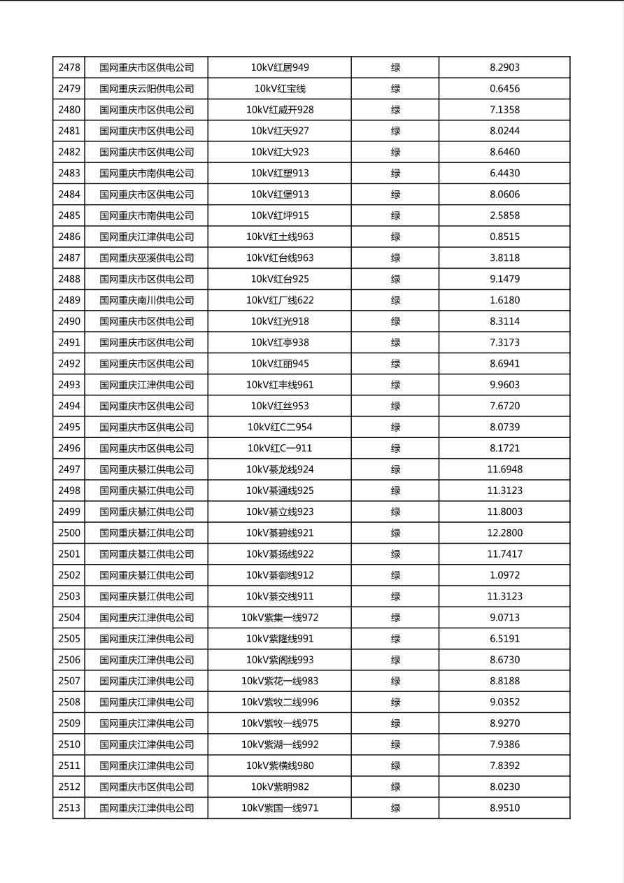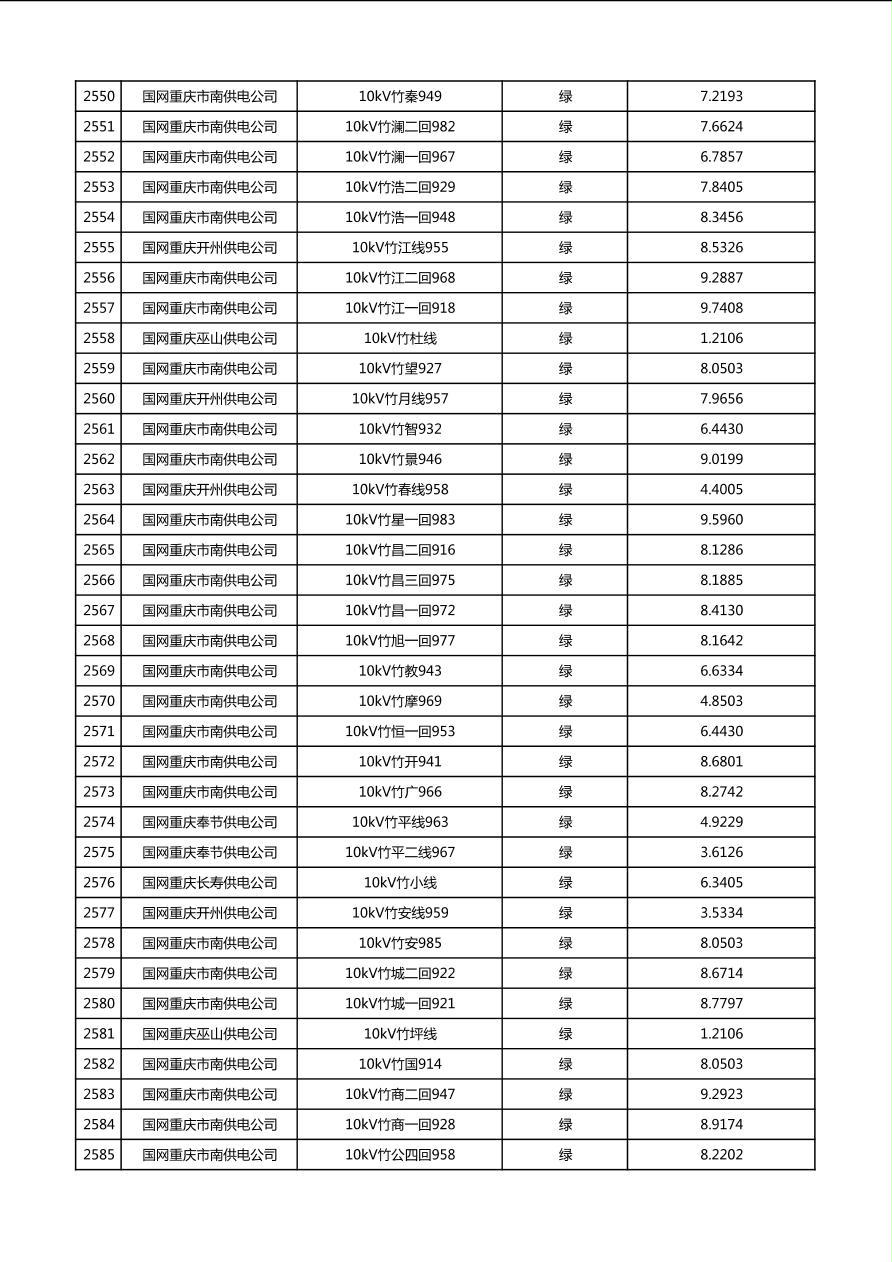 国网重庆市电力公司2026年第1季度分布式光伏可开放容量公示(配线)