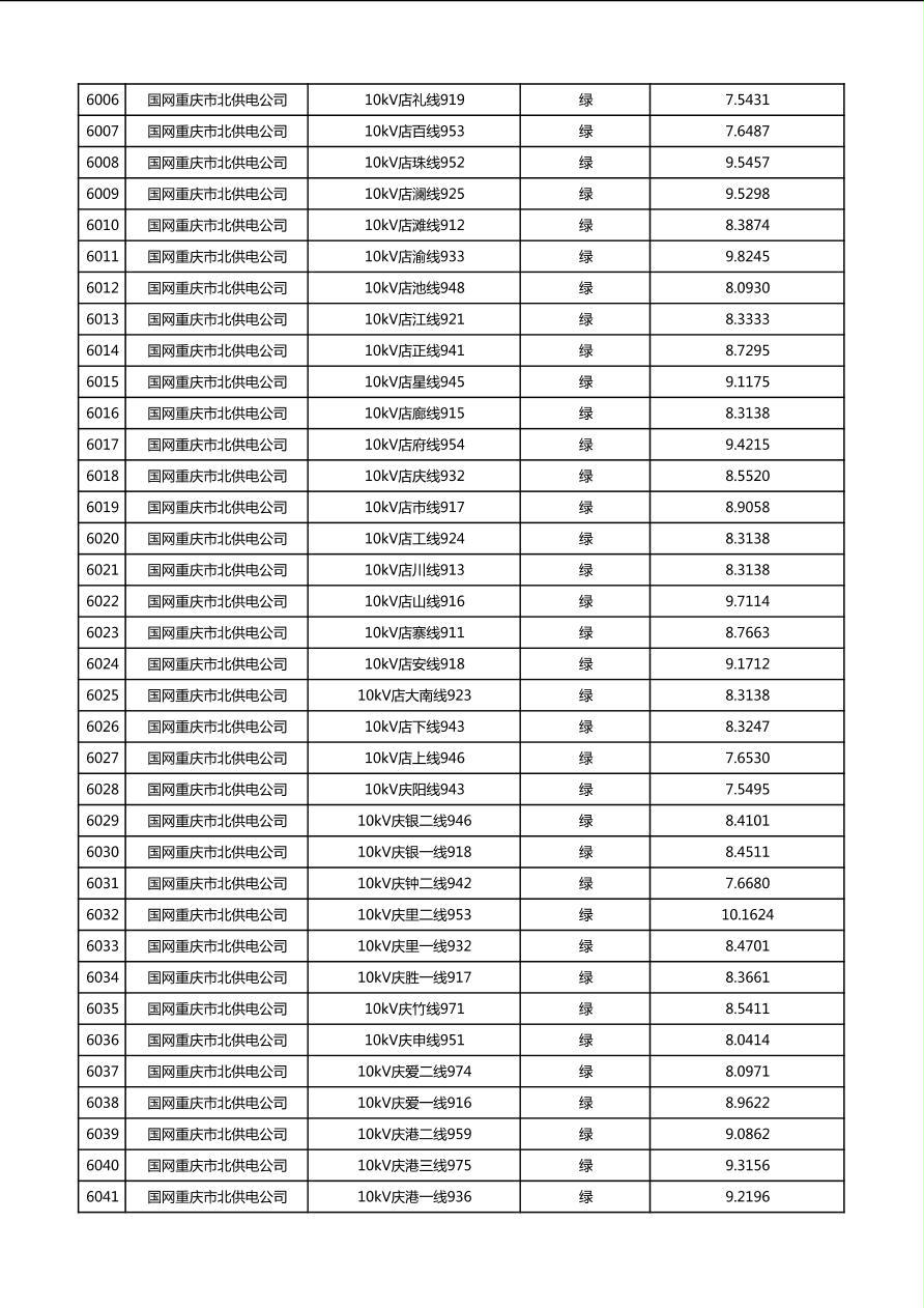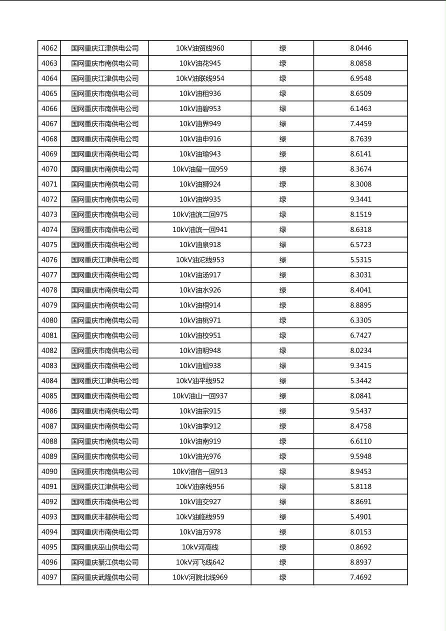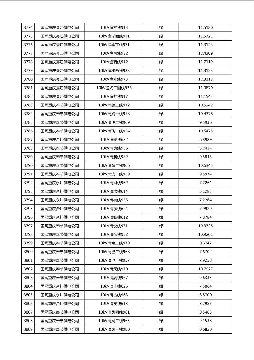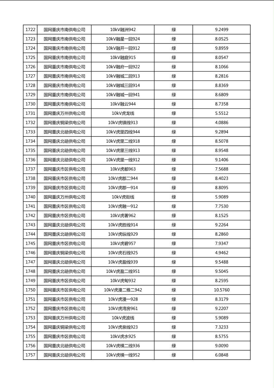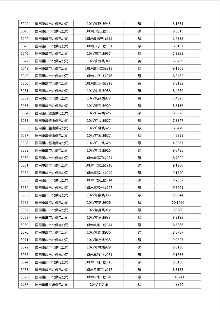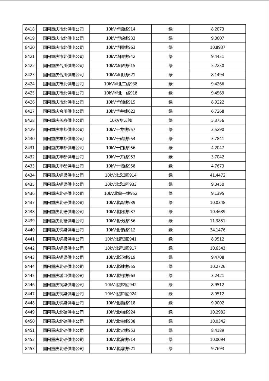 国网重庆市电力公司2026年第1季度分布式光伏可开放容量公示(配线)