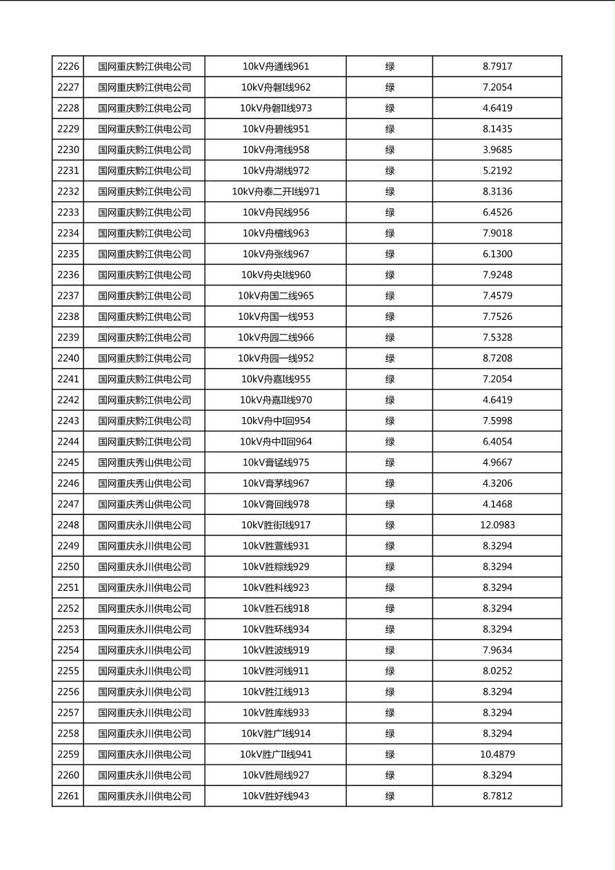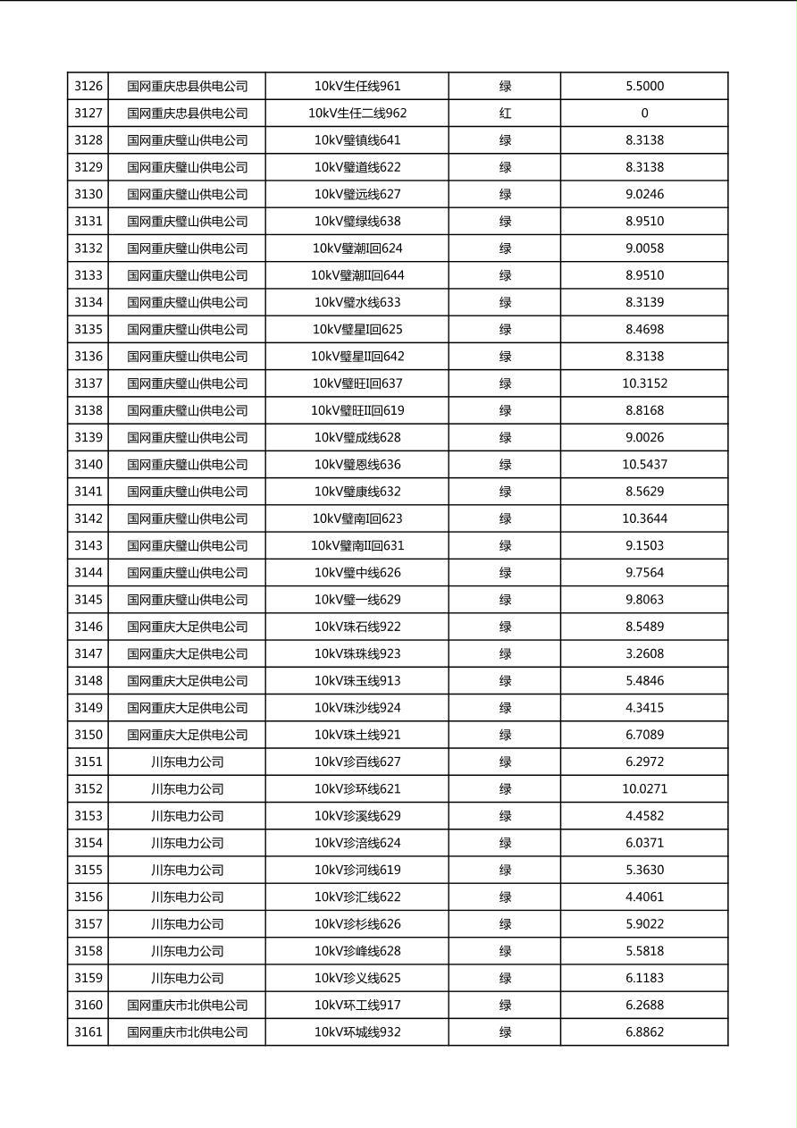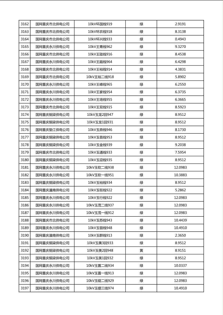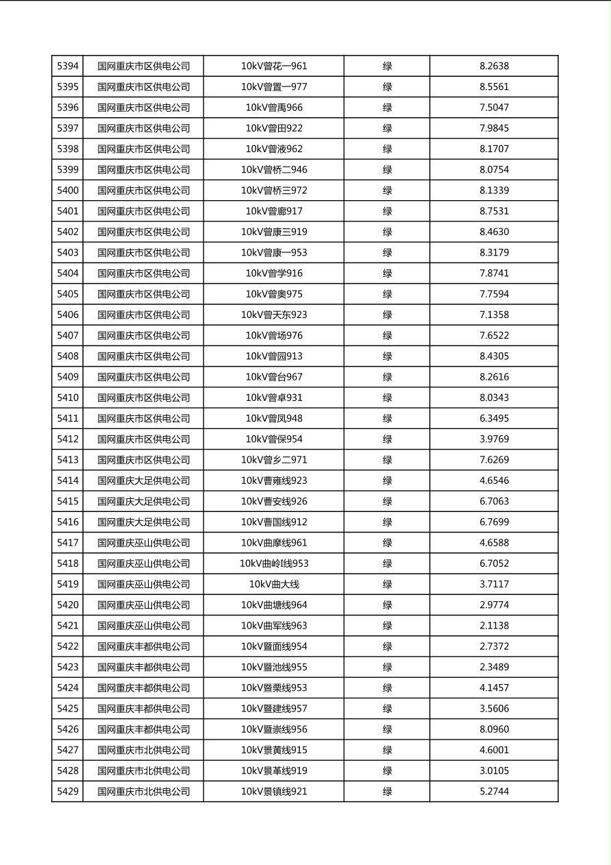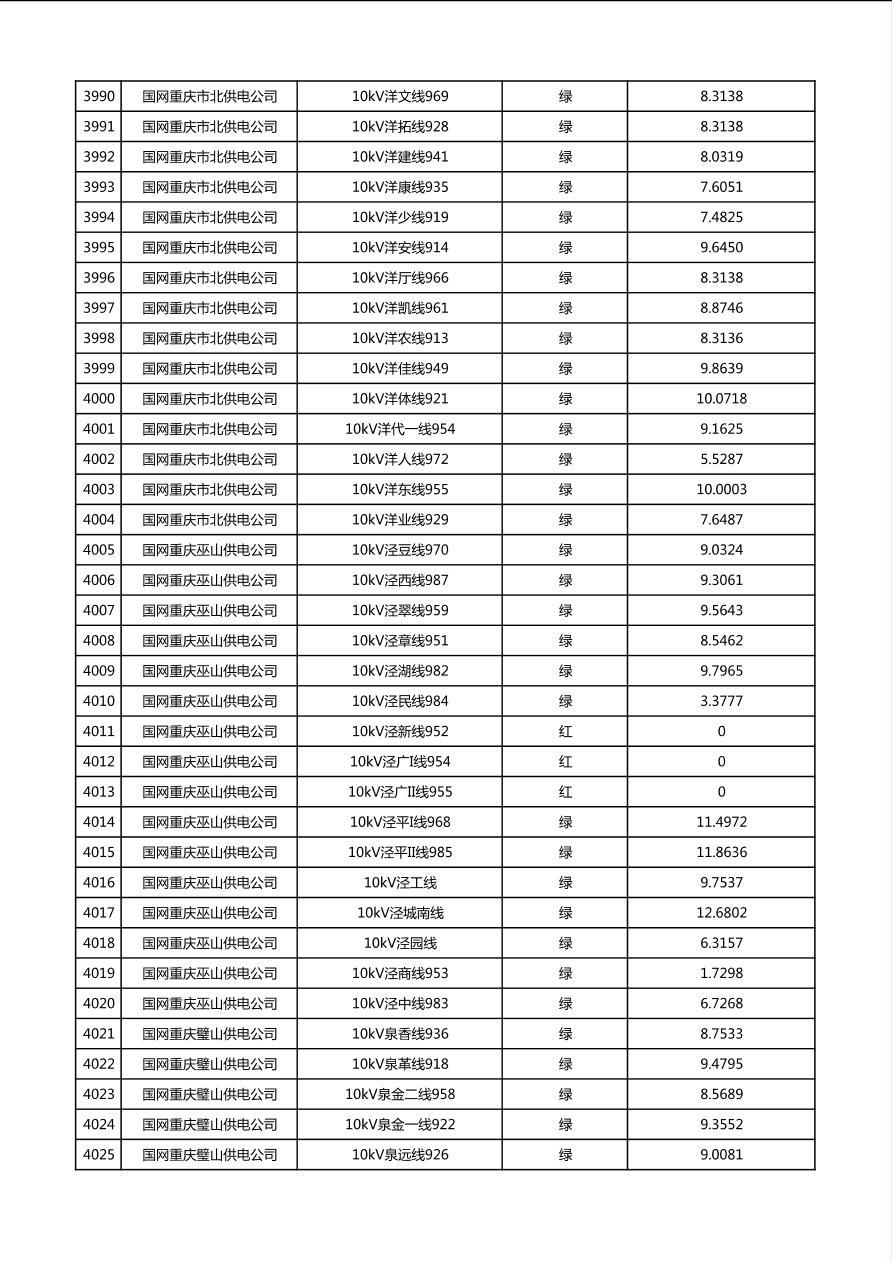 国网重庆市电力公司2026年第1季度分布式光伏可开放容量公示(配线)