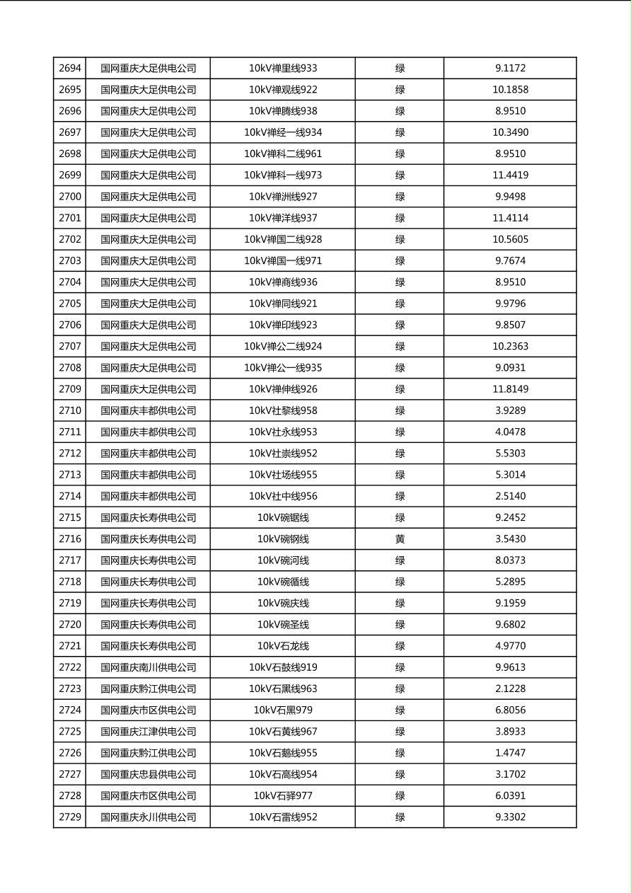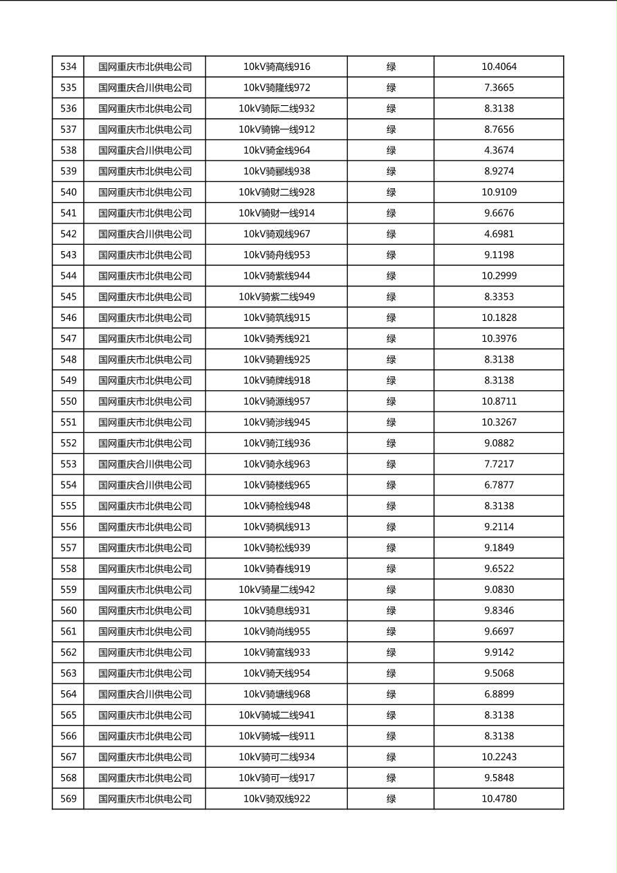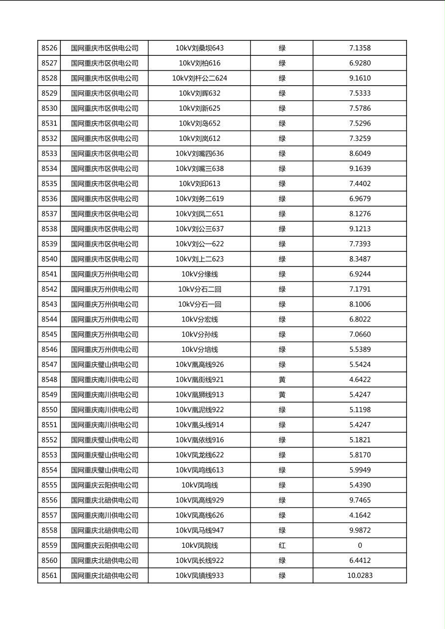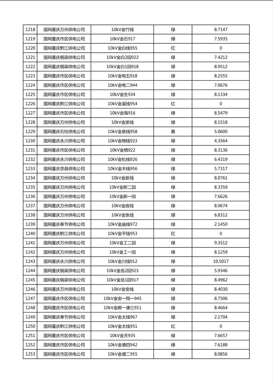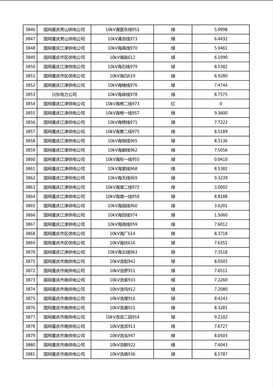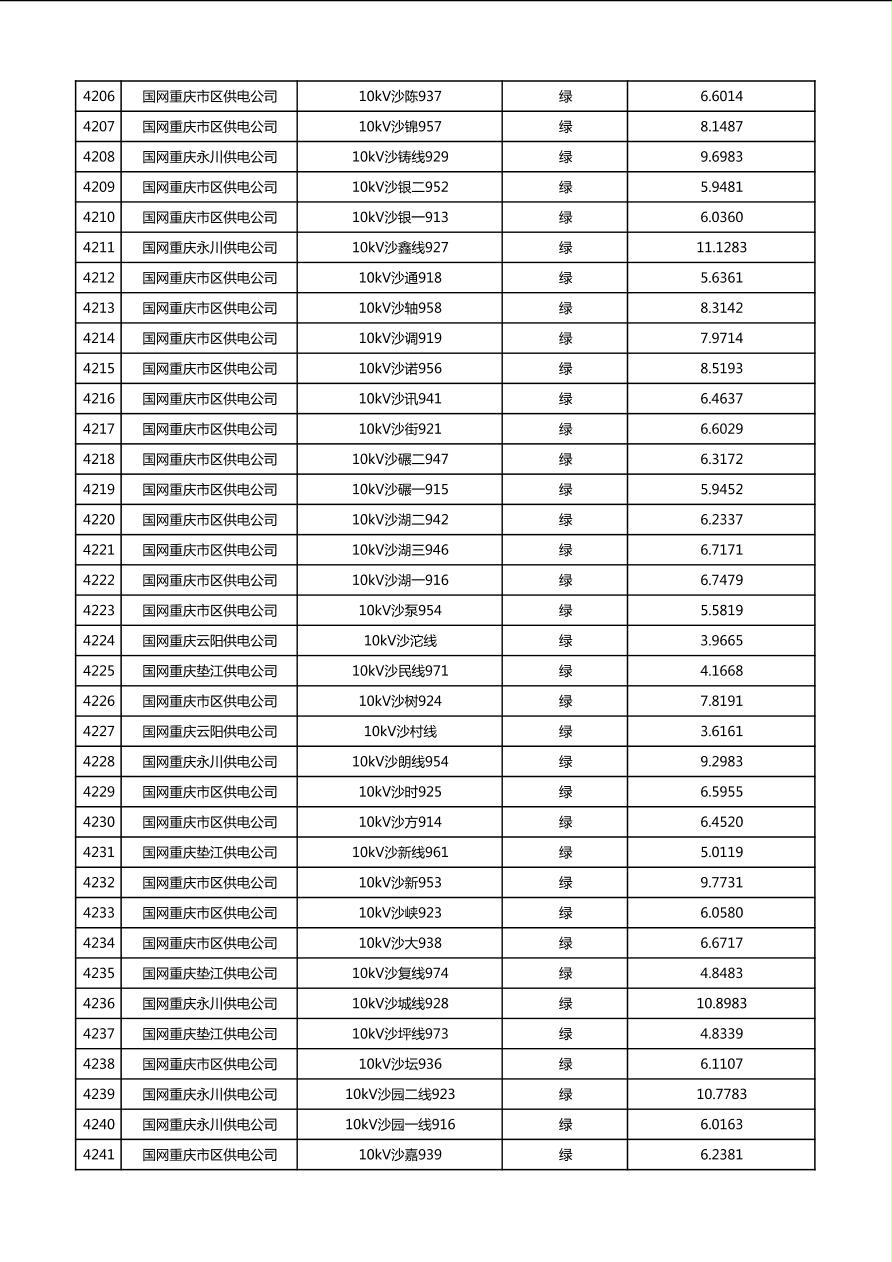 国网重庆市电力公司2026年第1季度分布式光伏可开放容量公示(配线)