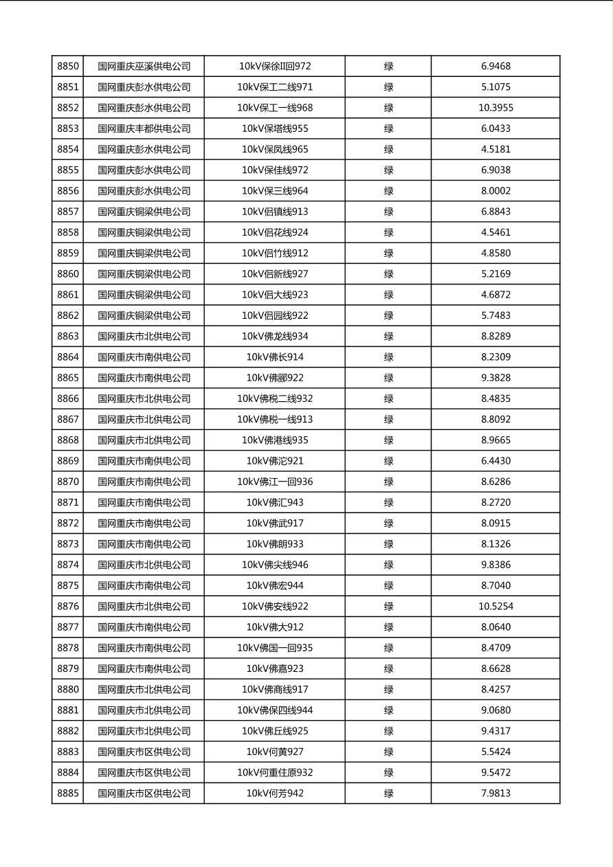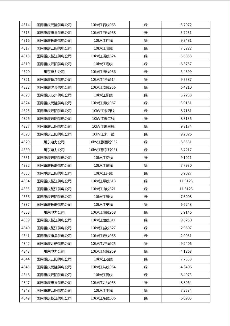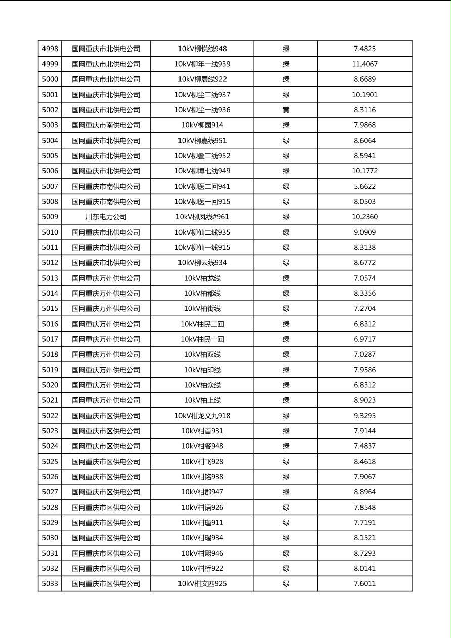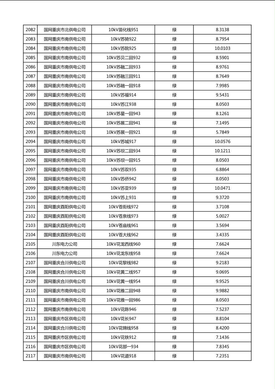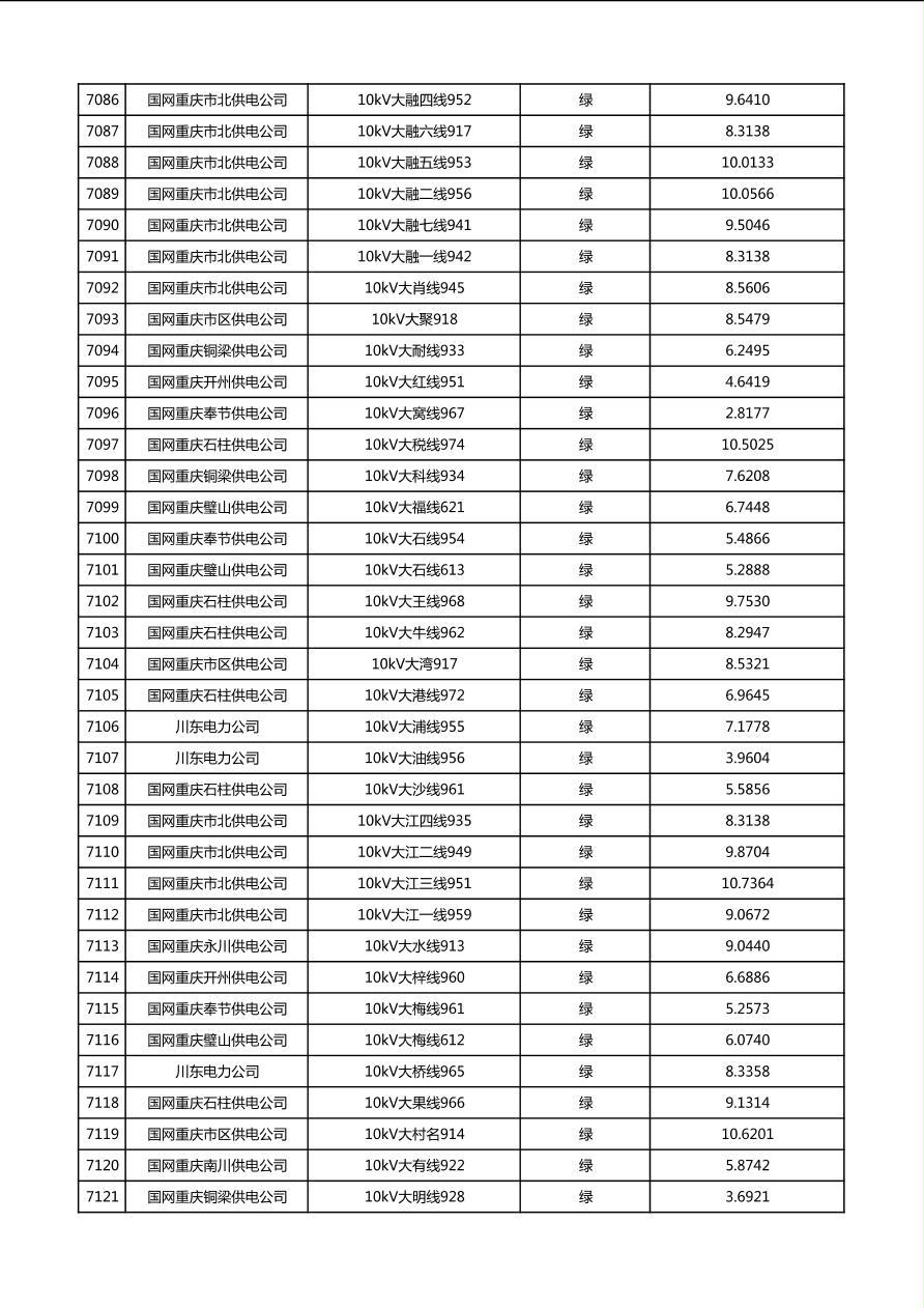 国网重庆市电力公司2026年第1季度分布式光伏可开放容量公示(配线)