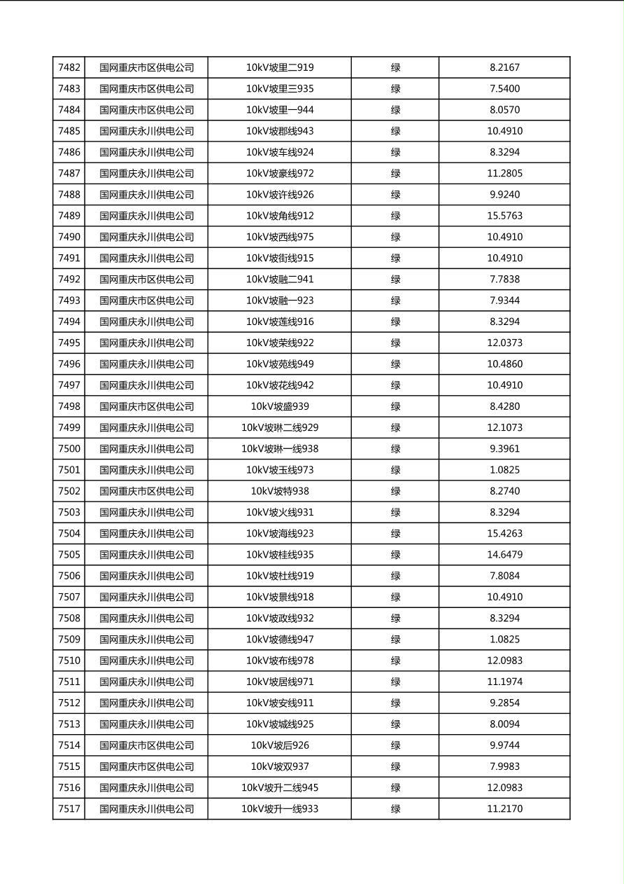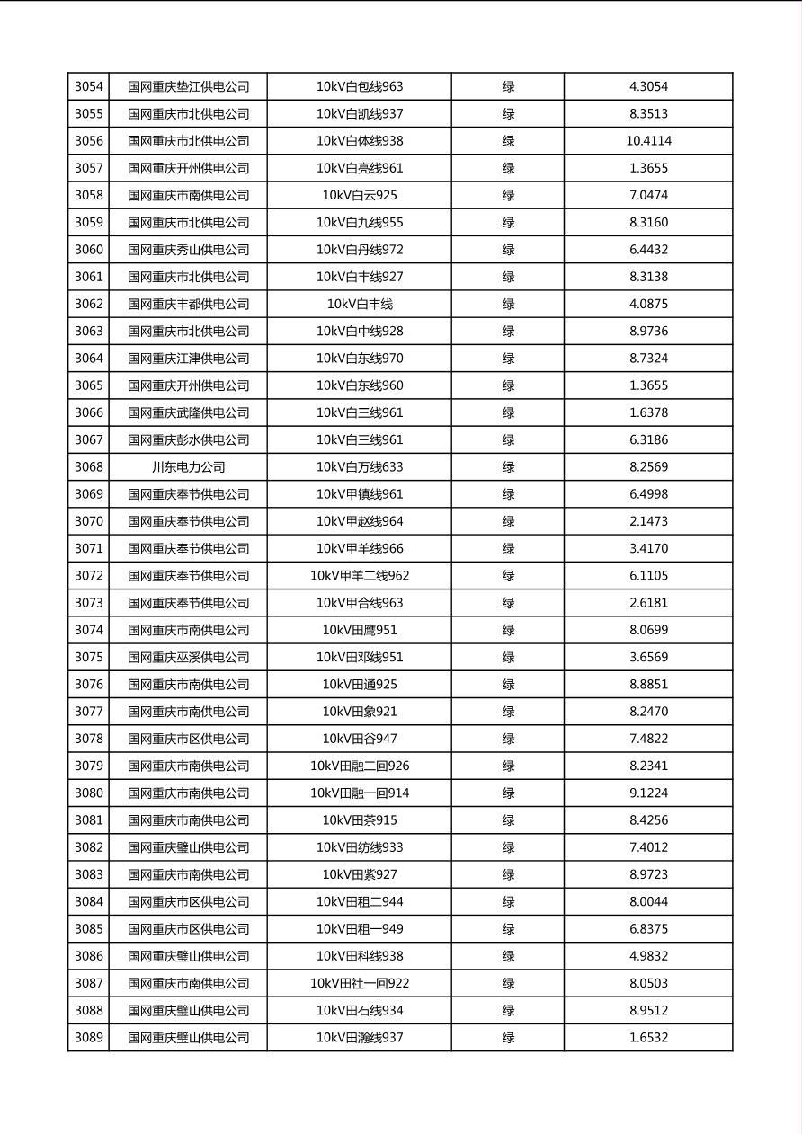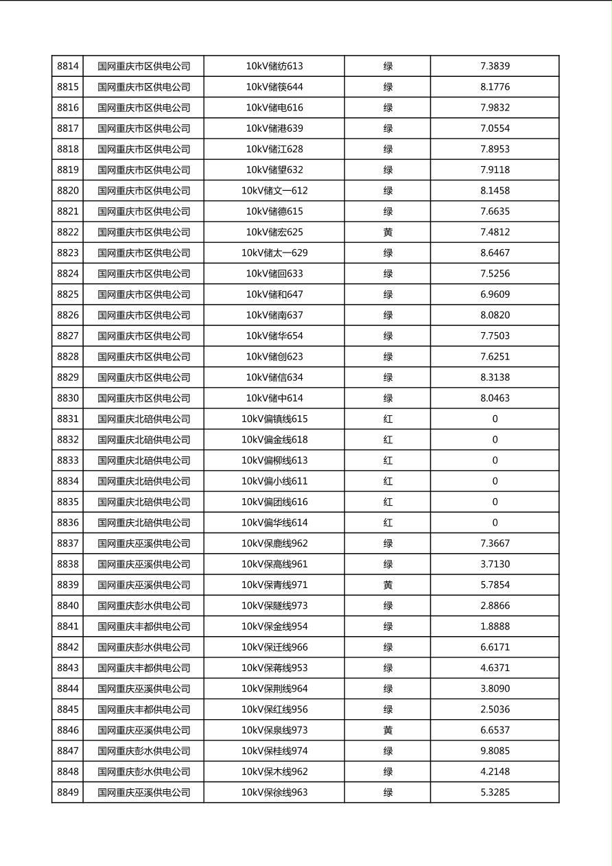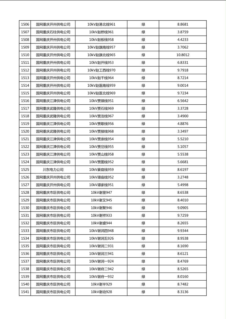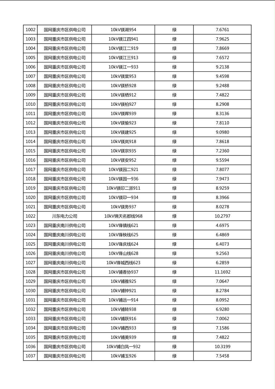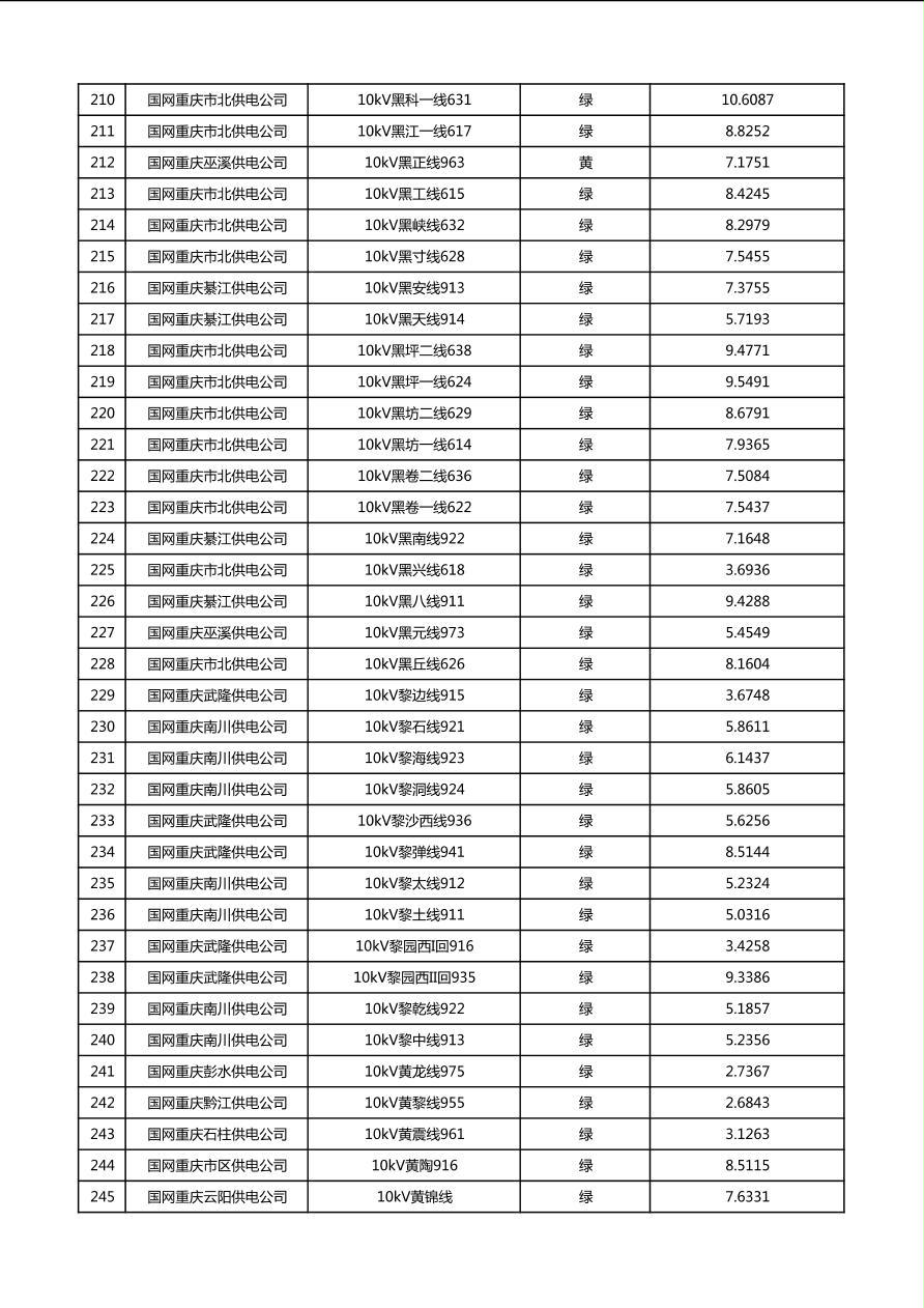 国网重庆市电力公司2026年第1季度分布式光伏可开放容量公示(配线)
