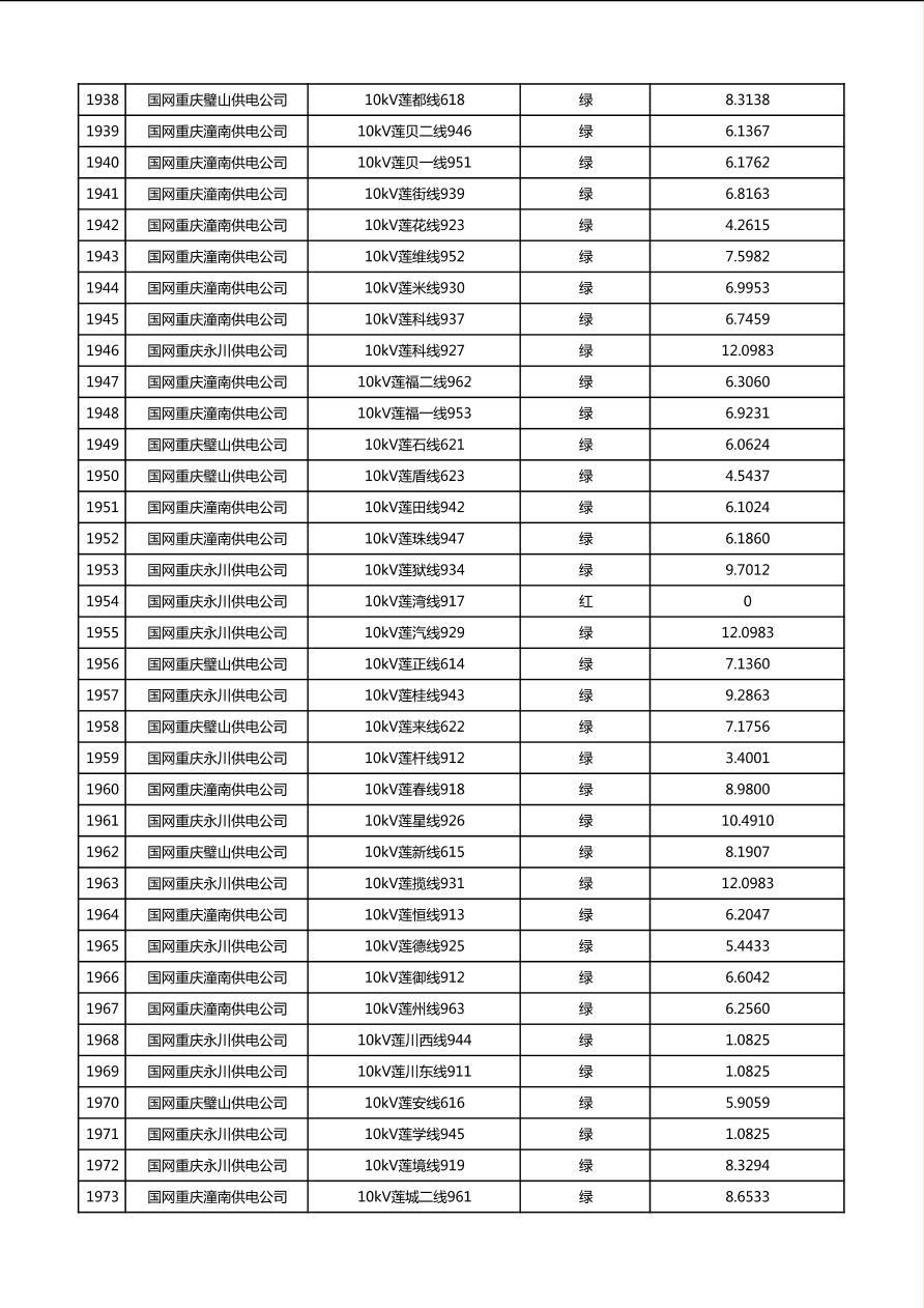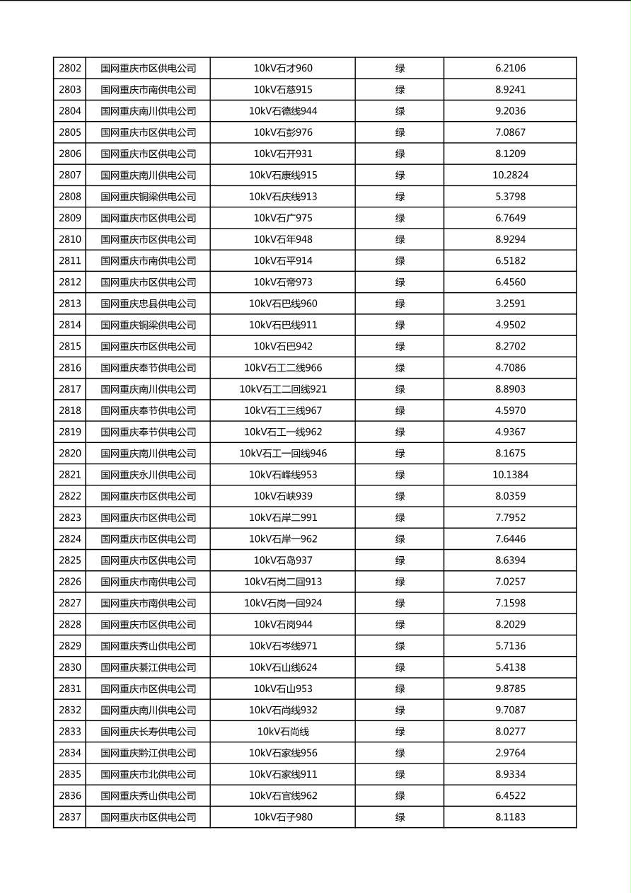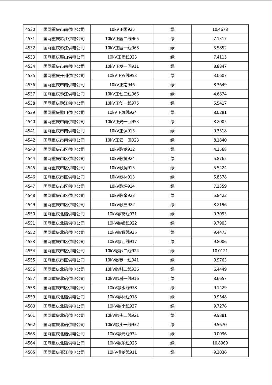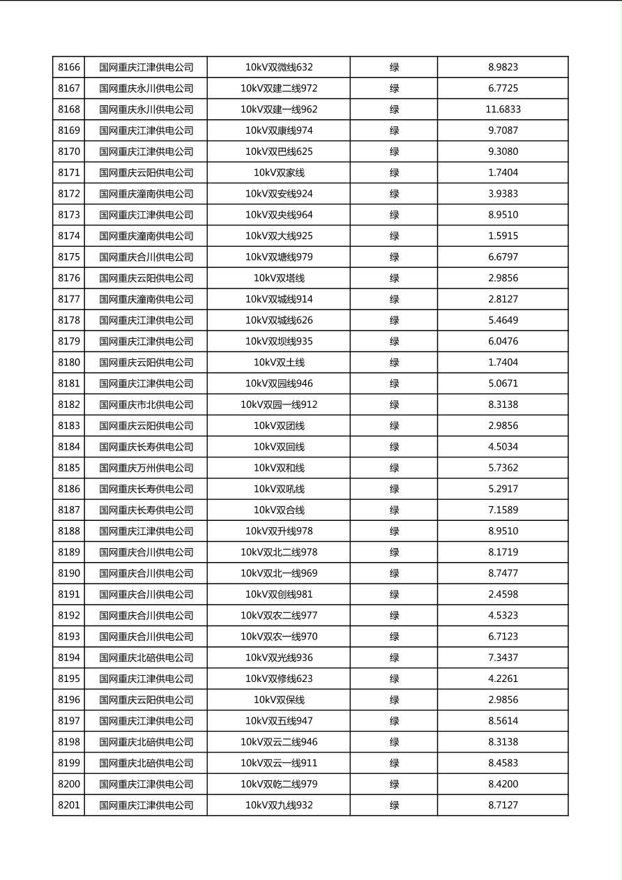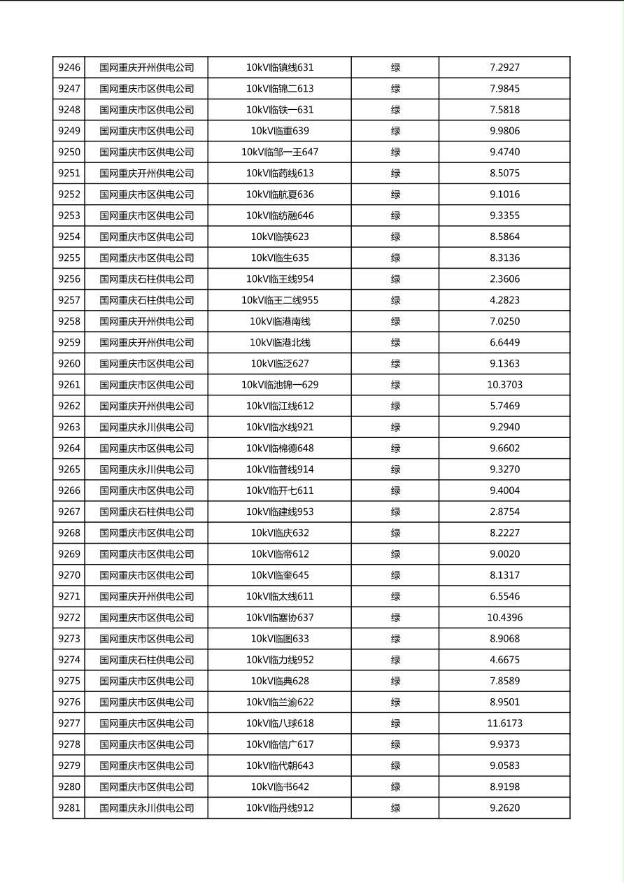 国网重庆市电力公司2026年第1季度分布式光伏可开放容量公示(配线)