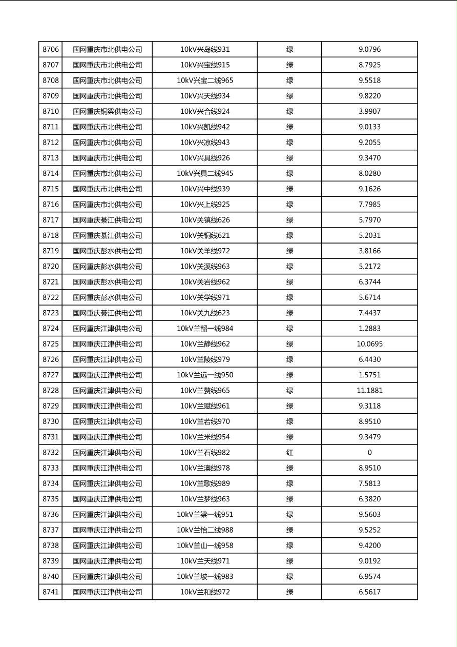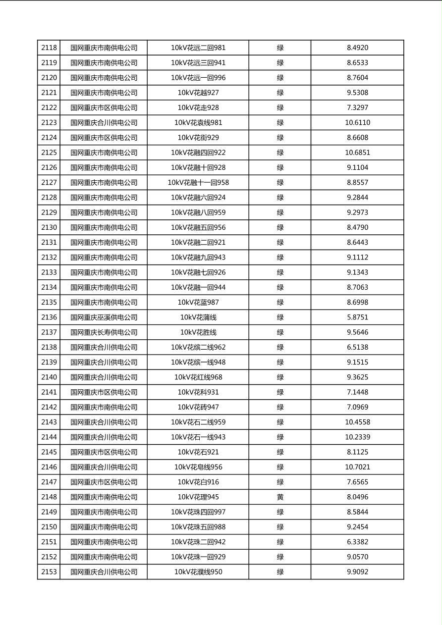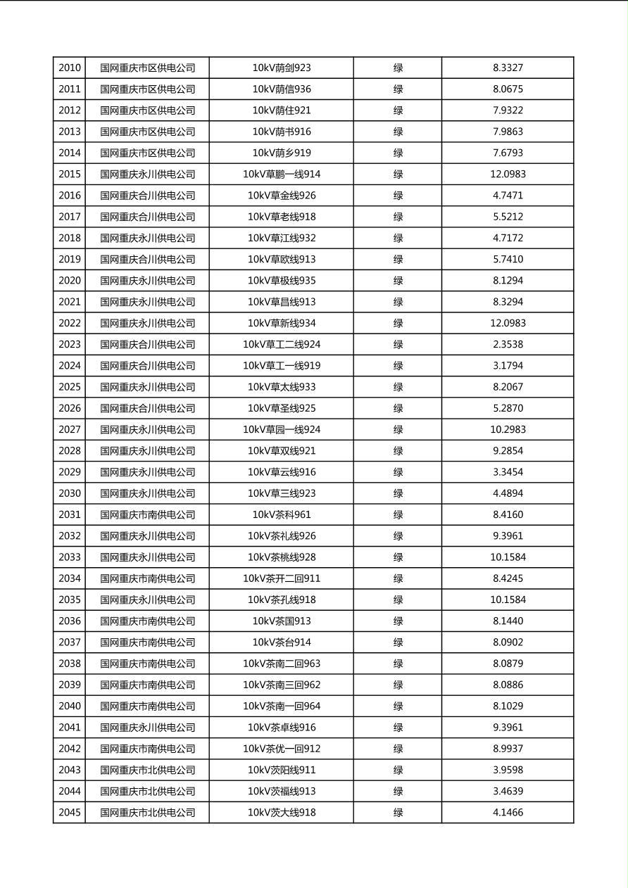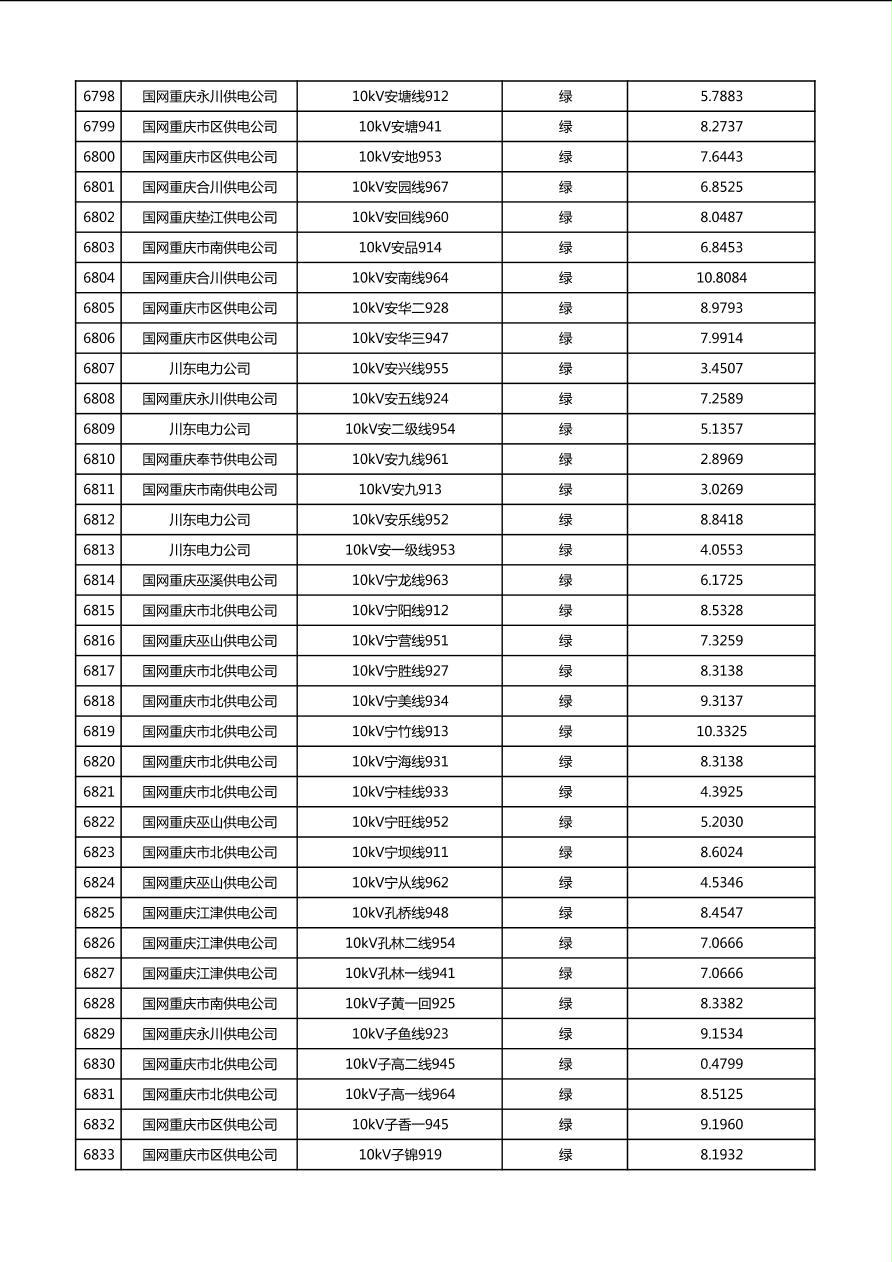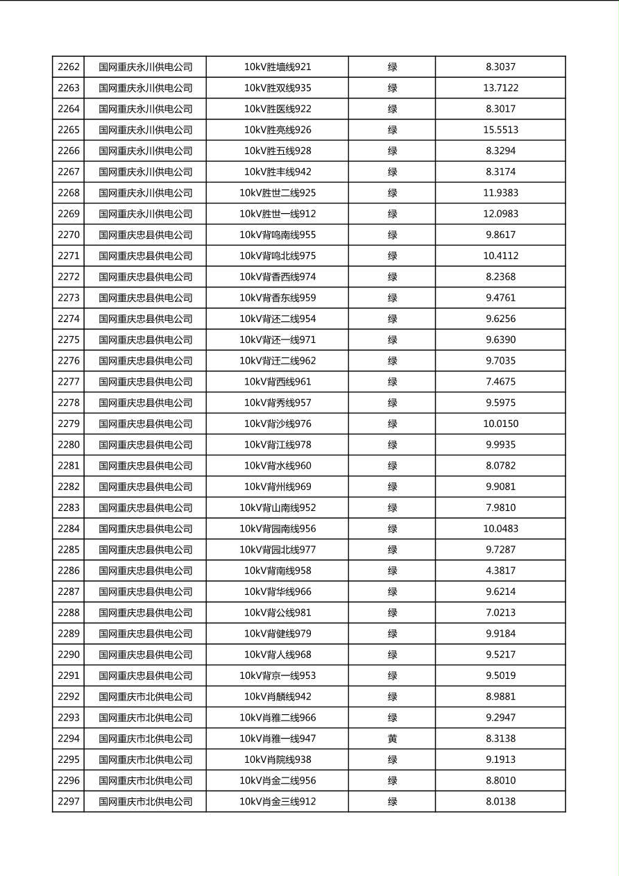 国网重庆市电力公司2026年第1季度分布式光伏可开放容量公示(配线)