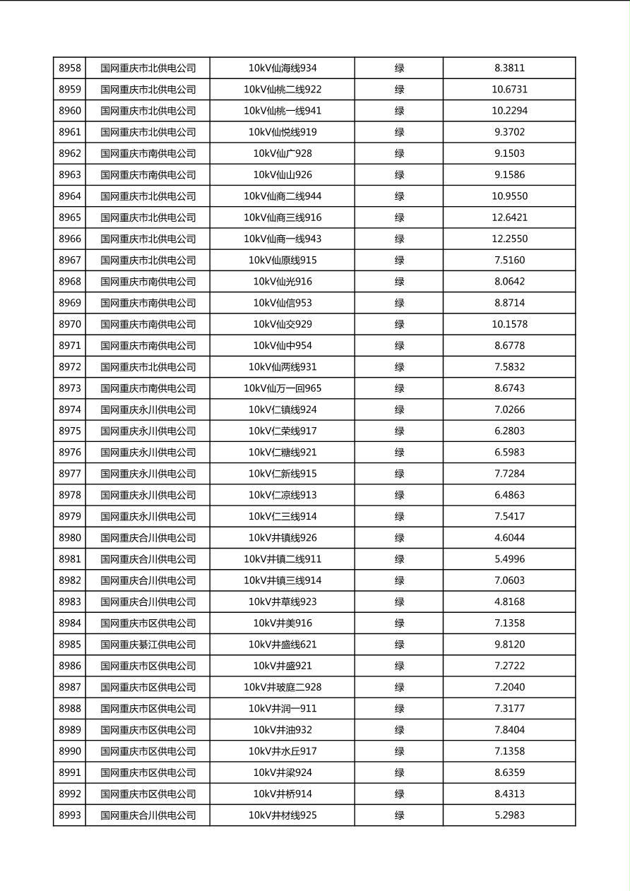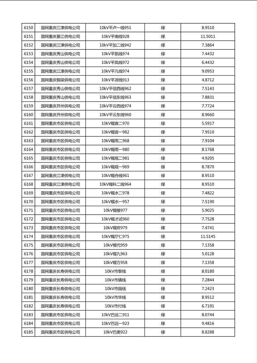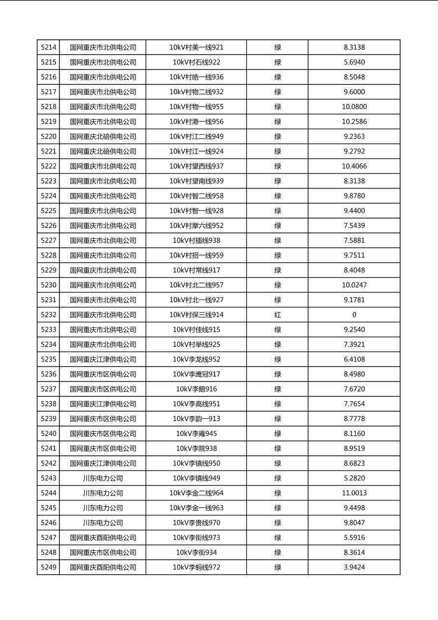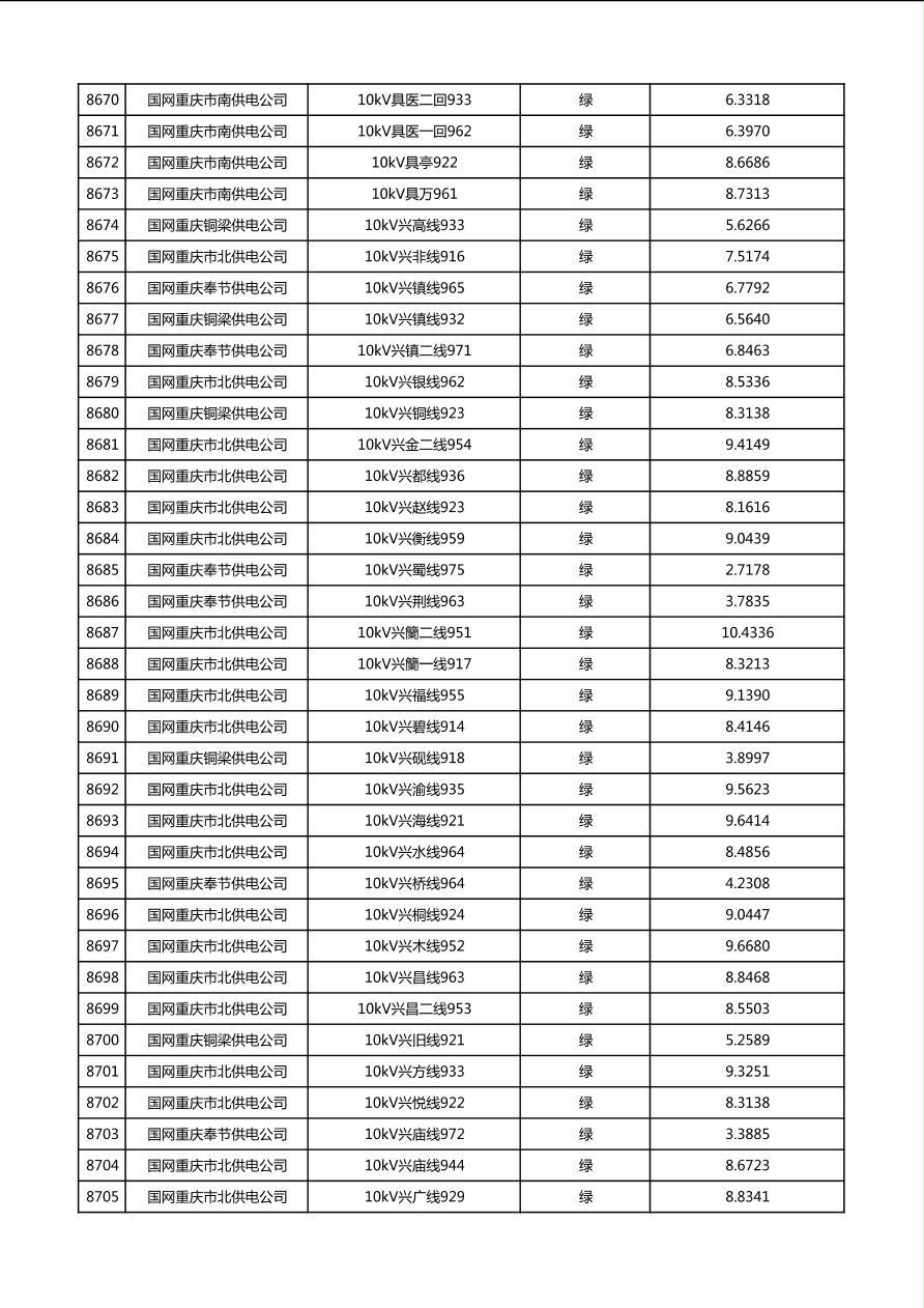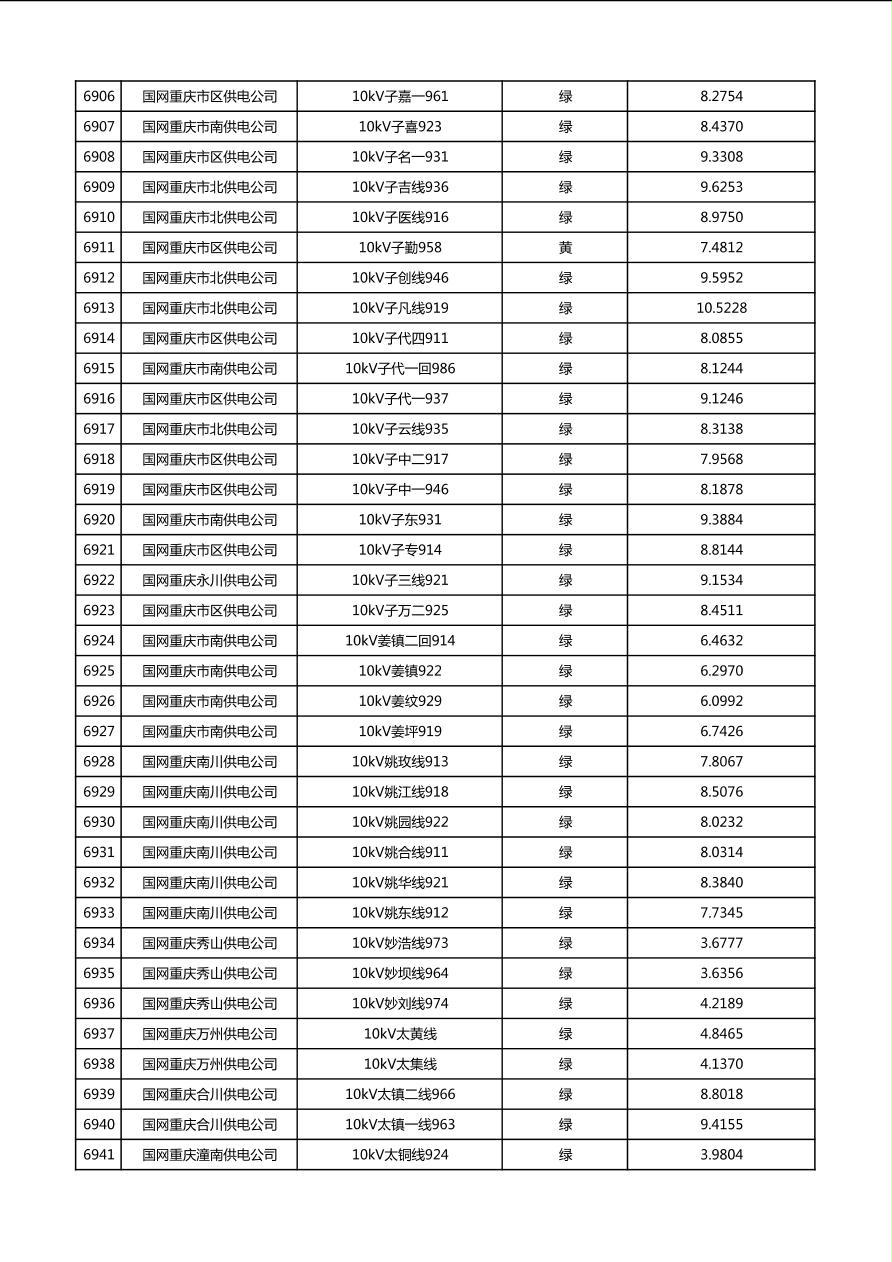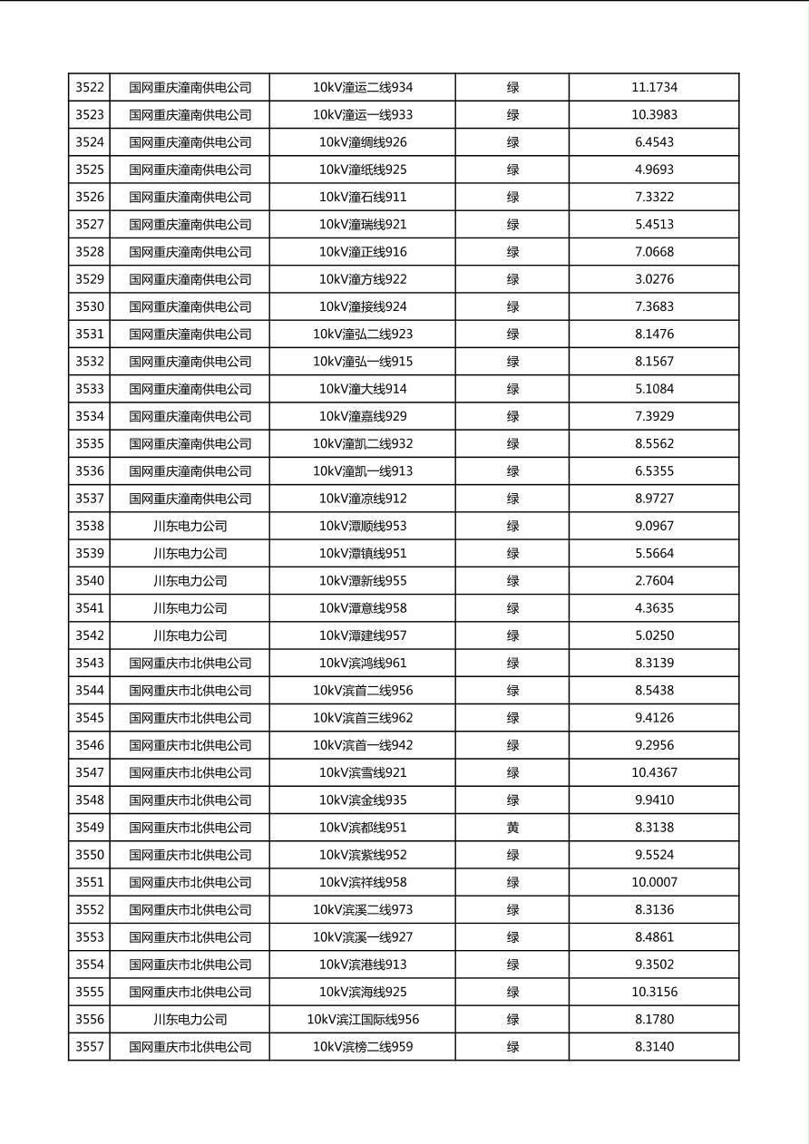 国网重庆市电力公司2026年第1季度分布式光伏可开放容量公示(配线)