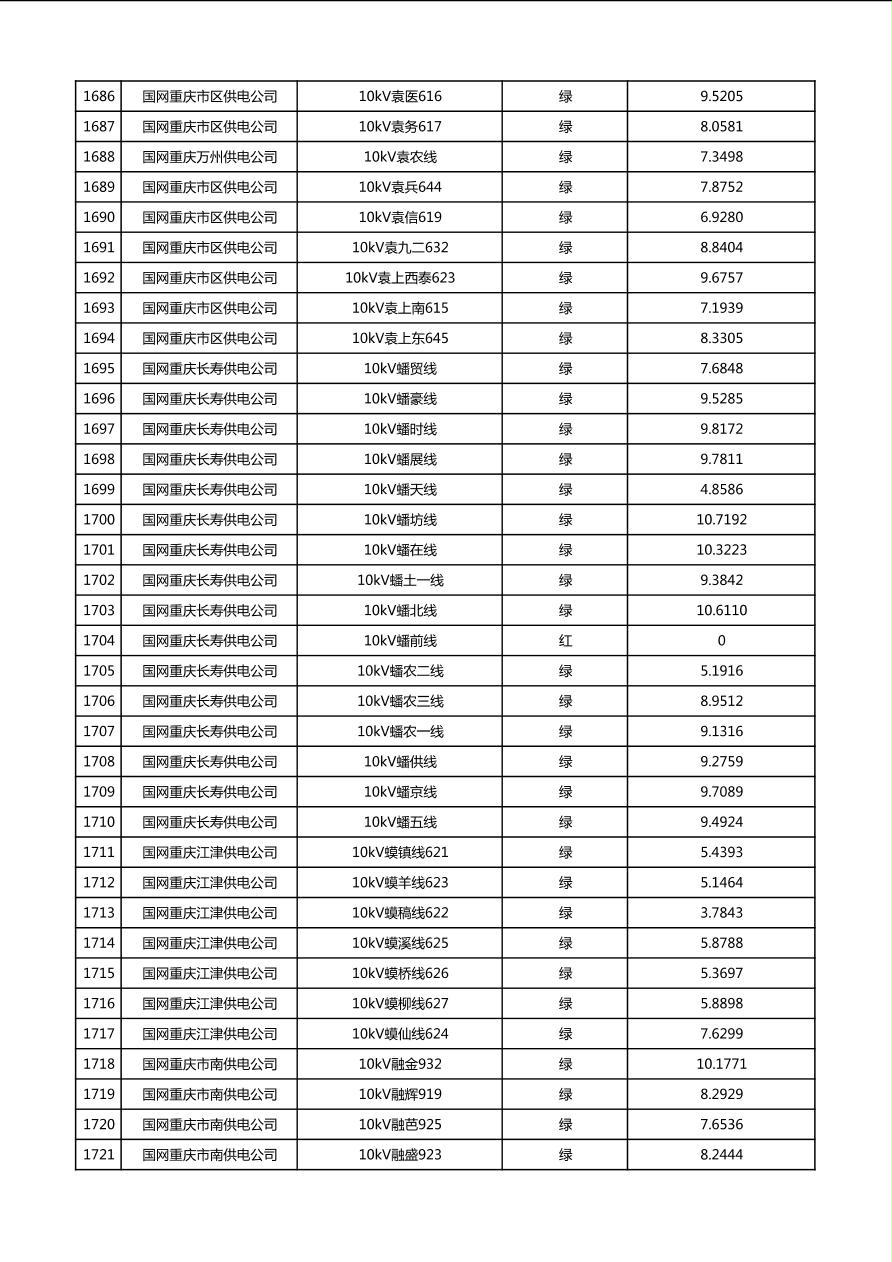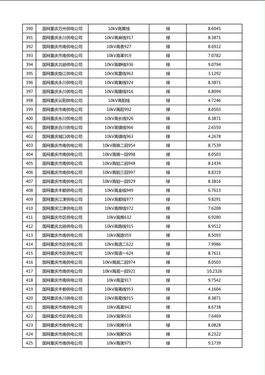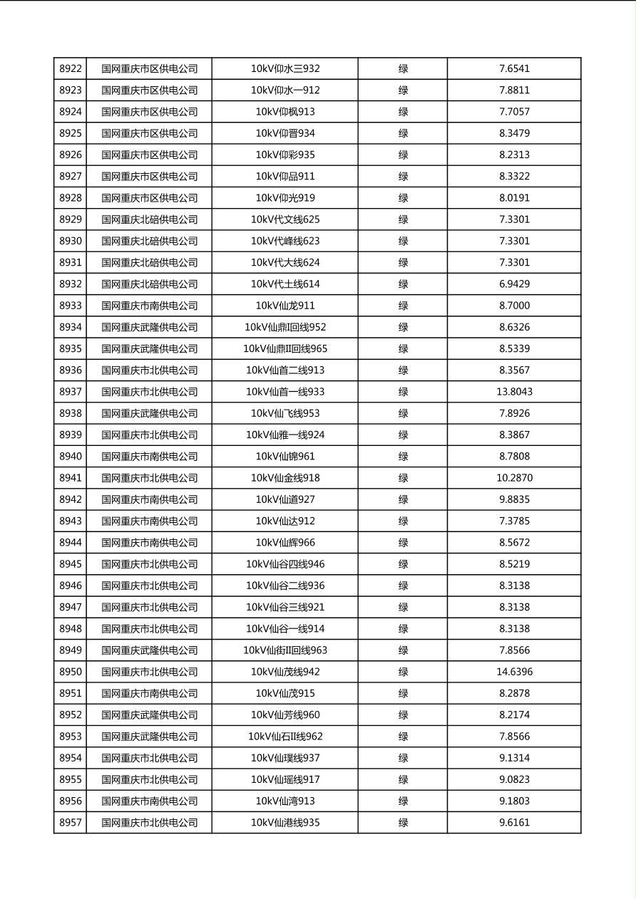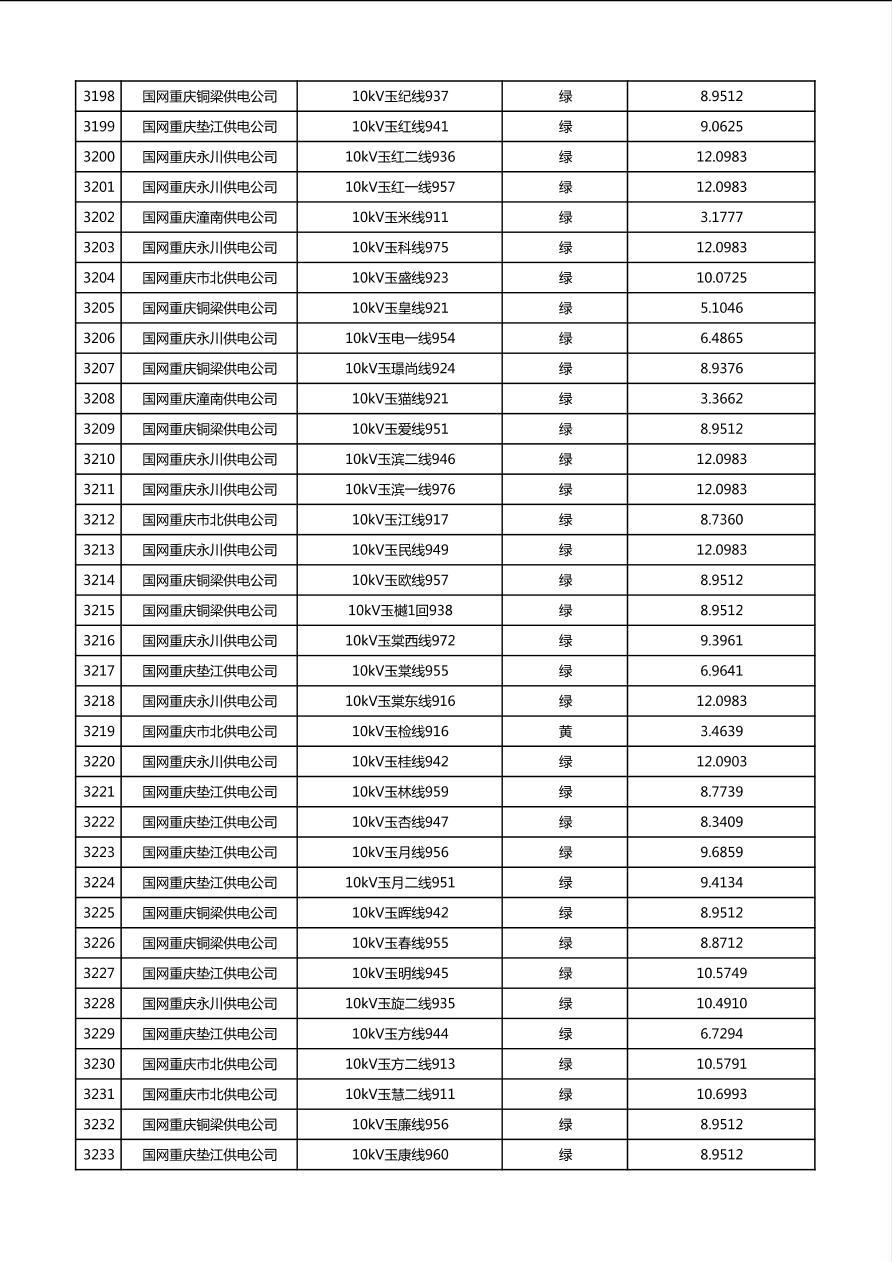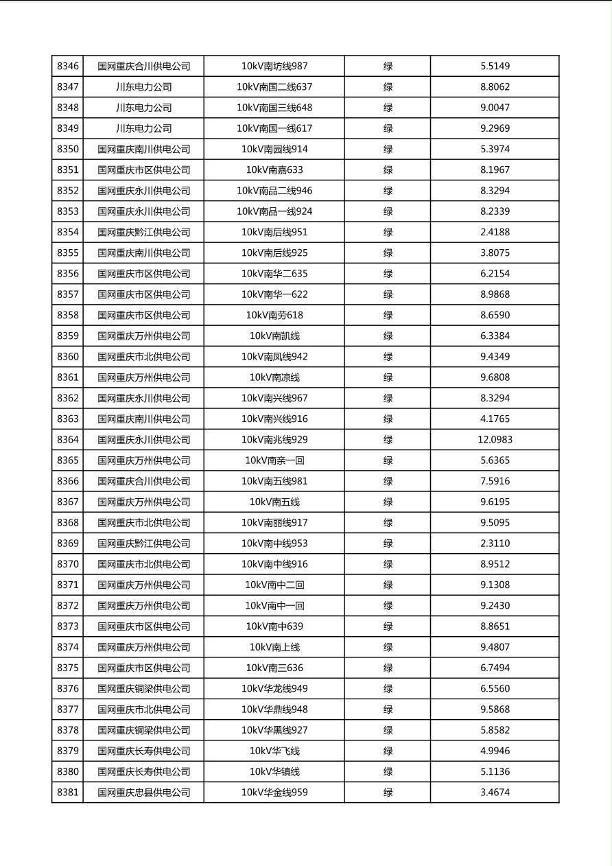 国网重庆市电力公司2026年第1季度分布式光伏可开放容量公示(配线)