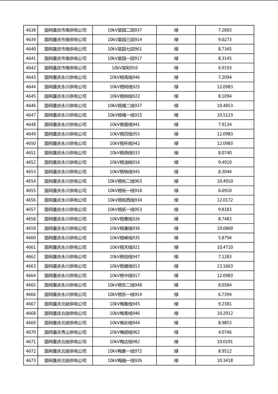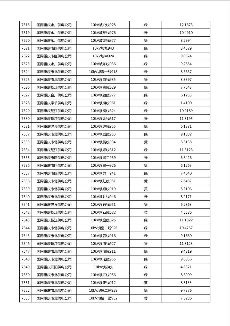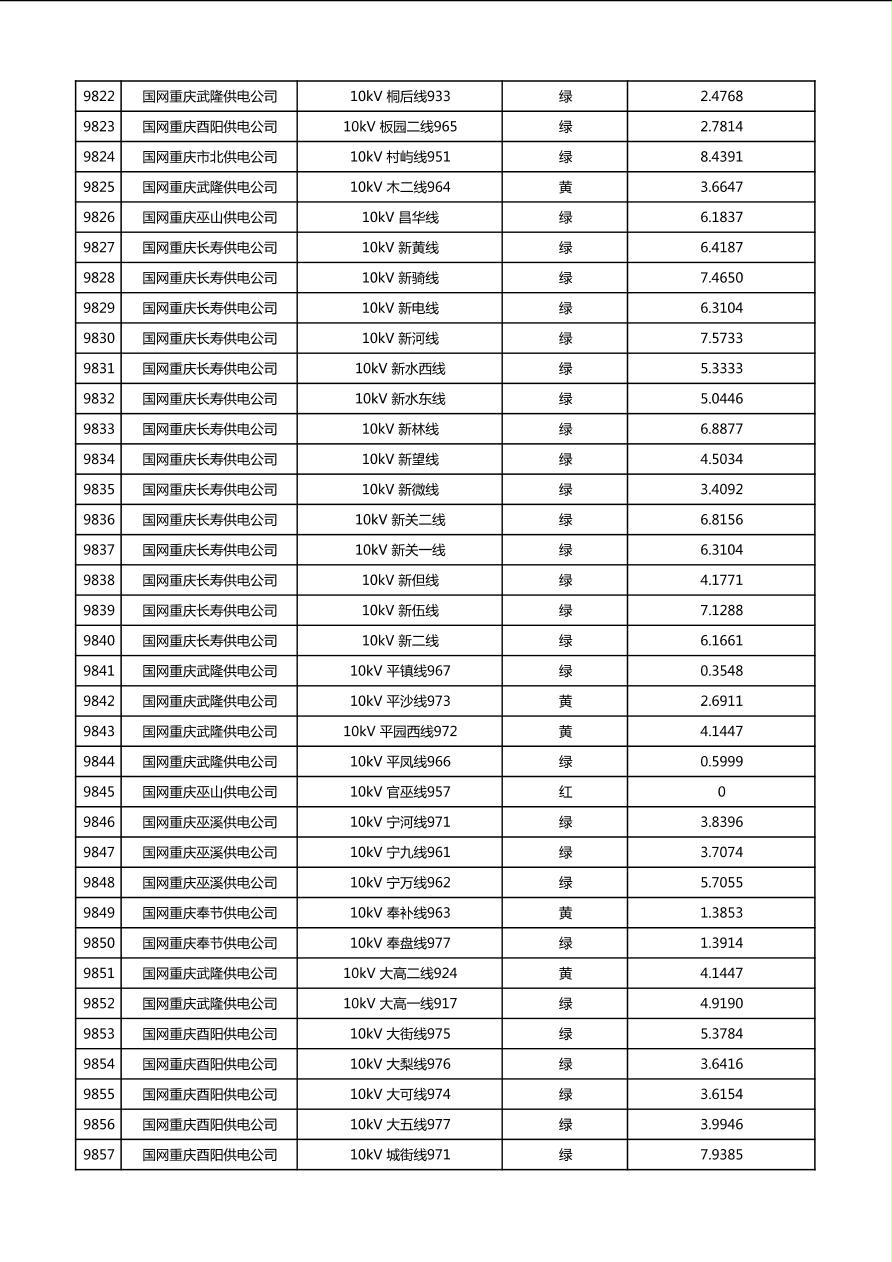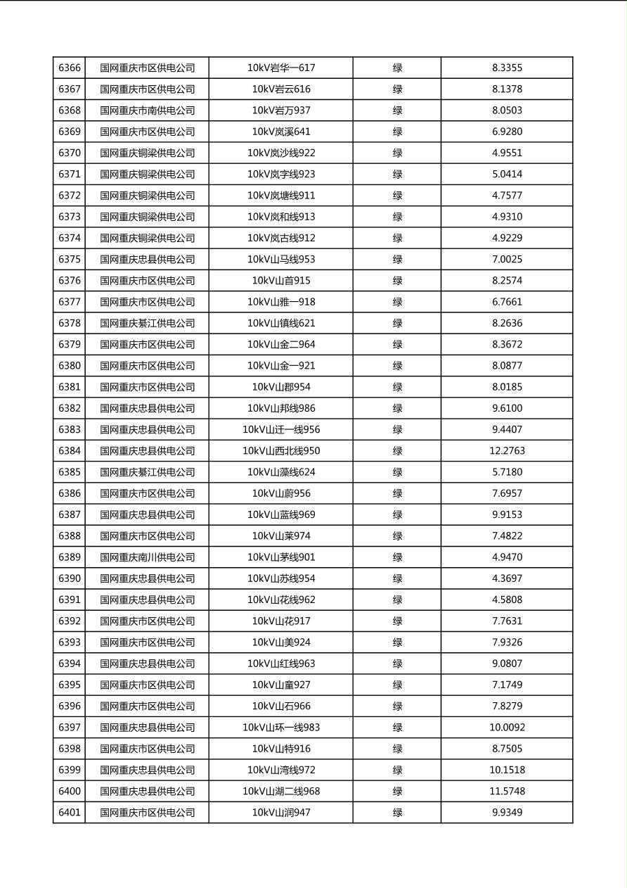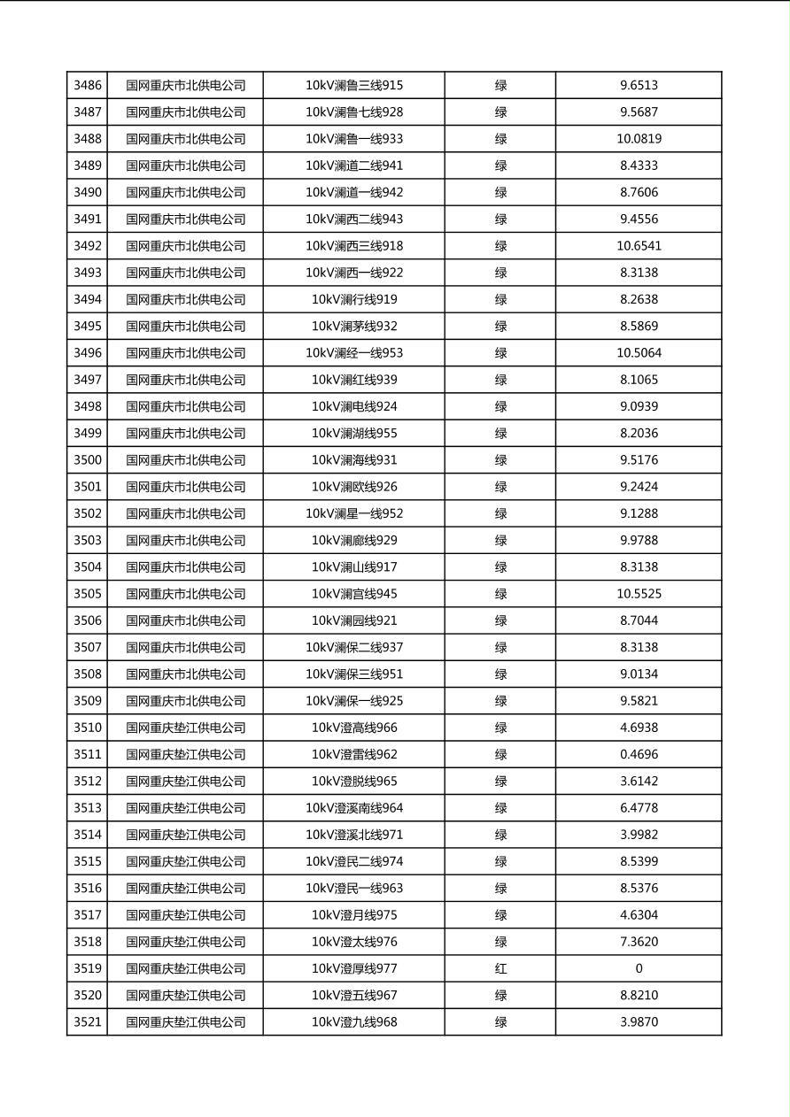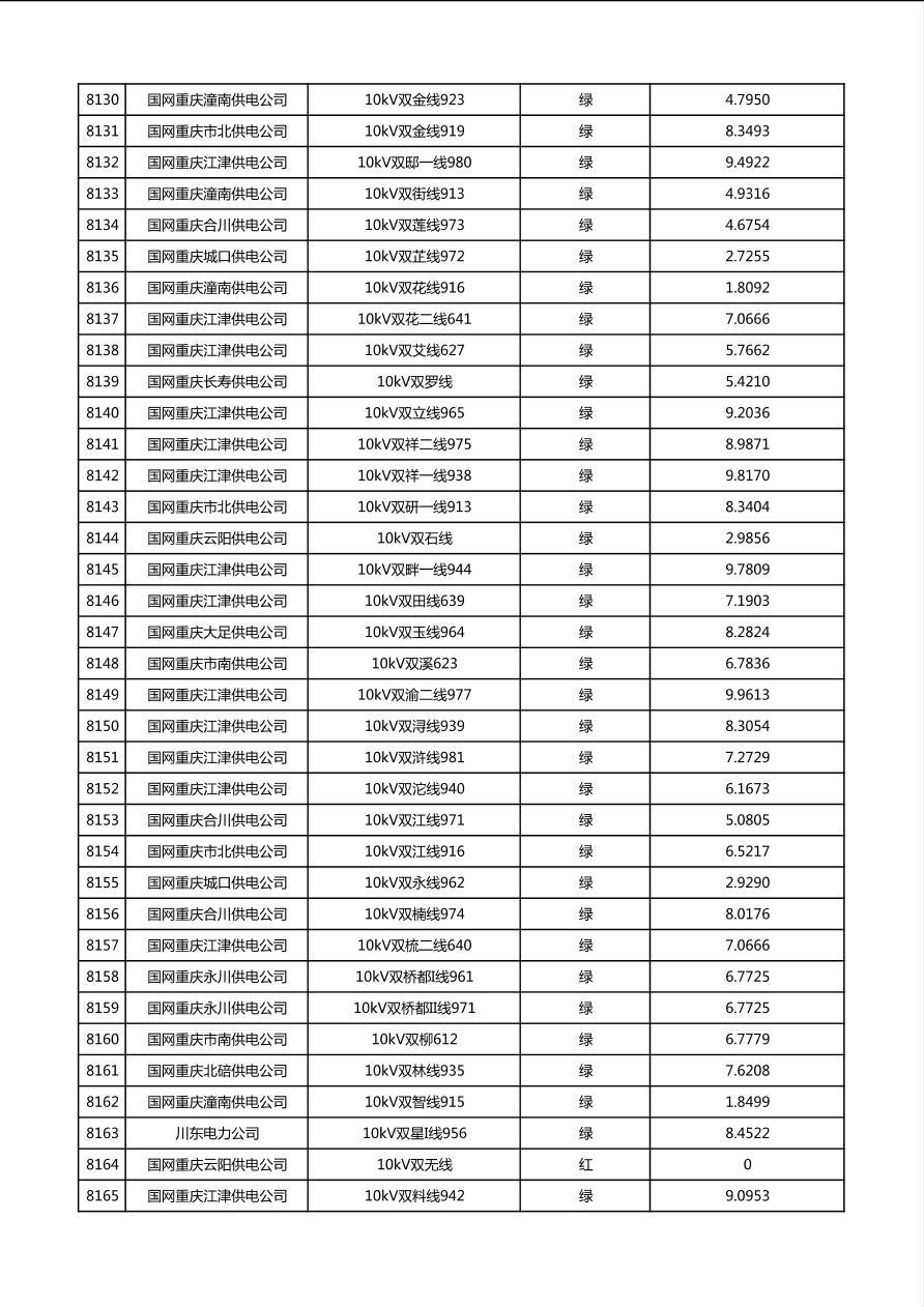 国网重庆市电力公司2026年第1季度分布式光伏可开放容量公示(配线)