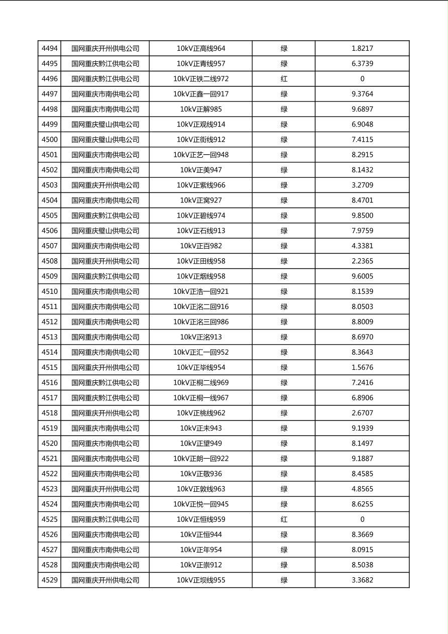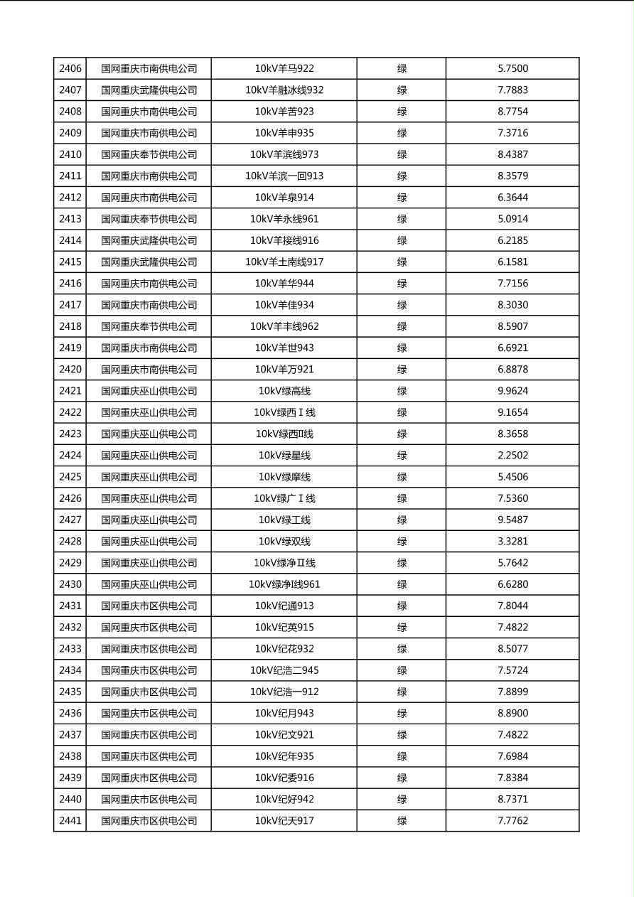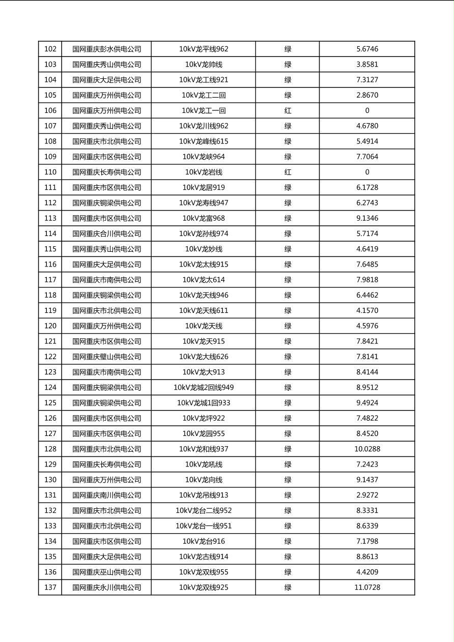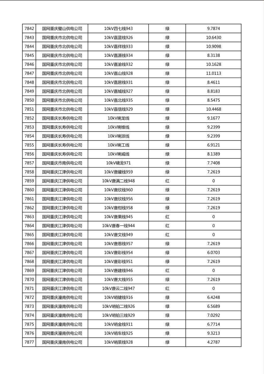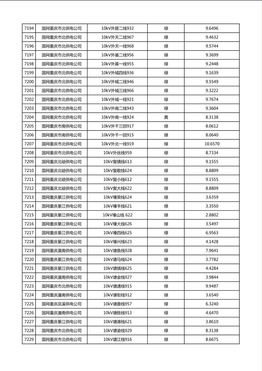国网重庆市电力公司2026年第1季度分布式光伏可开放容量公示(配线)
