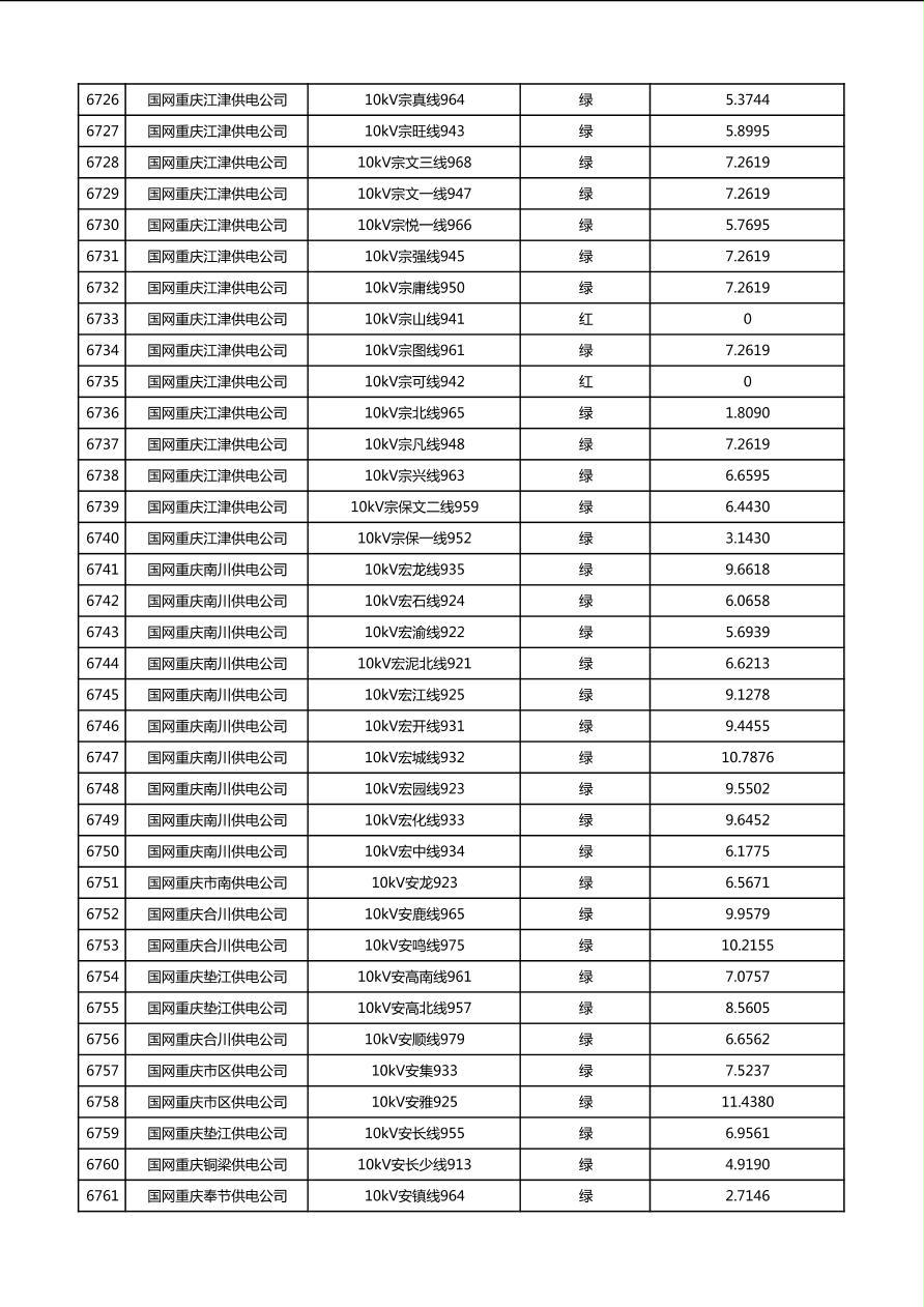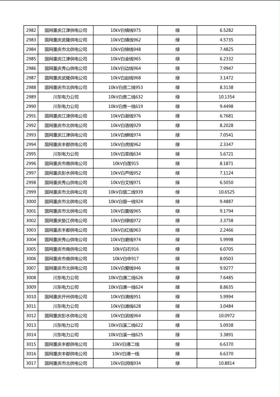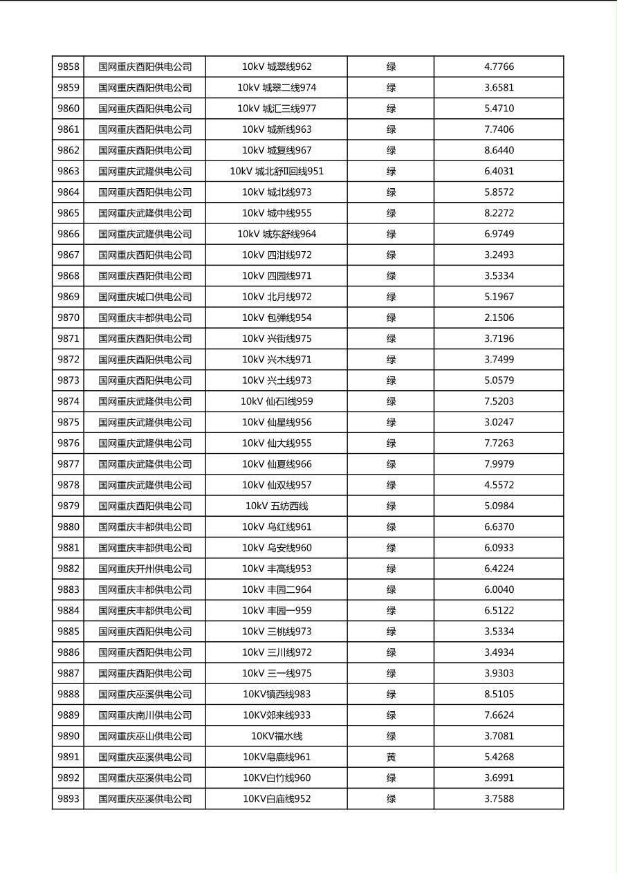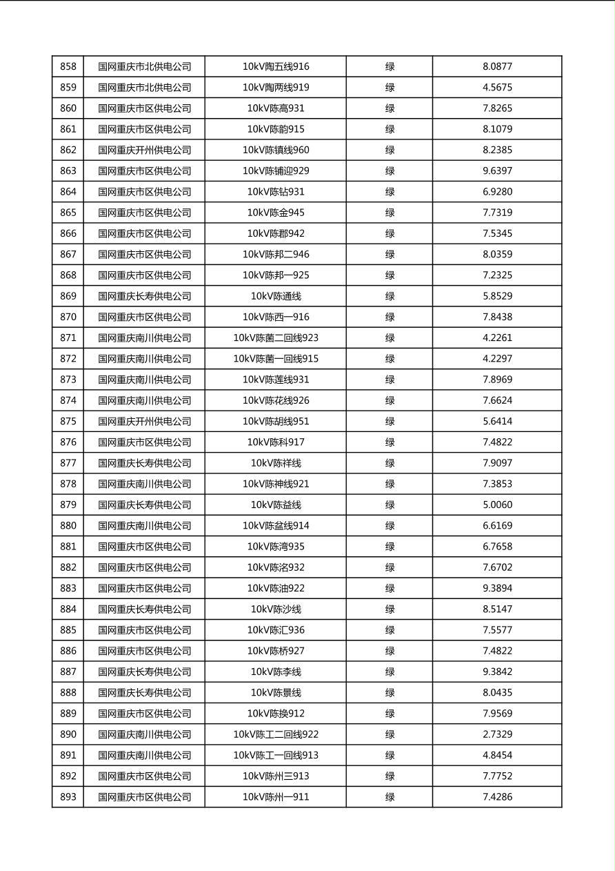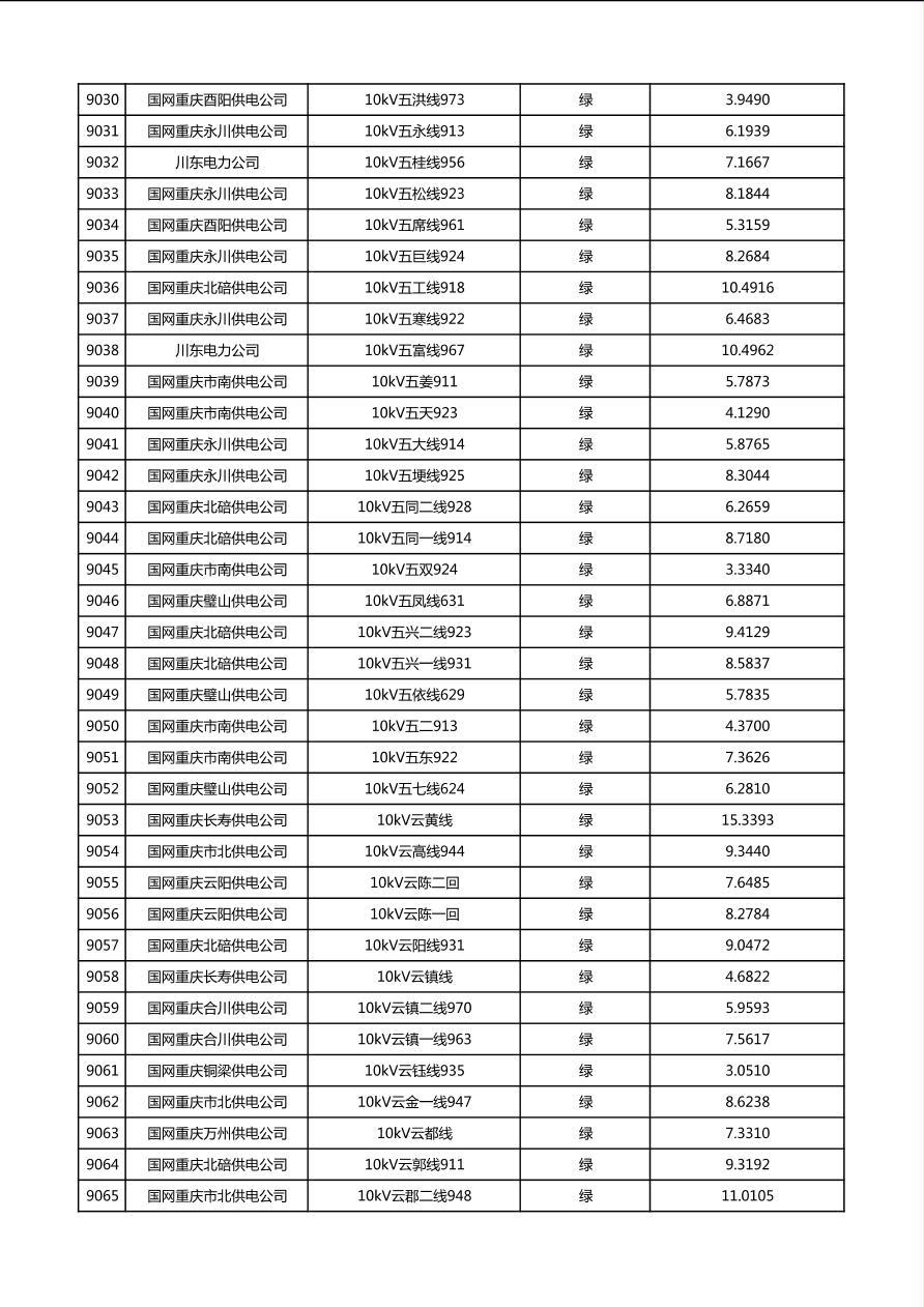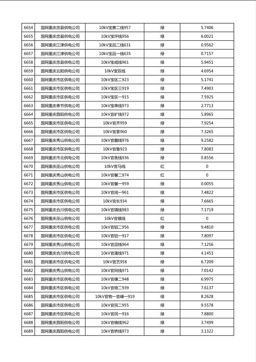 国网重庆市电力公司2026年第1季度分布式光伏可开放容量公示(配线)