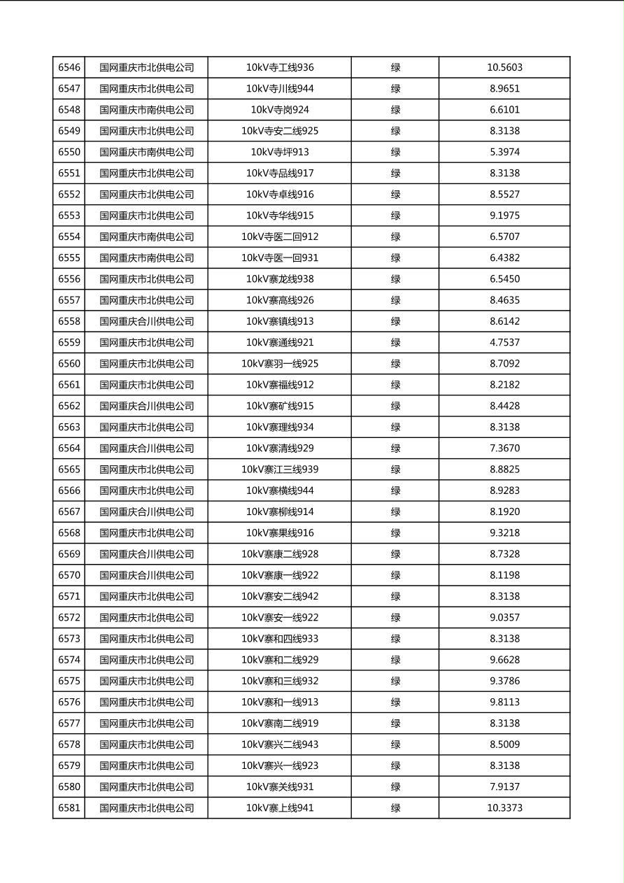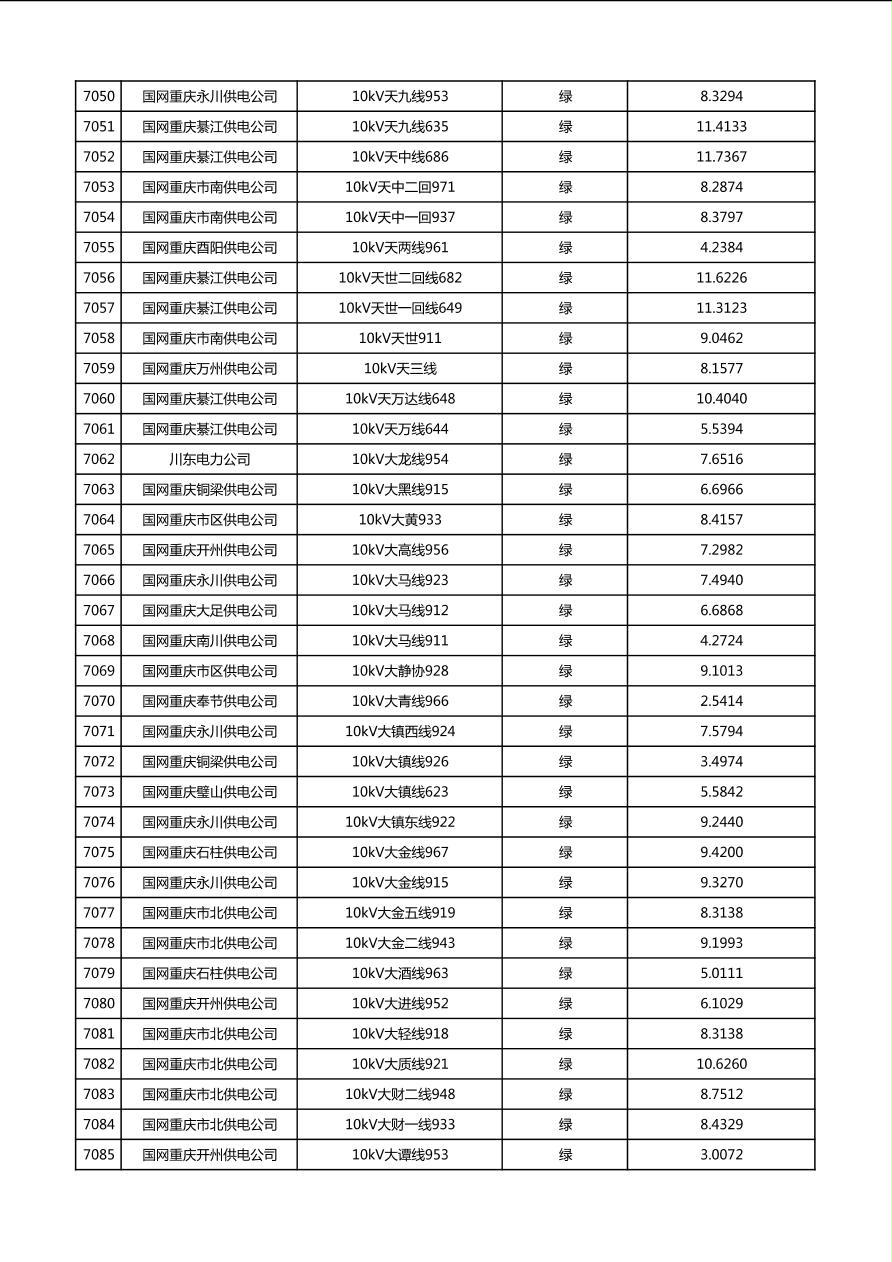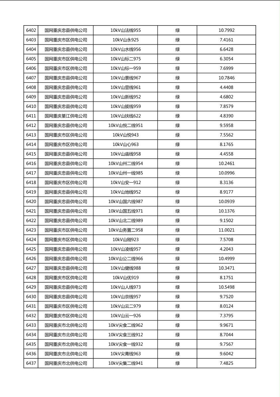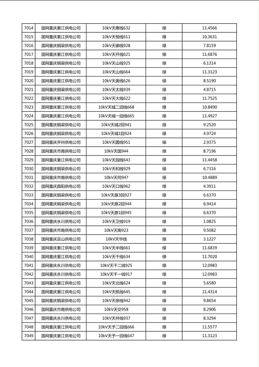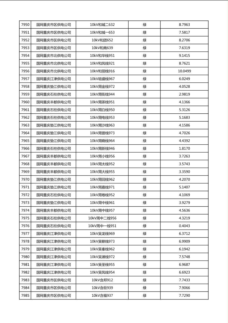 国网重庆市电力公司2026年第1季度分布式光伏可开放容量公示(配线)