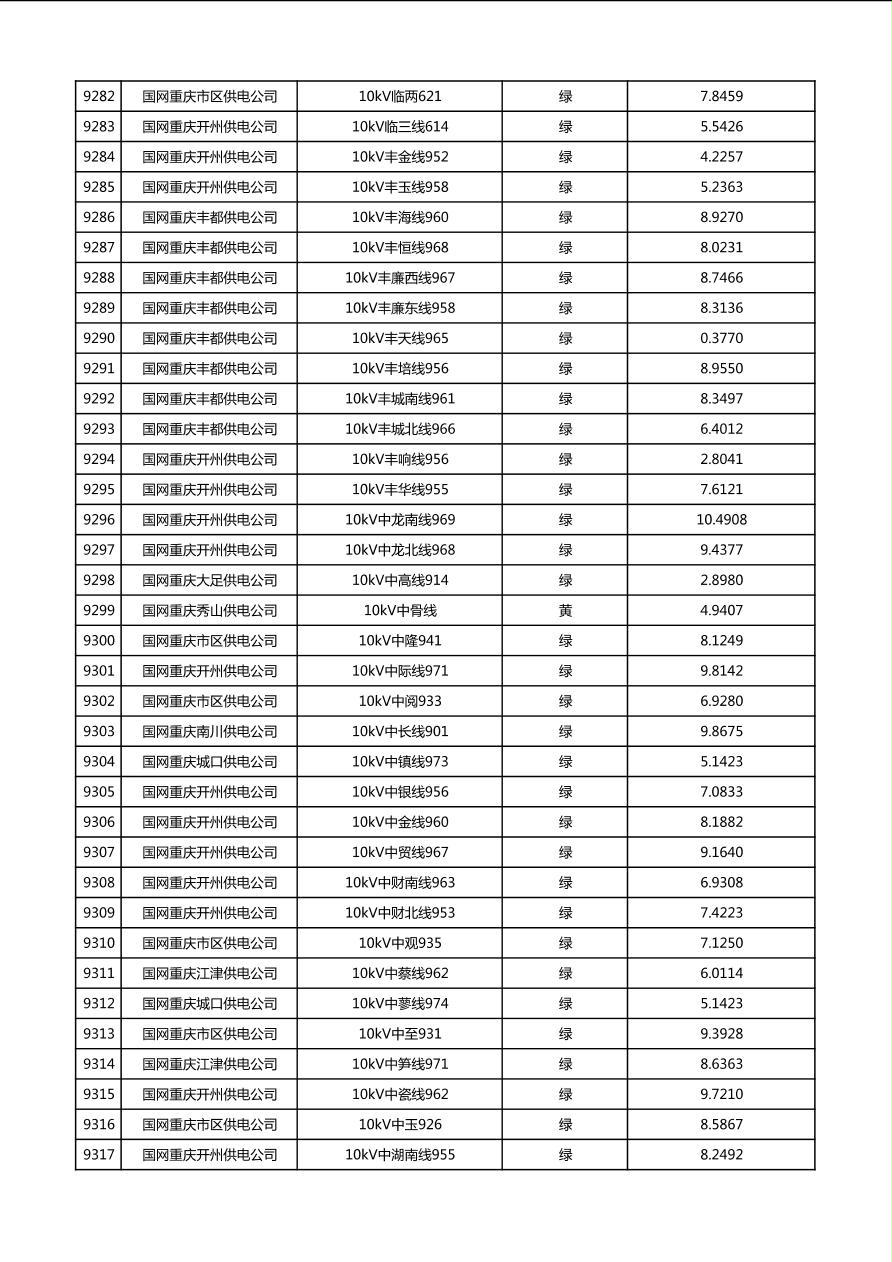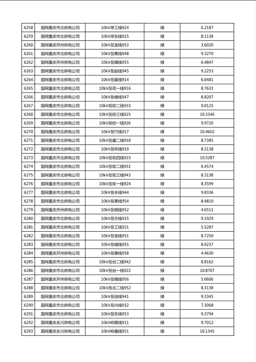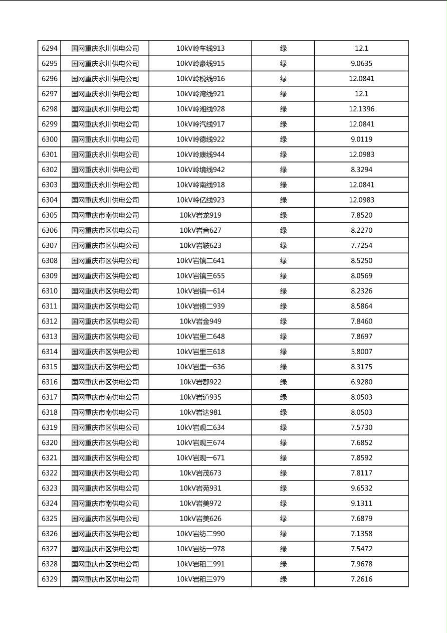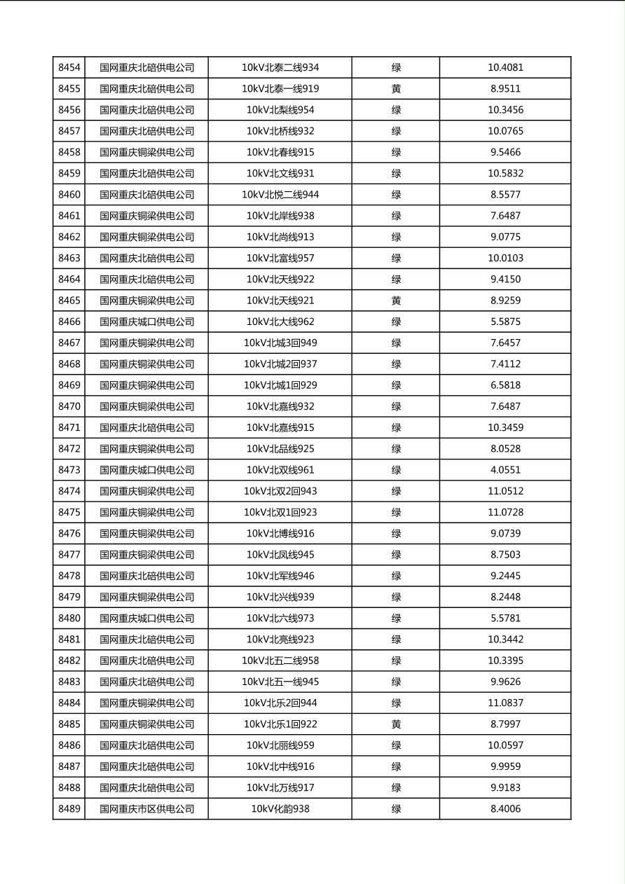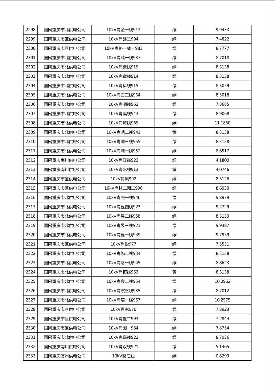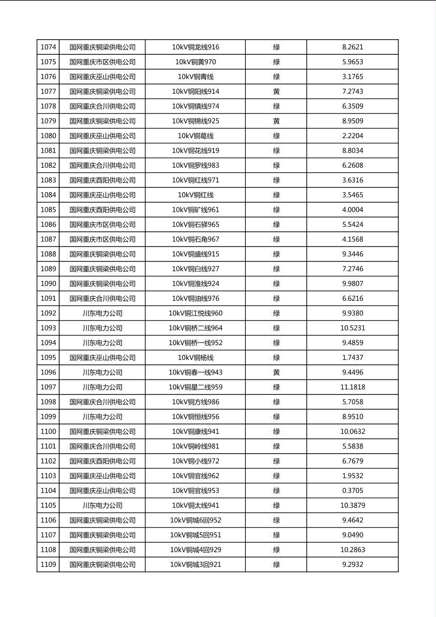 国网重庆市电力公司2026年第1季度分布式光伏可开放容量公示(配线)