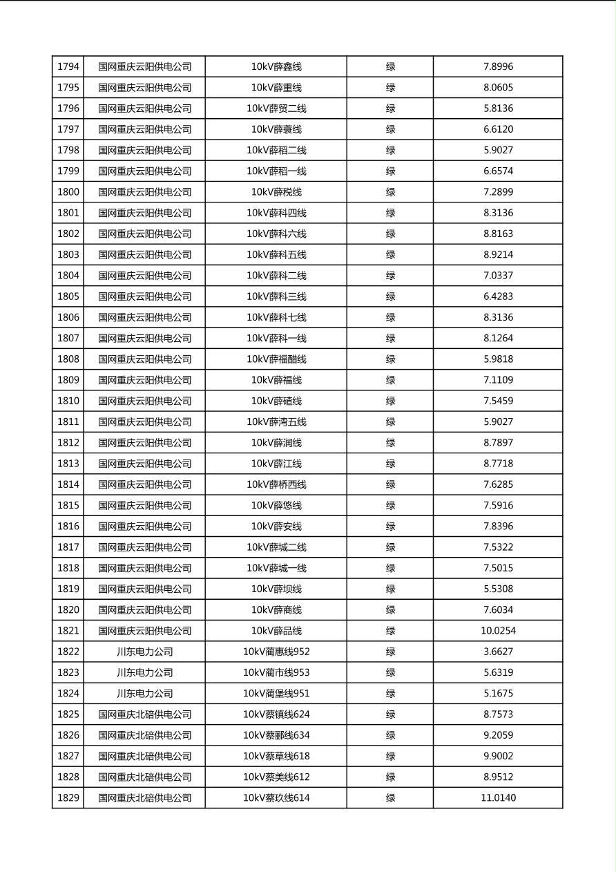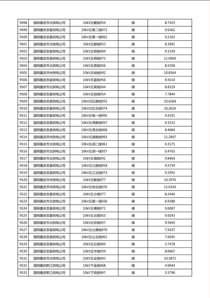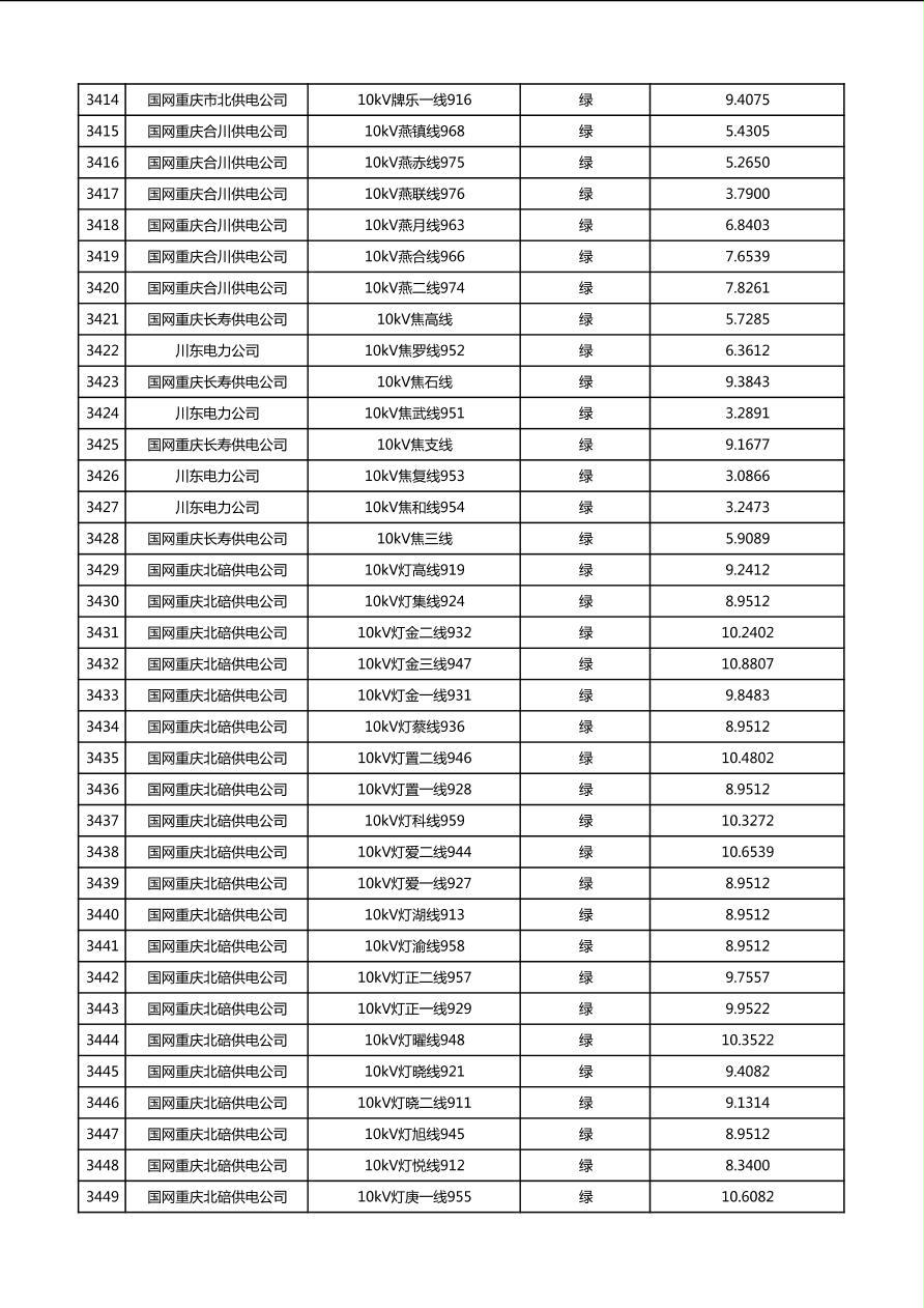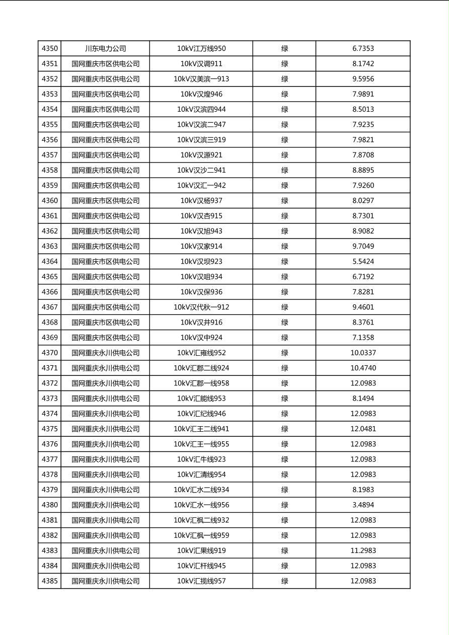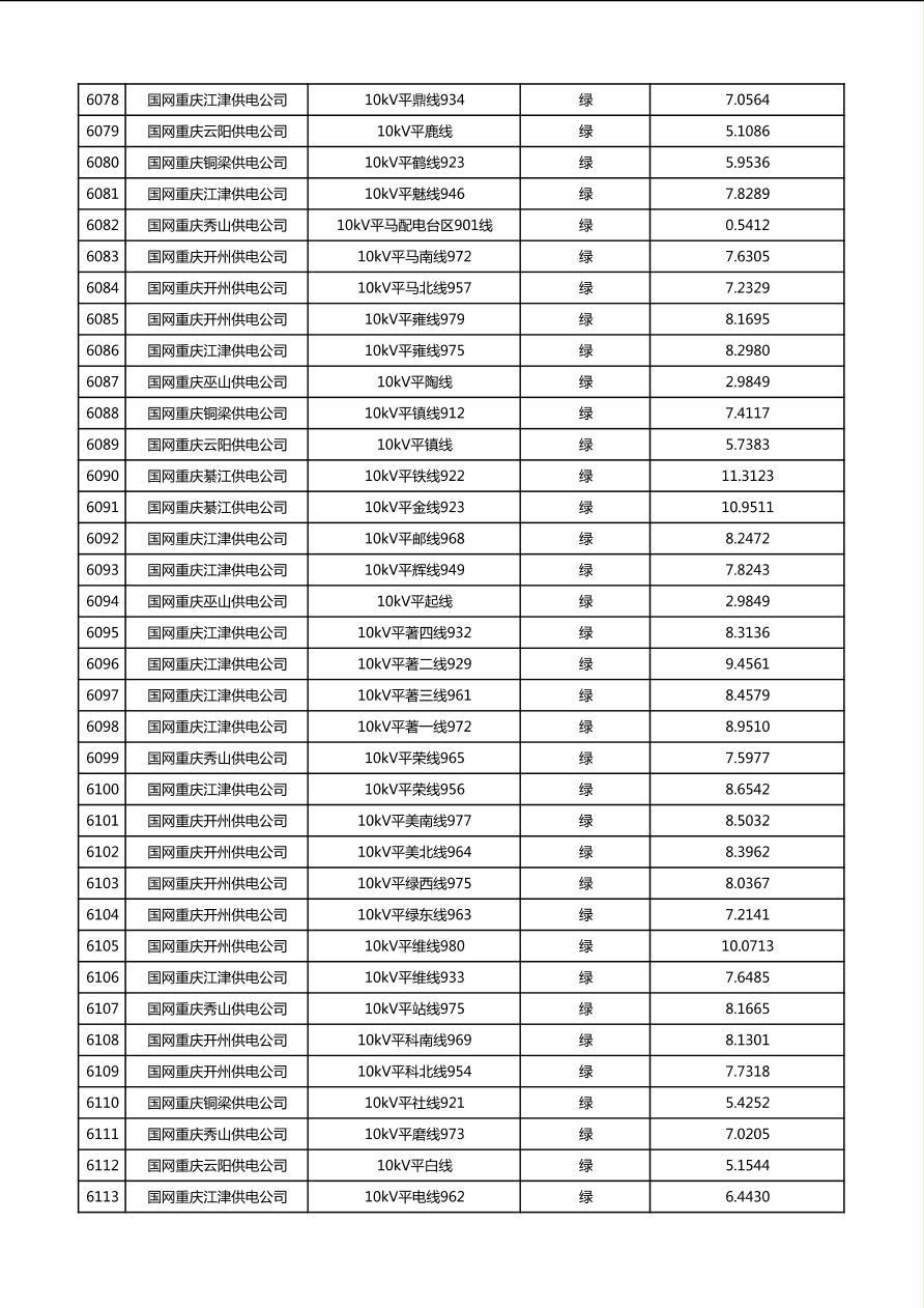 国网重庆市电力公司2026年第1季度分布式光伏可开放容量公示(配线)