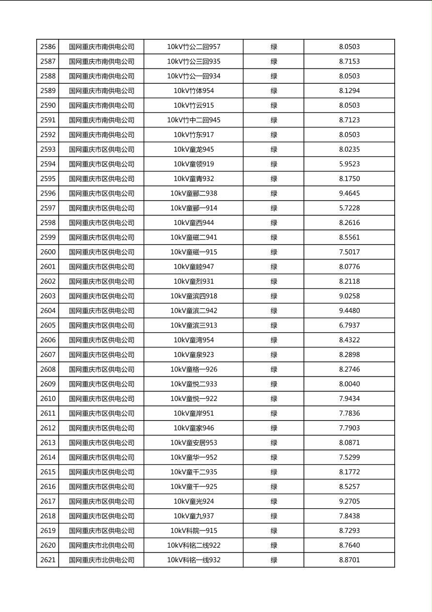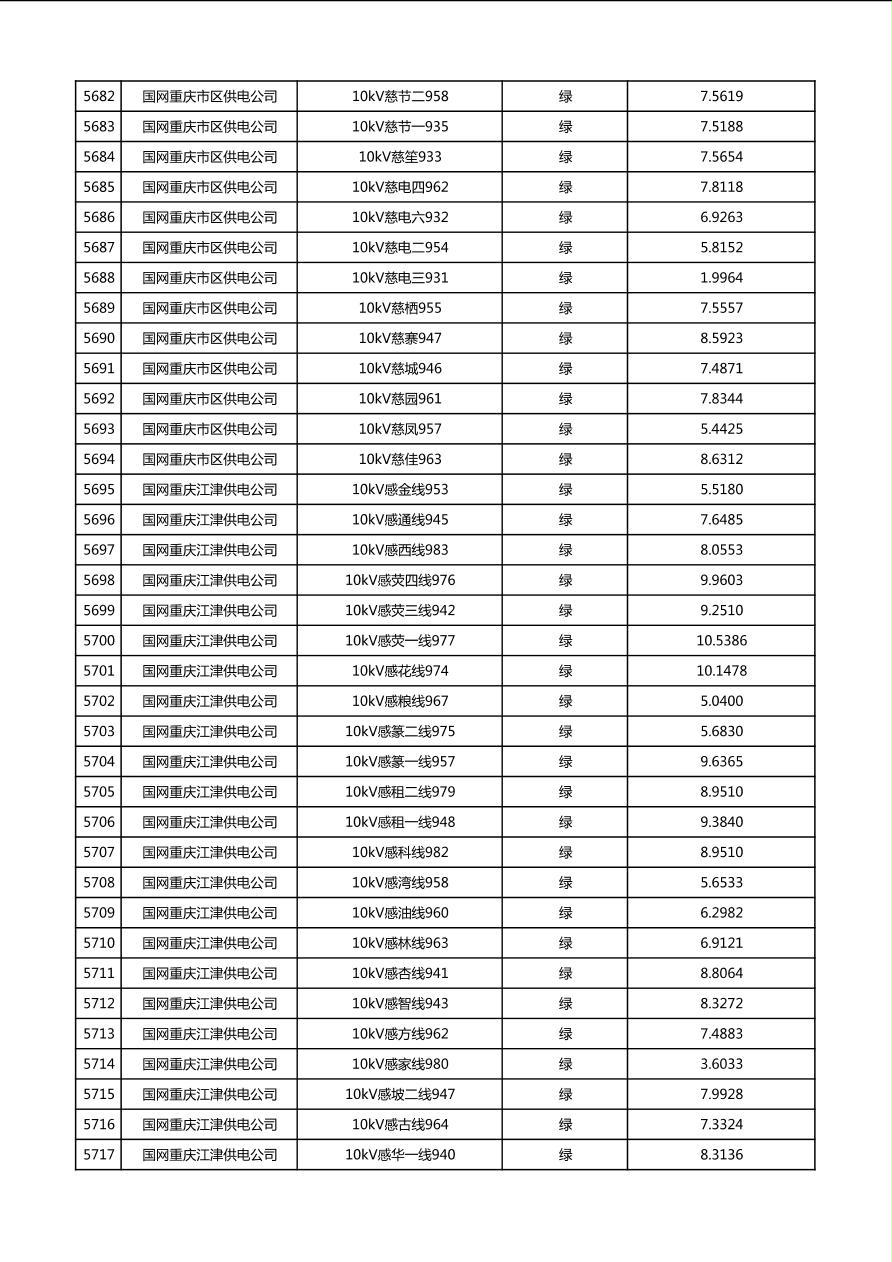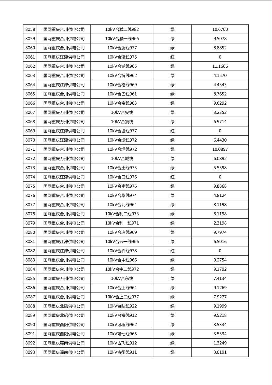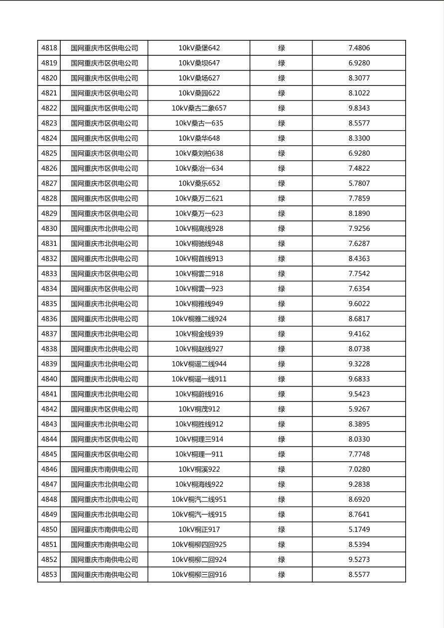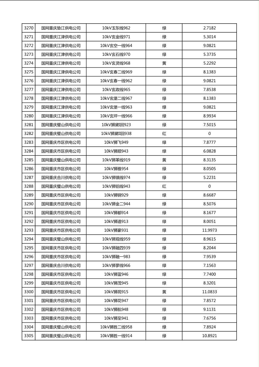 国网重庆市电力公司2026年第1季度分布式光伏可开放容量公示(配线)