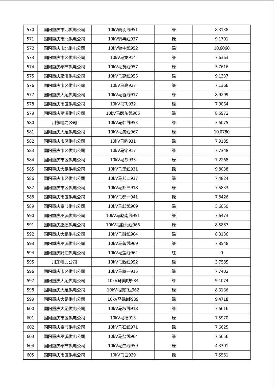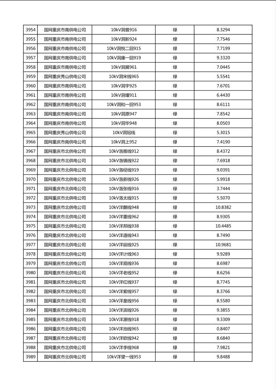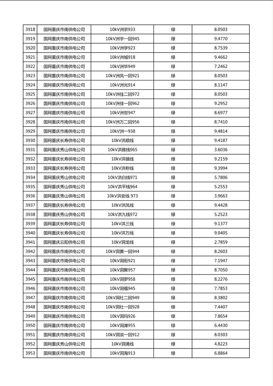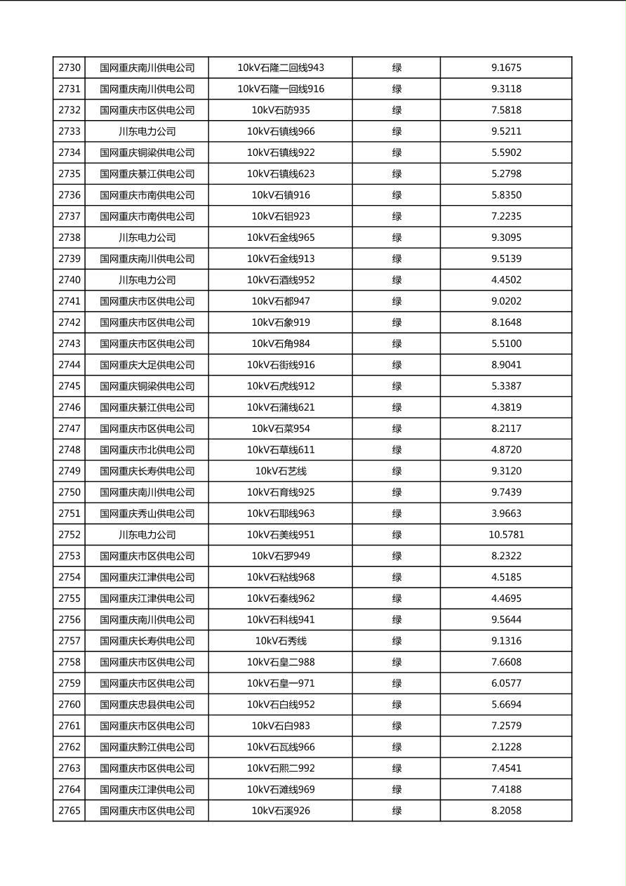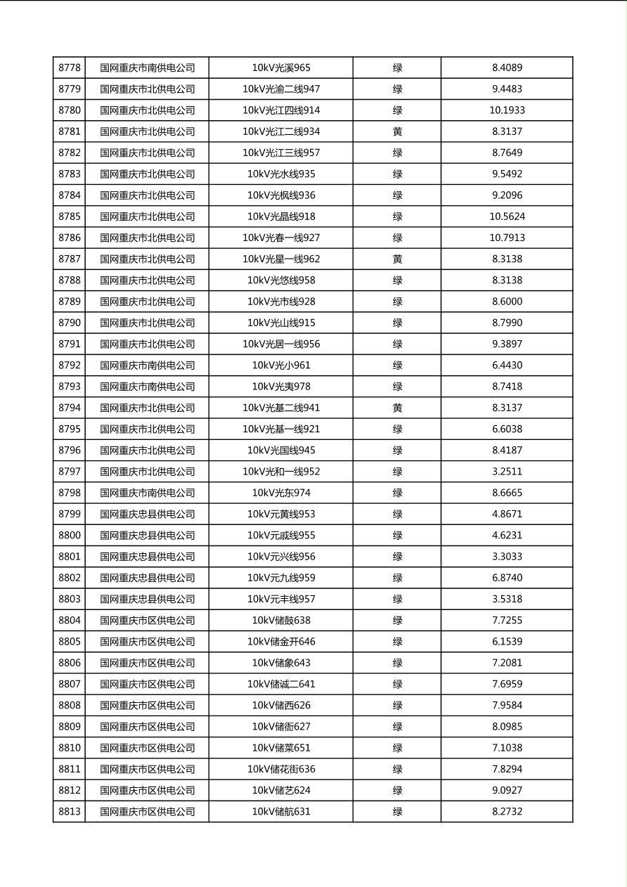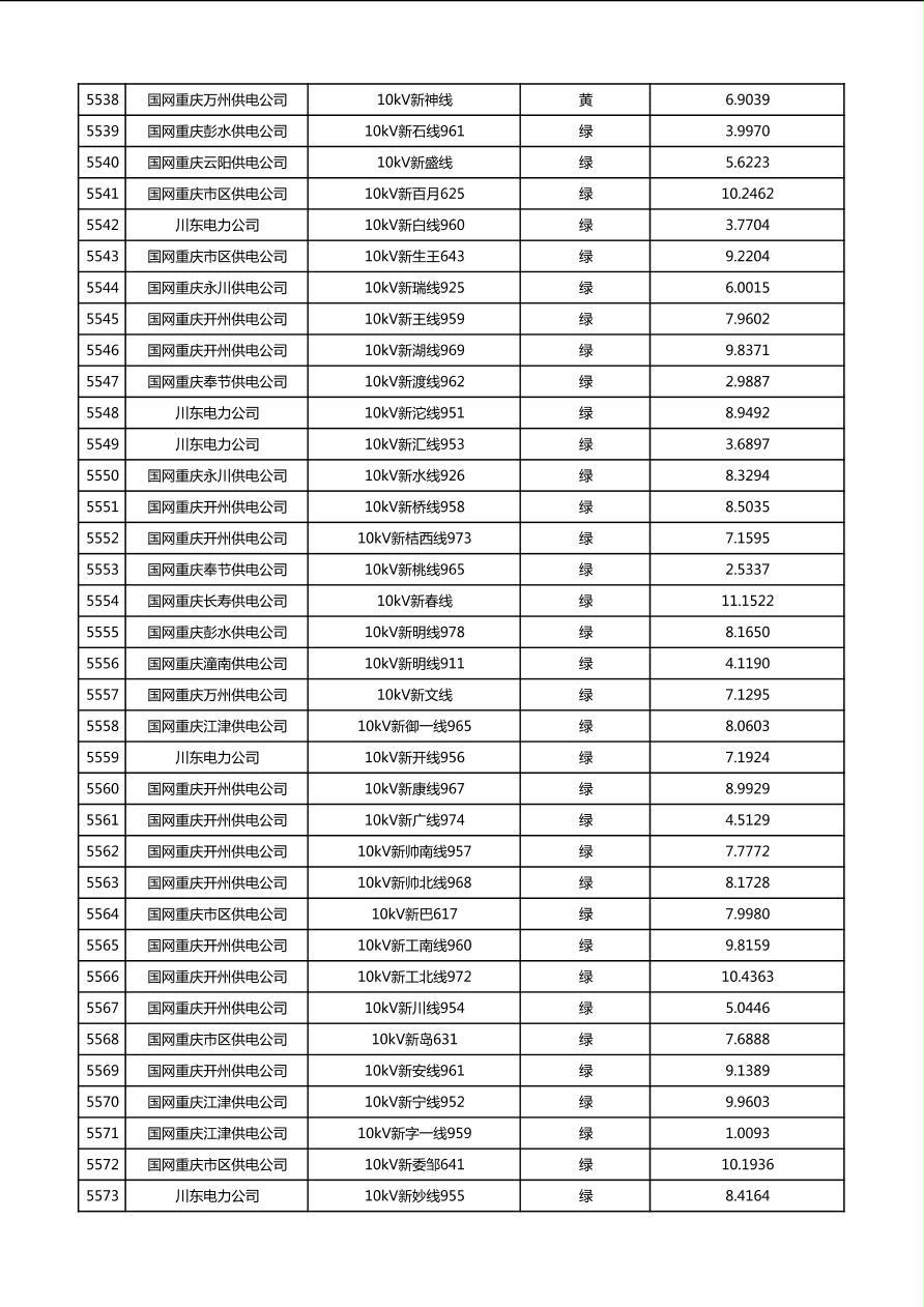 国网重庆市电力公司2026年第1季度分布式光伏可开放容量公示(配线)