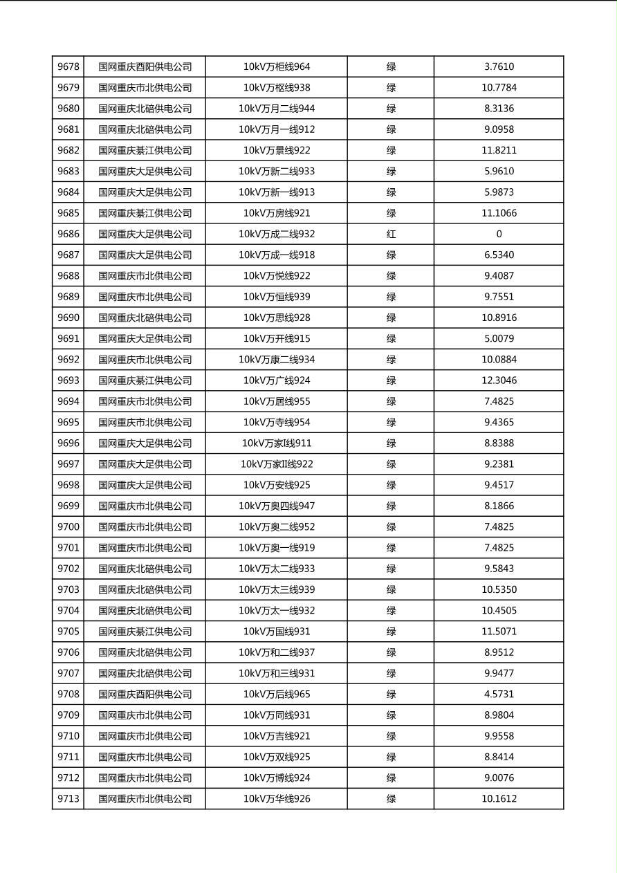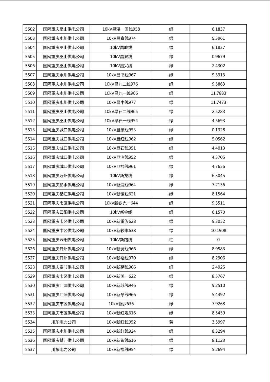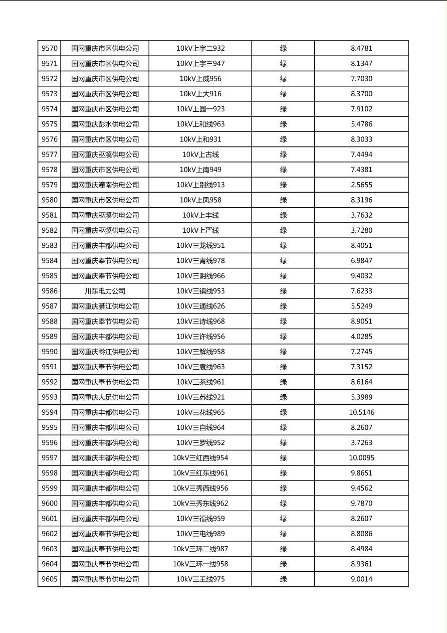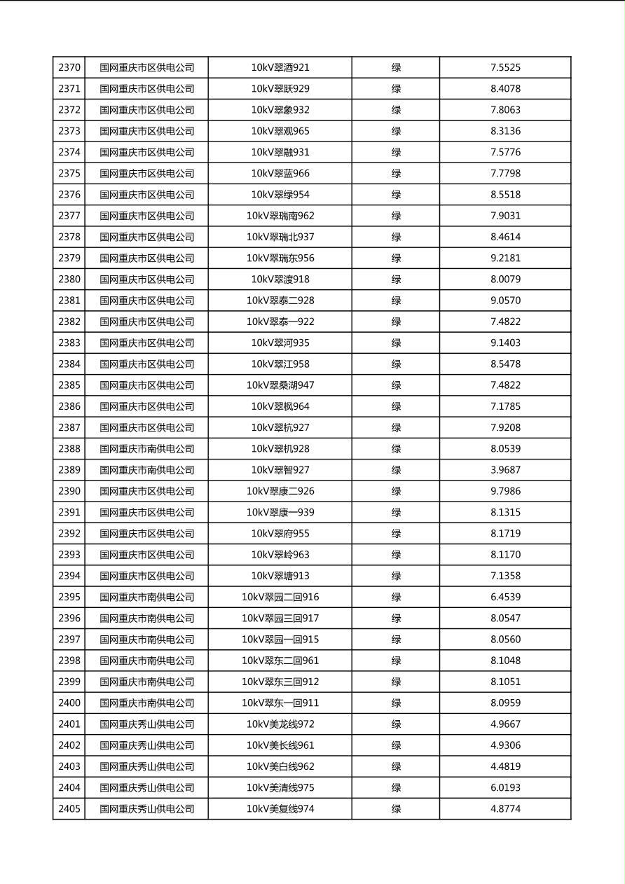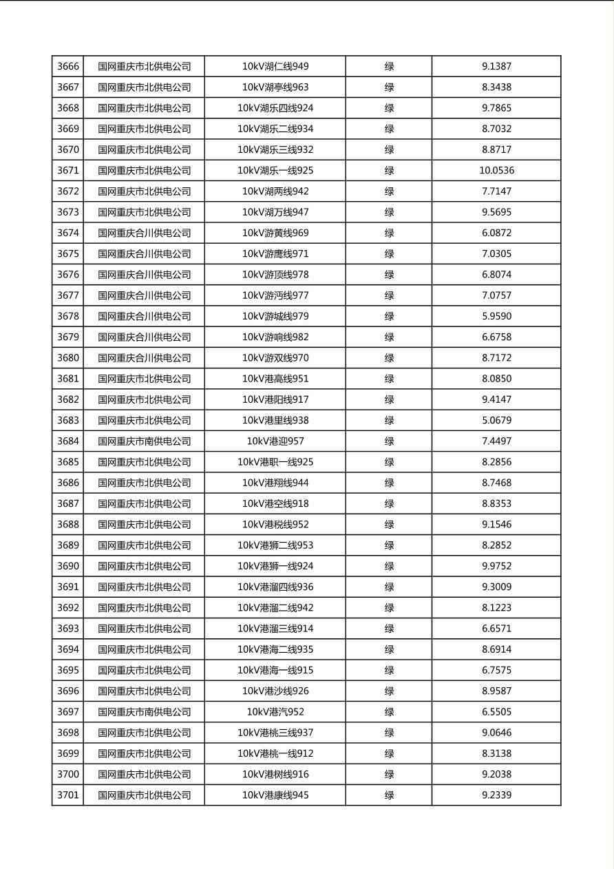 国网重庆市电力公司2026年第1季度分布式光伏可开放容量公示(配线)
