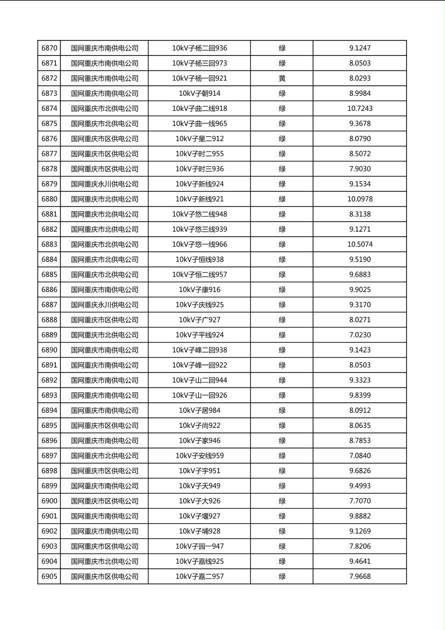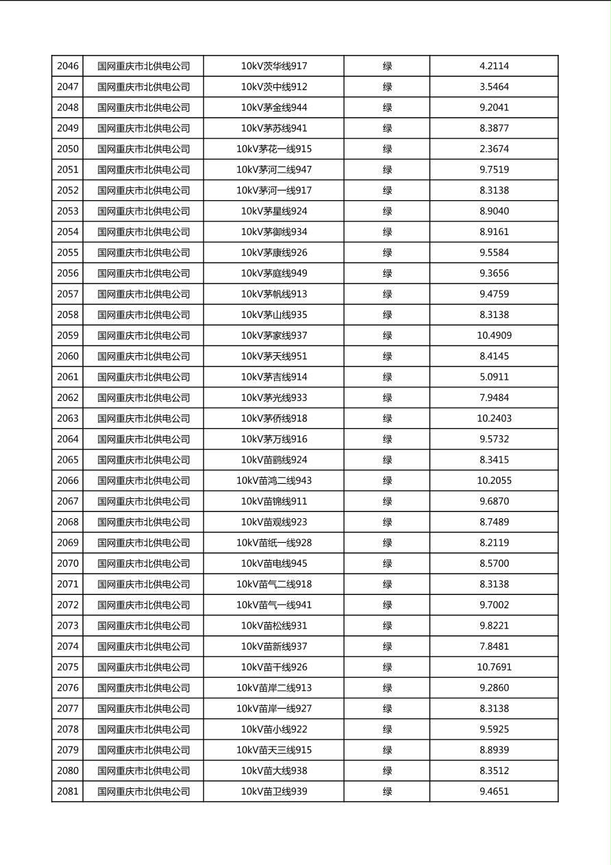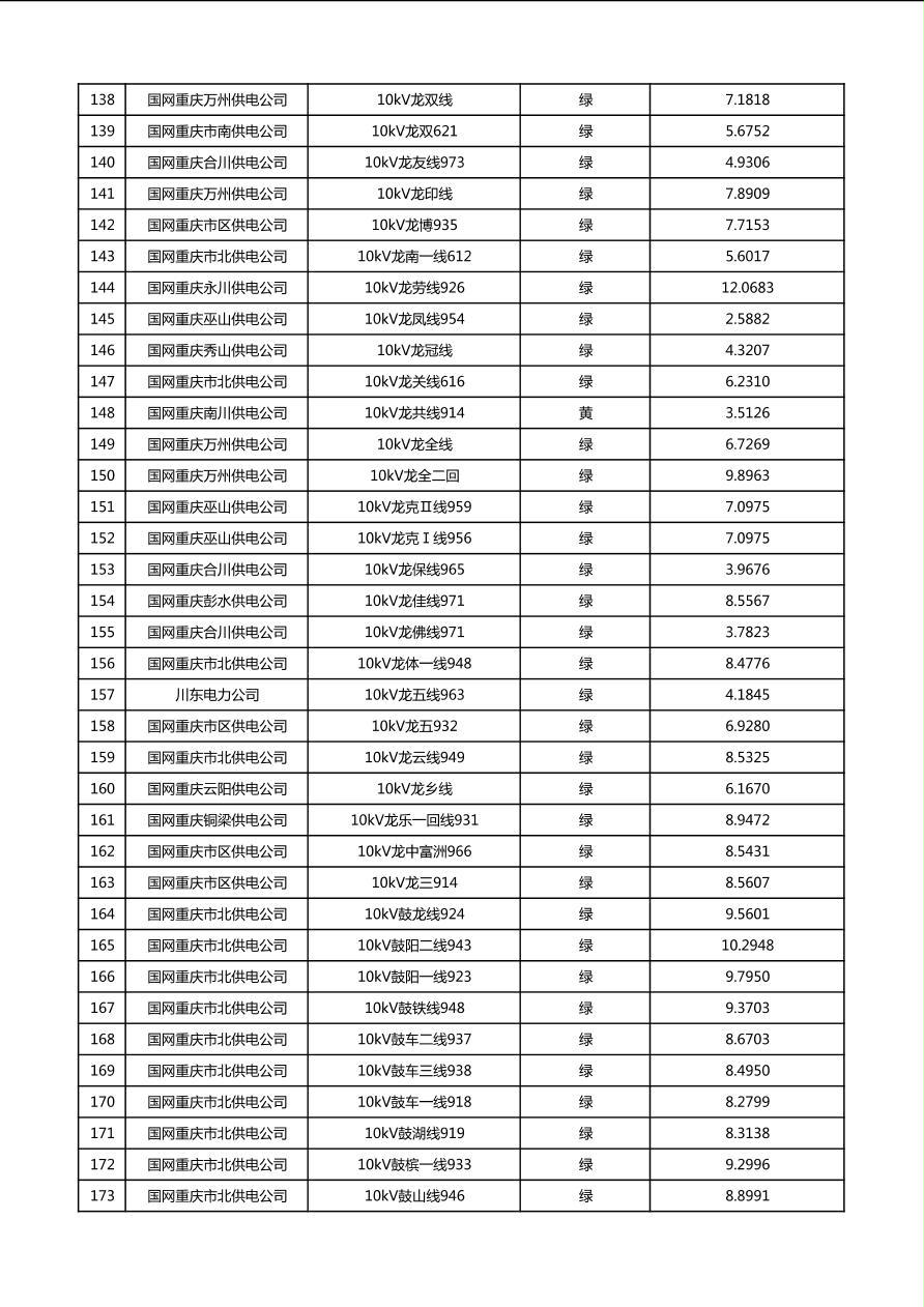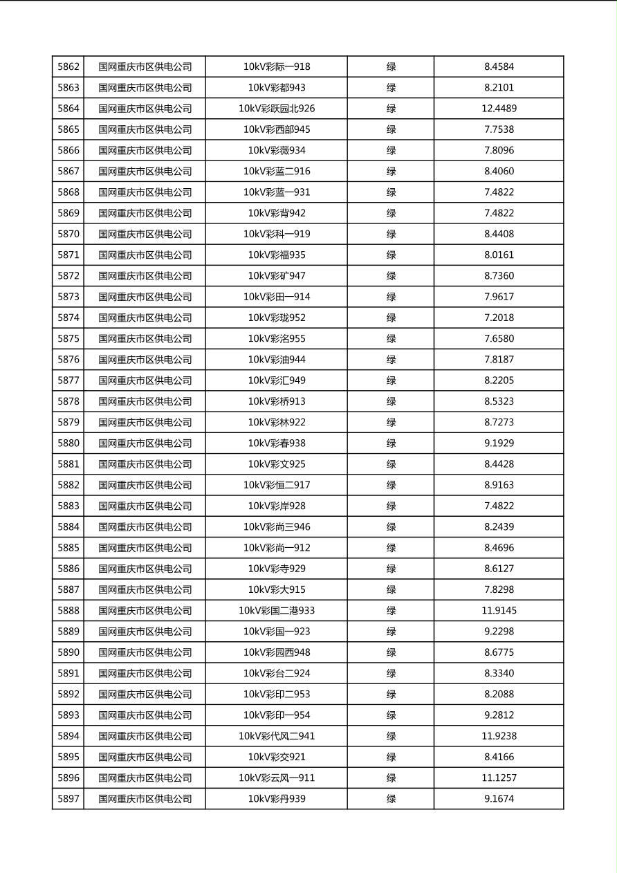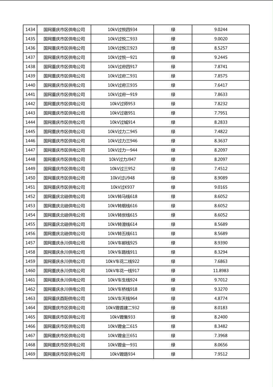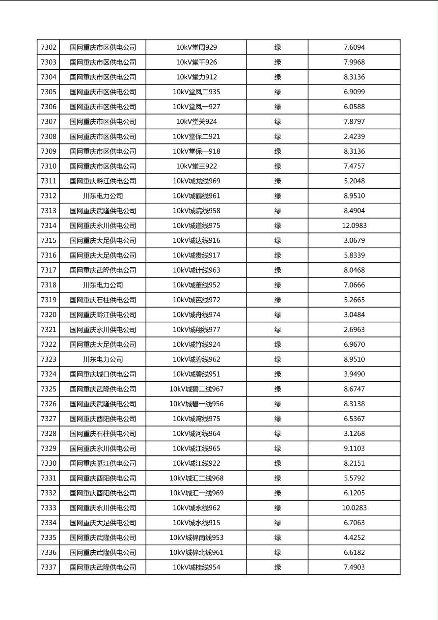 国网重庆市电力公司2026年第1季度分布式光伏可开放容量公示(配线)