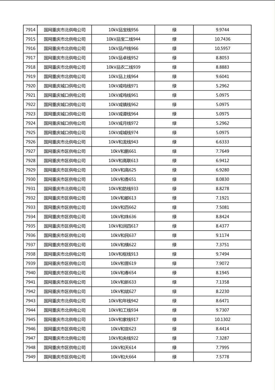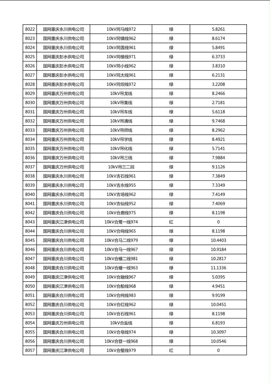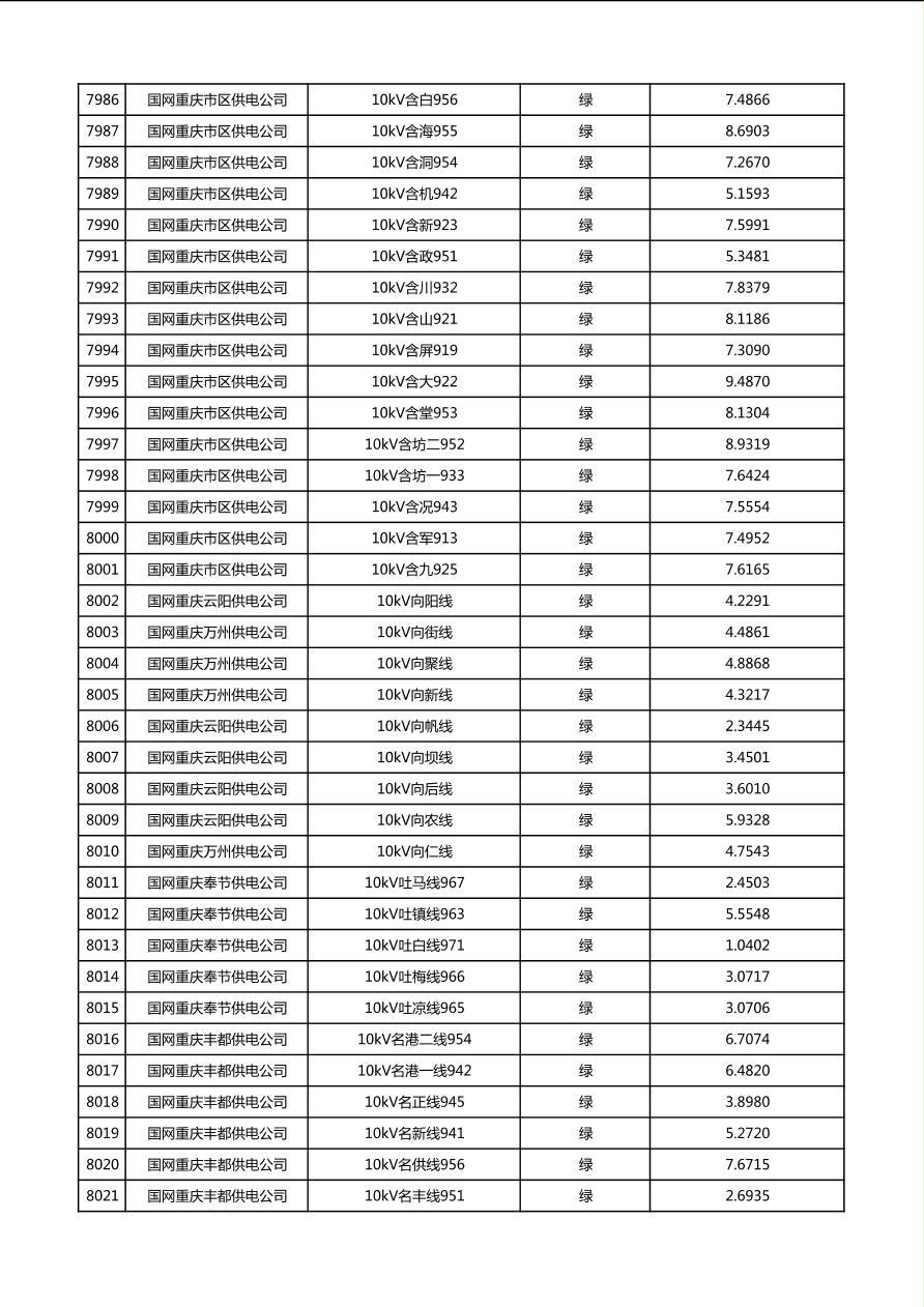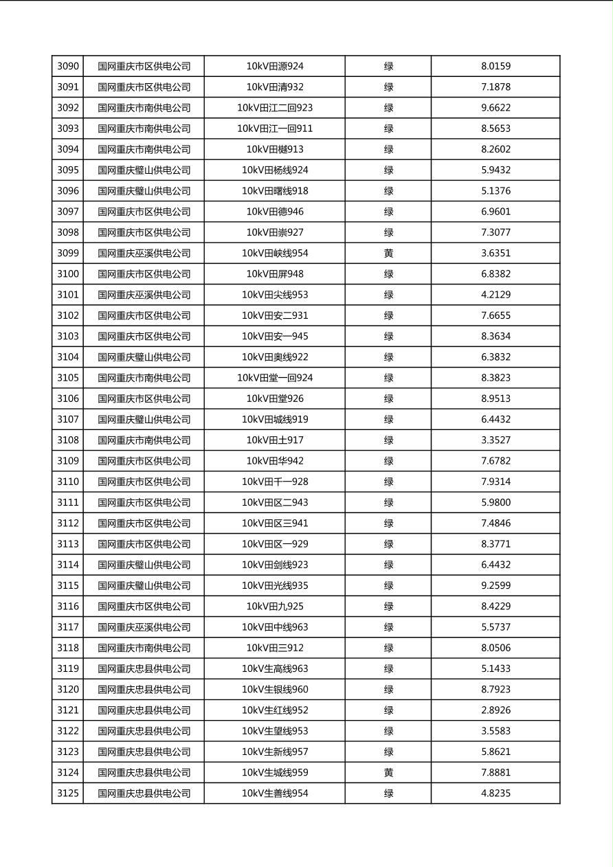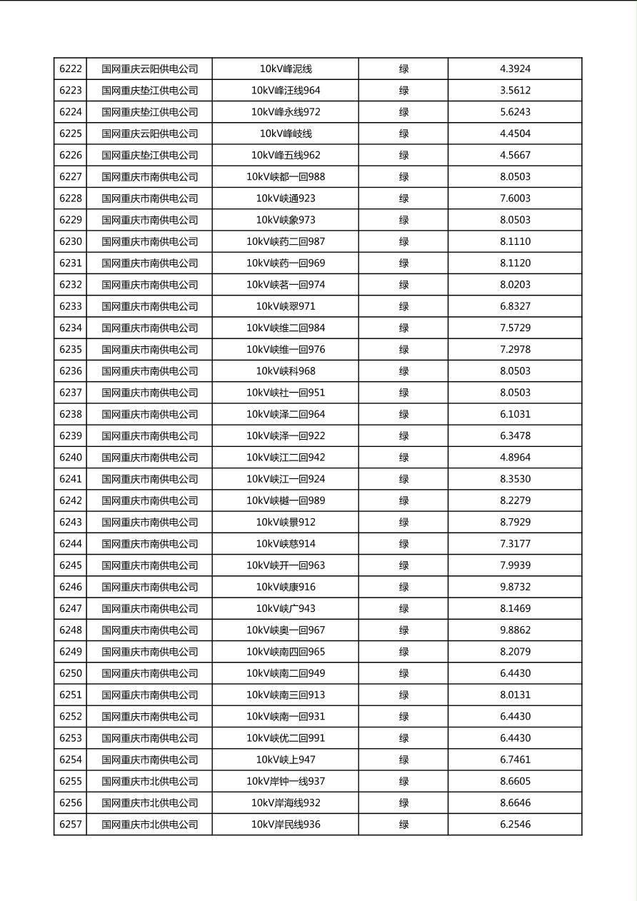 国网重庆市电力公司2026年第1季度分布式光伏可开放容量公示(配线)