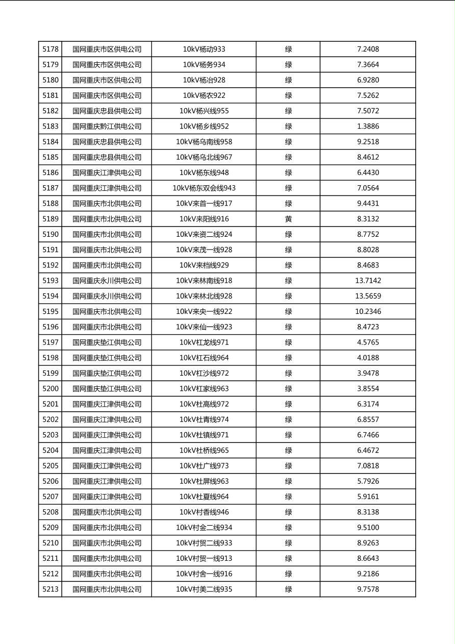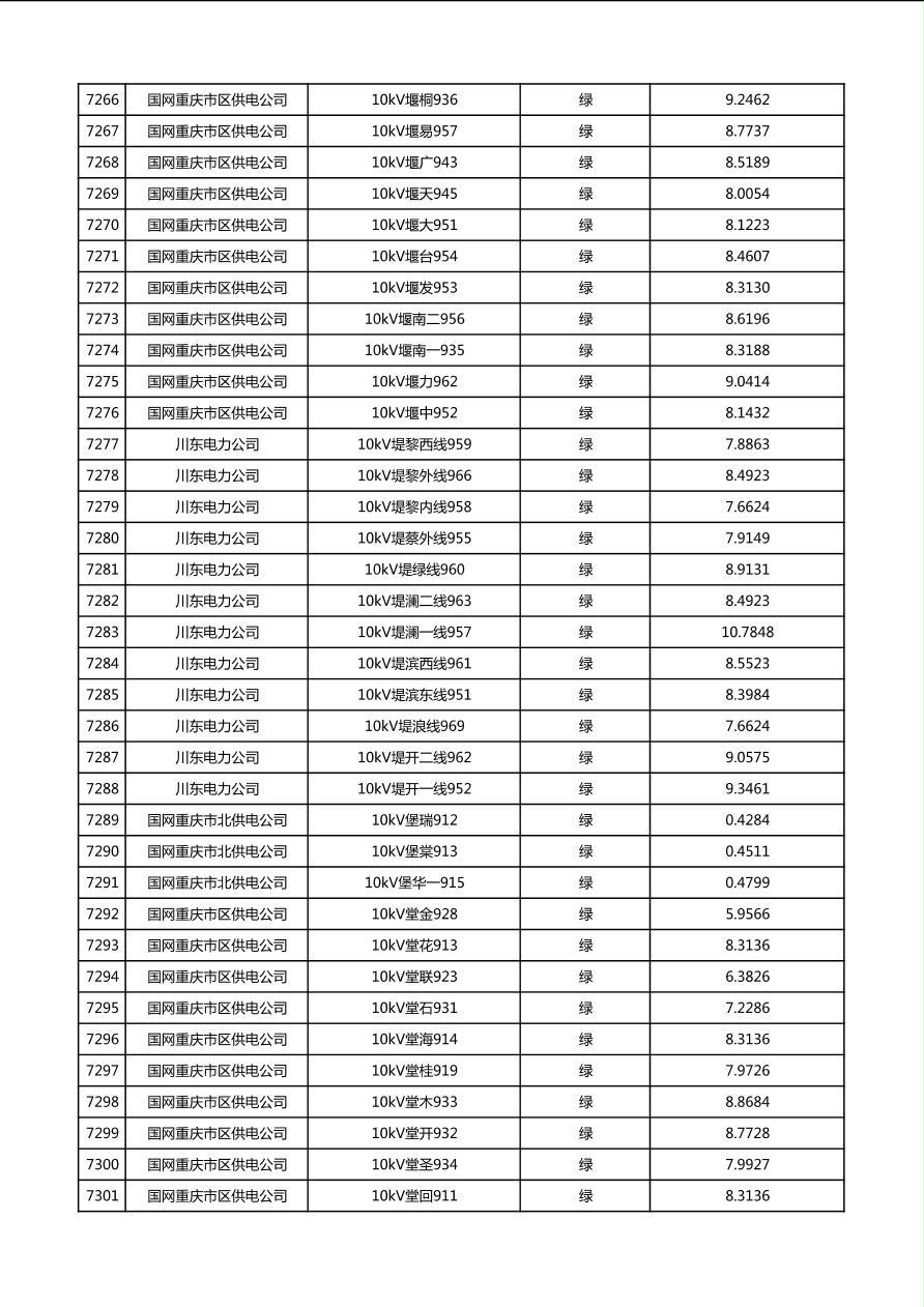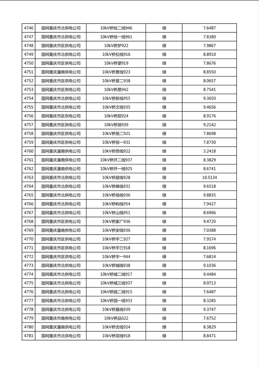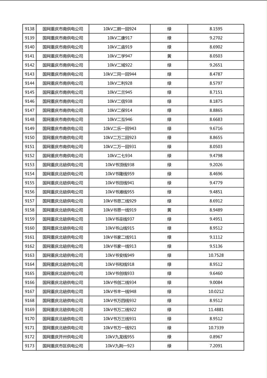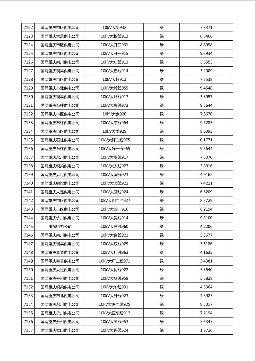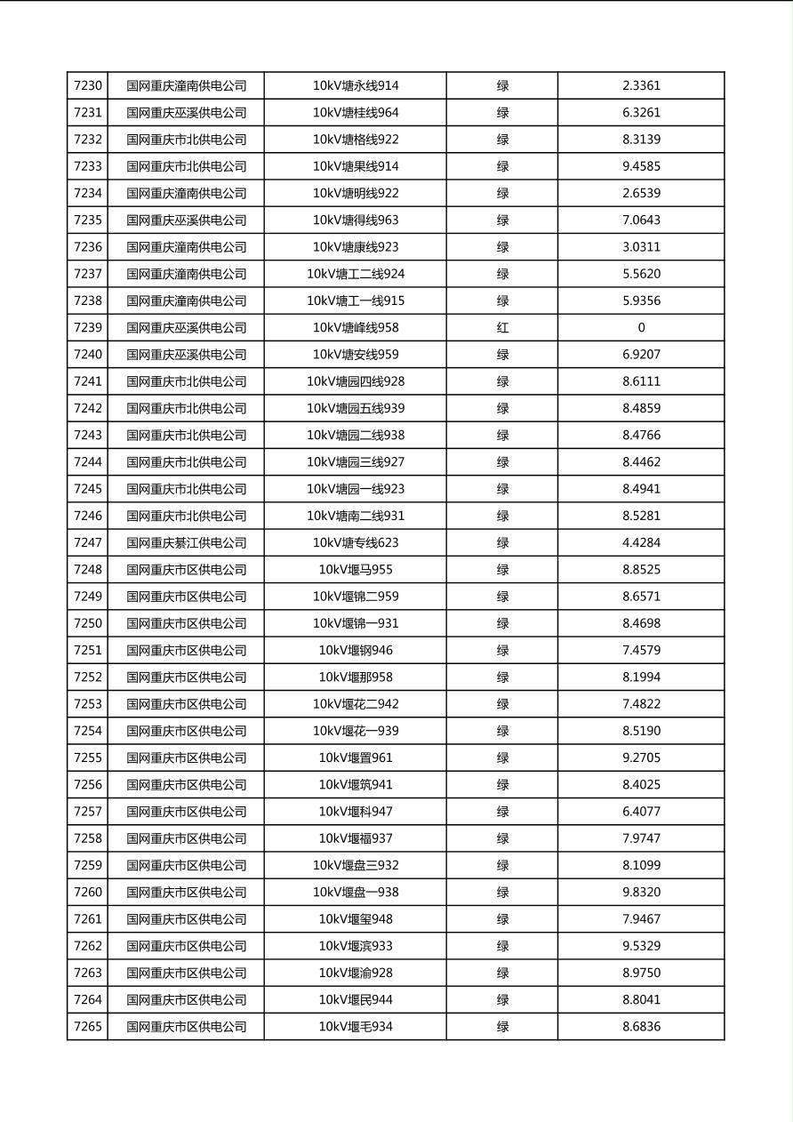 国网重庆市电力公司2026年第1季度分布式光伏可开放容量公示(配线)