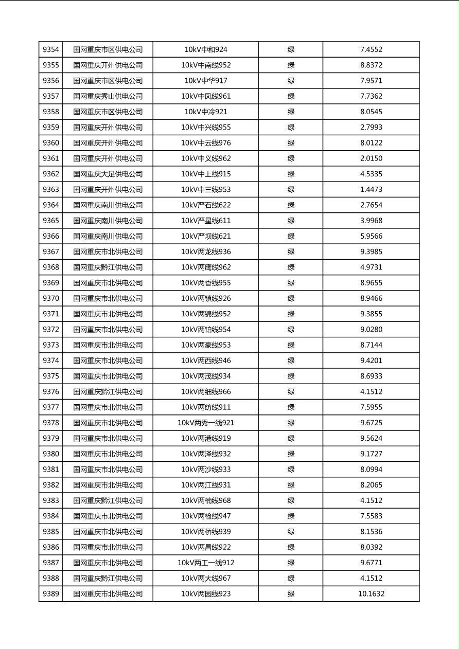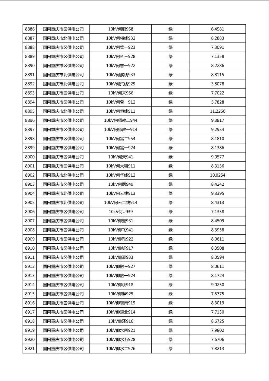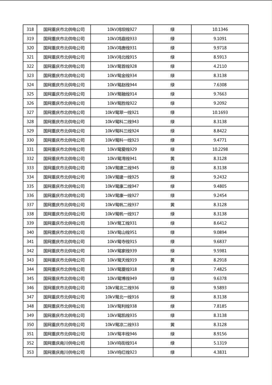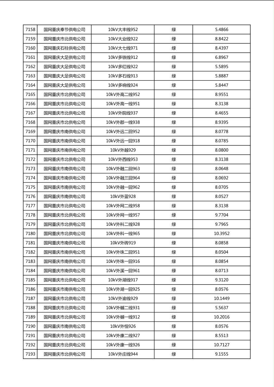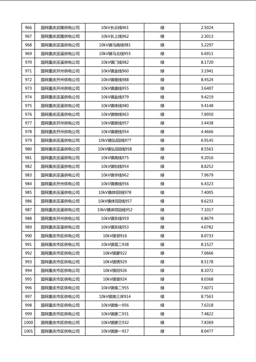 国网重庆市电力公司2026年第1季度分布式光伏可开放容量公示(配线)
