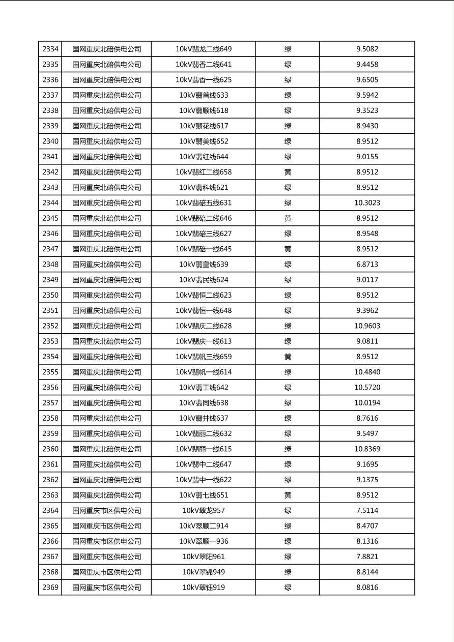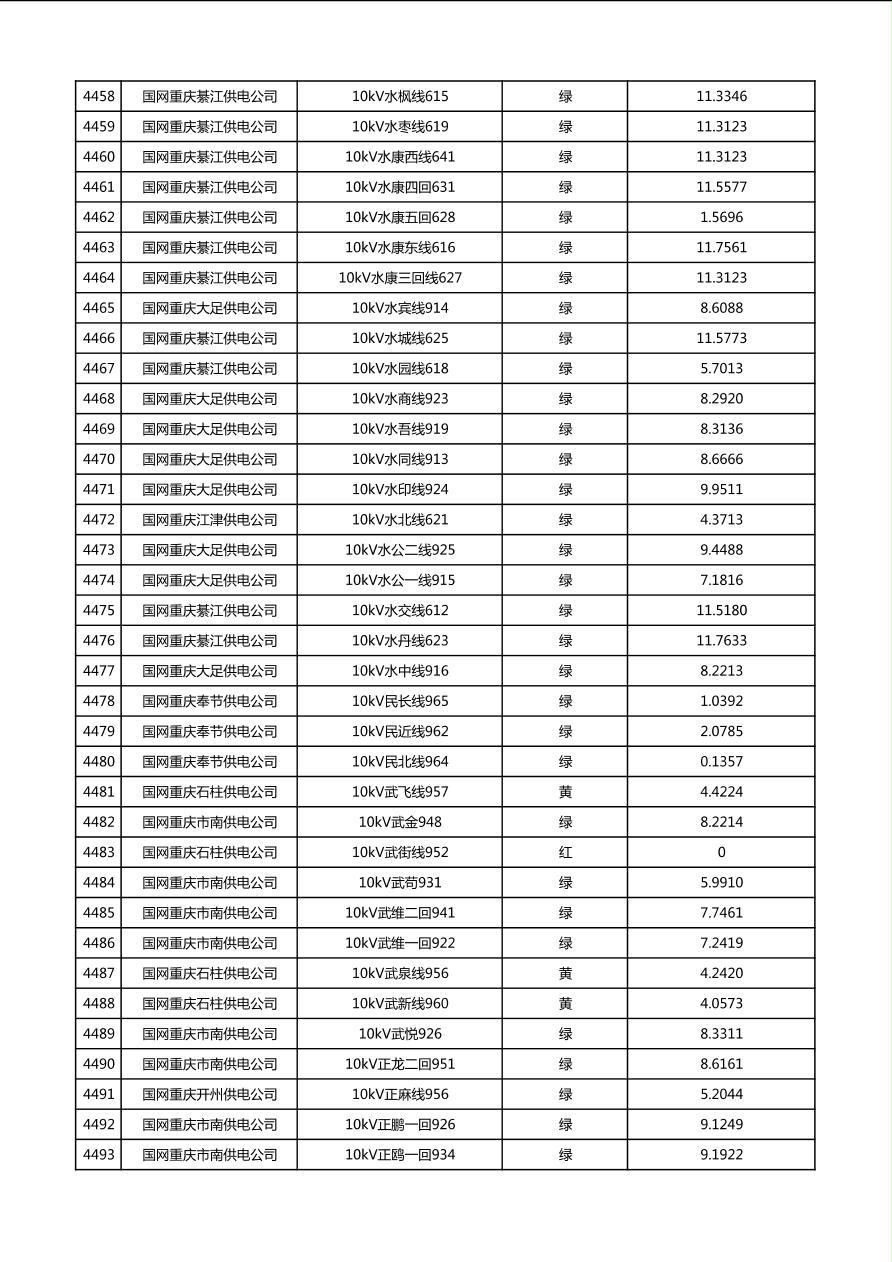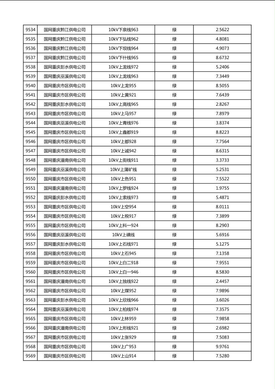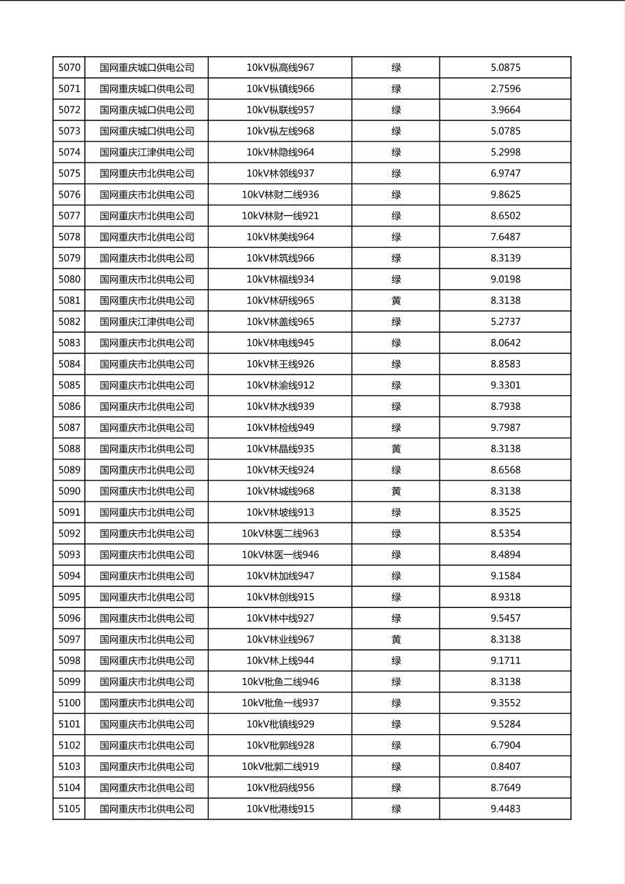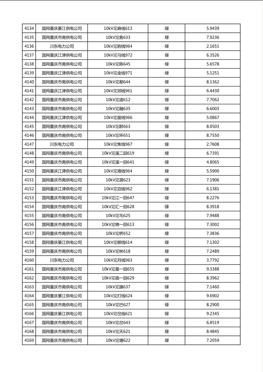 国网重庆市电力公司2026年第1季度分布式光伏可开放容量公示(配线)