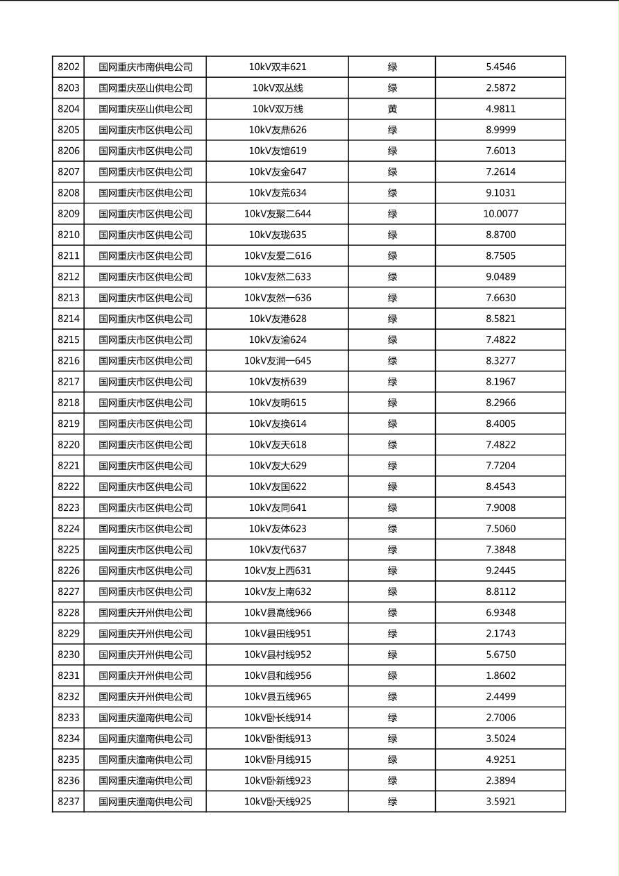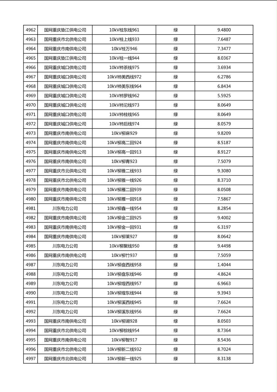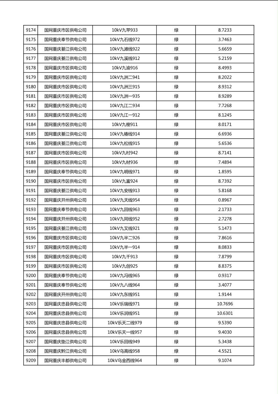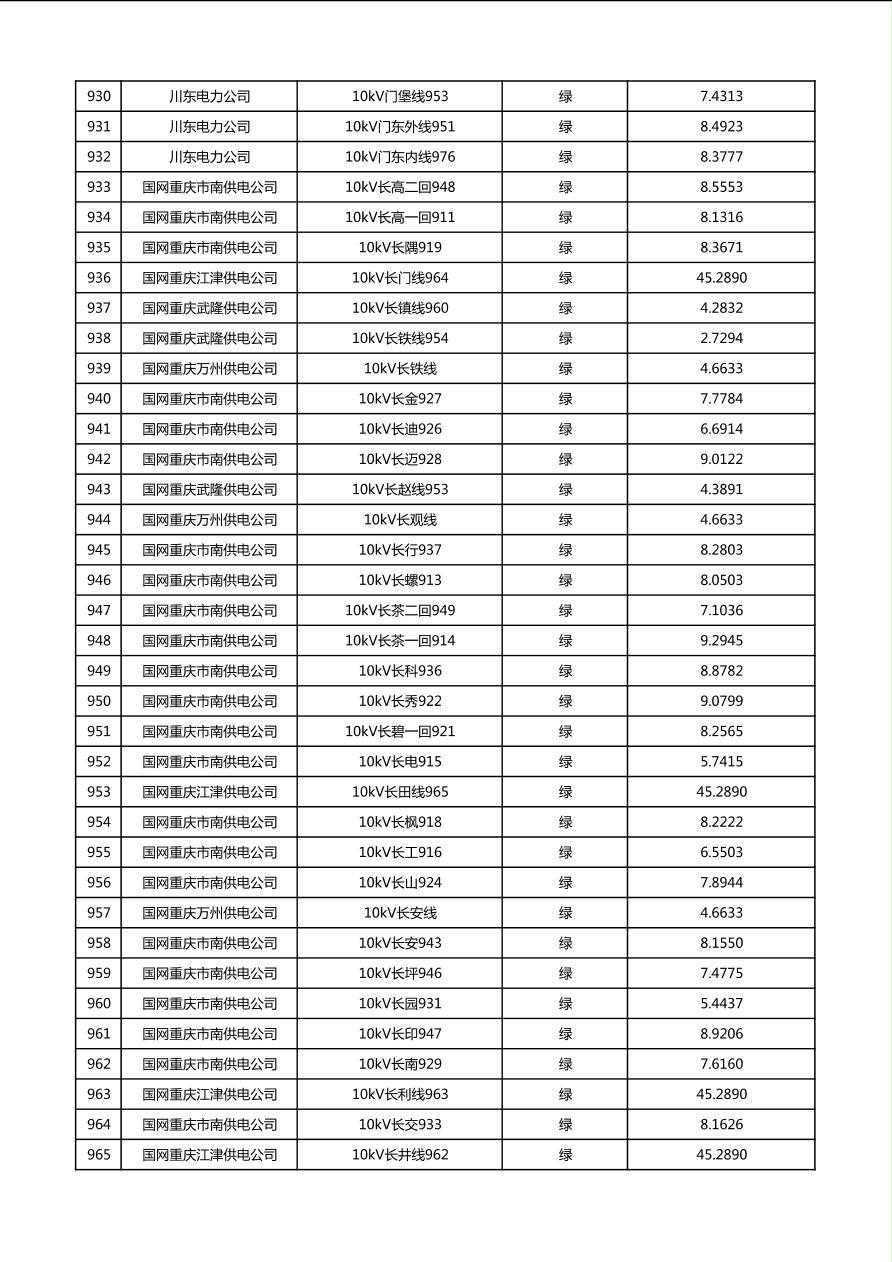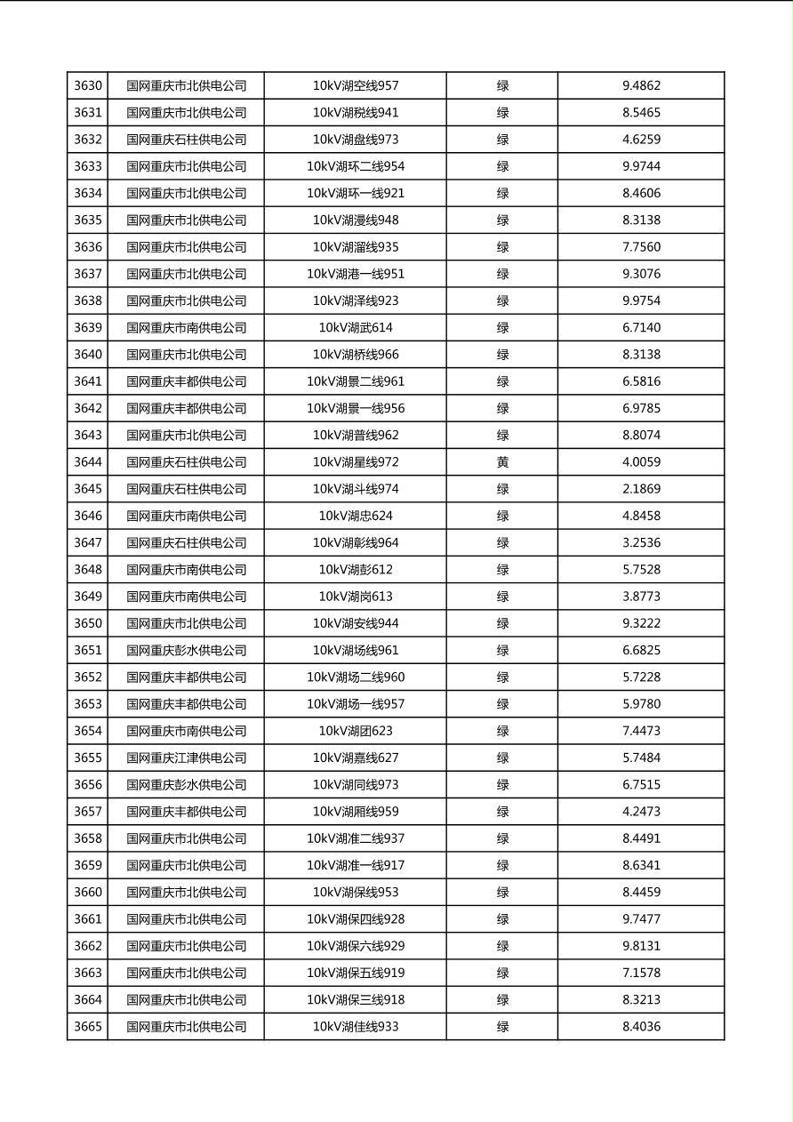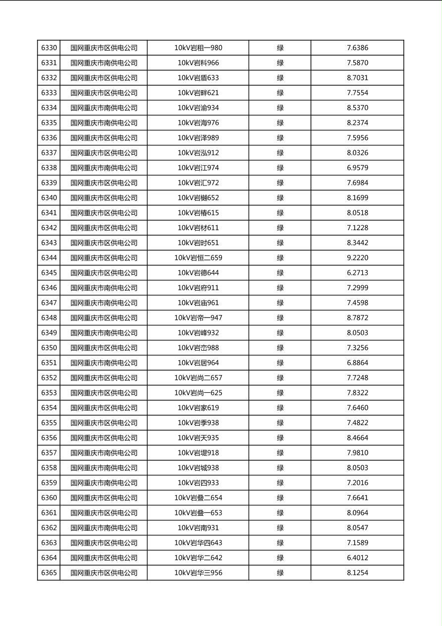 国网重庆市电力公司2026年第1季度分布式光伏可开放容量公示(配线)