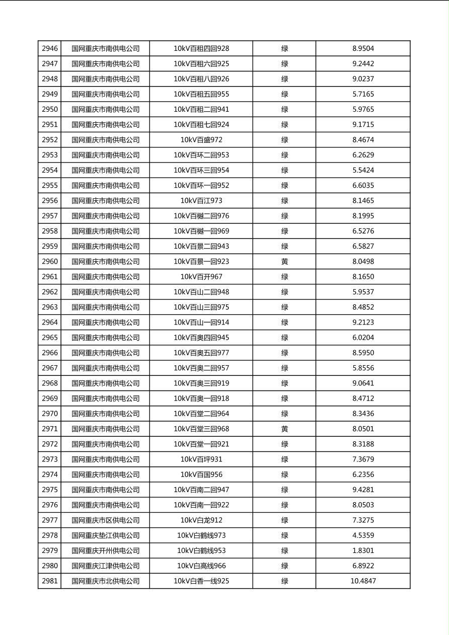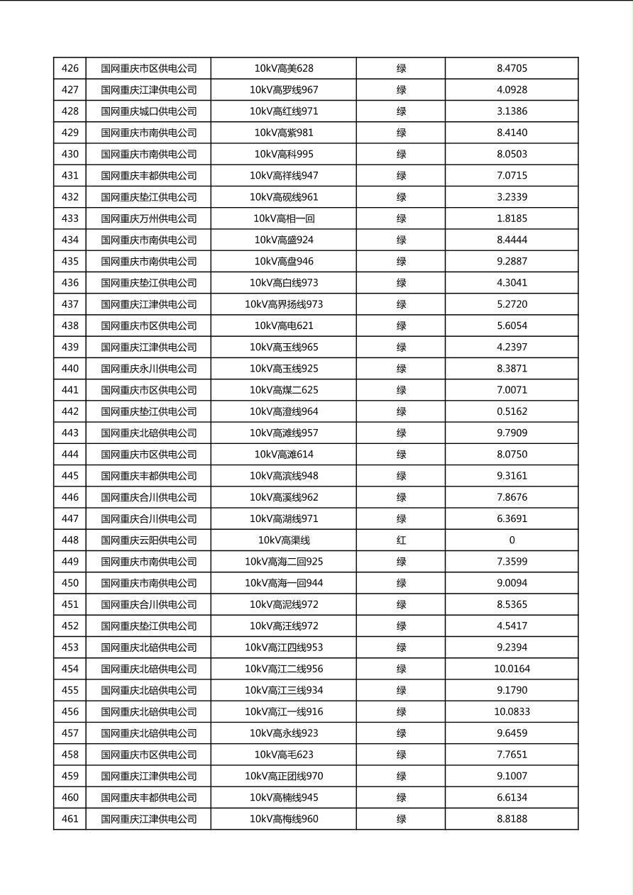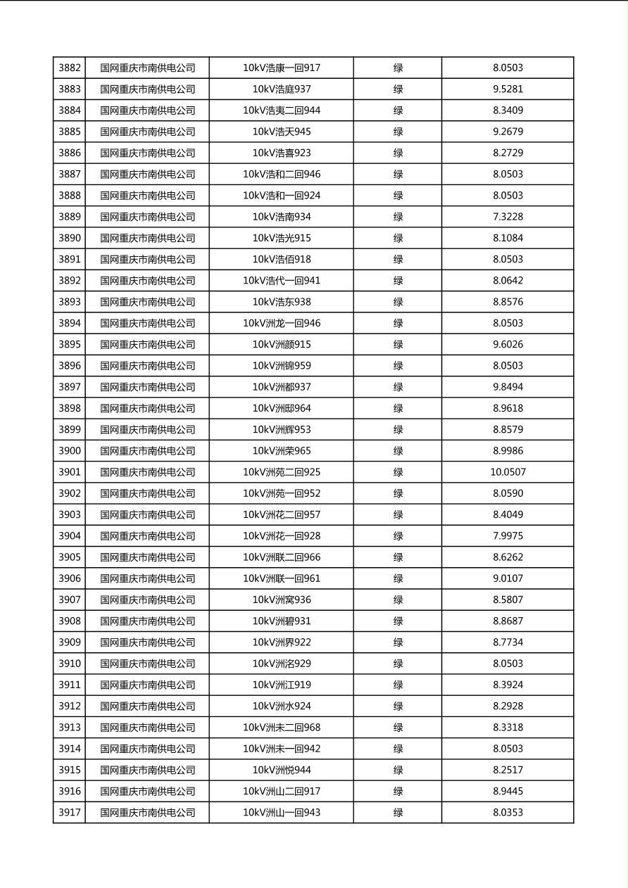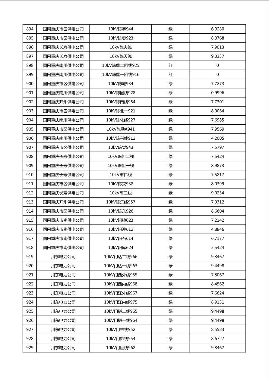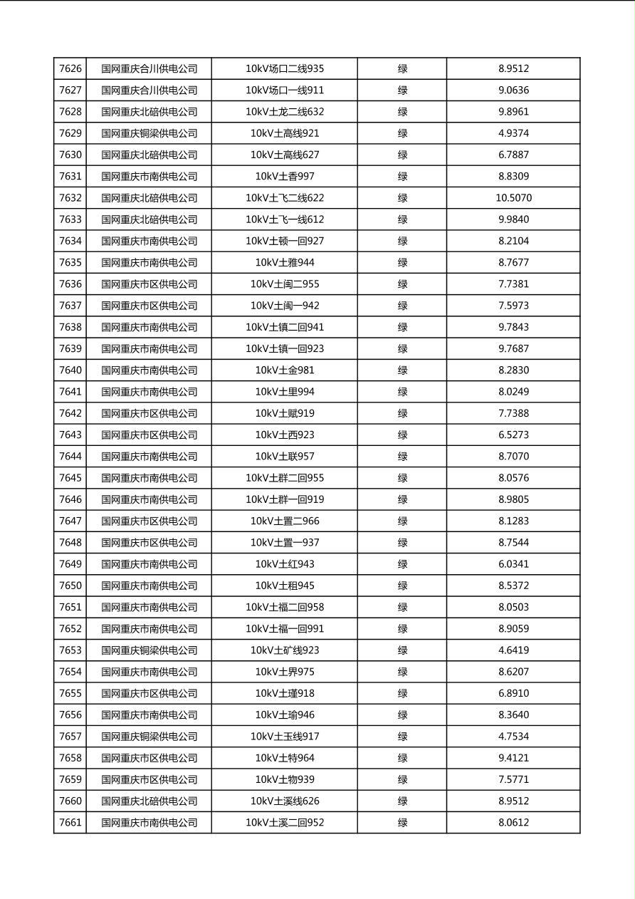 国网重庆市电力公司2026年第1季度分布式光伏可开放容量公示(配线)