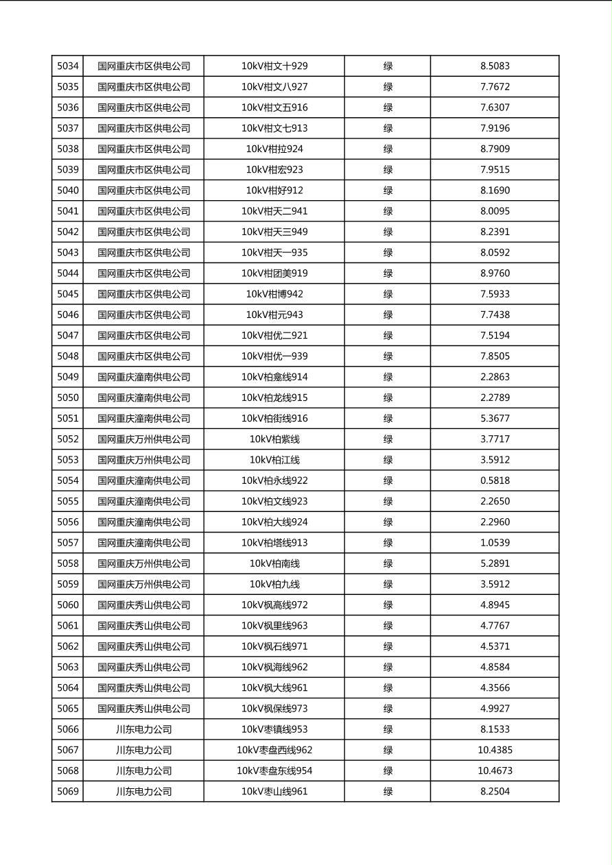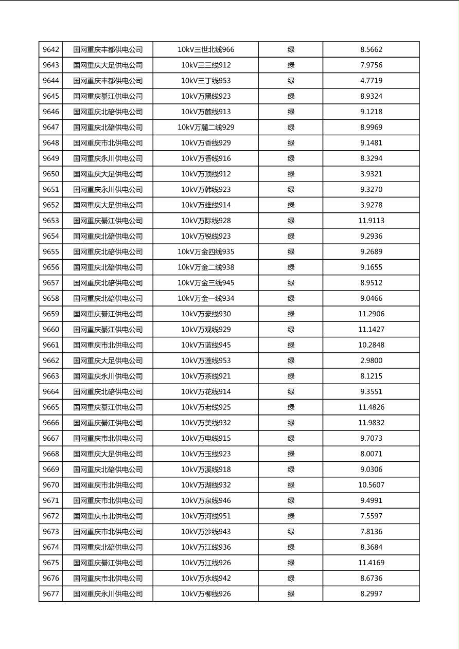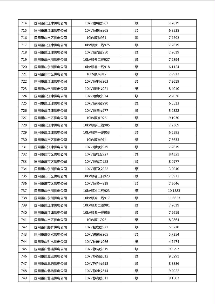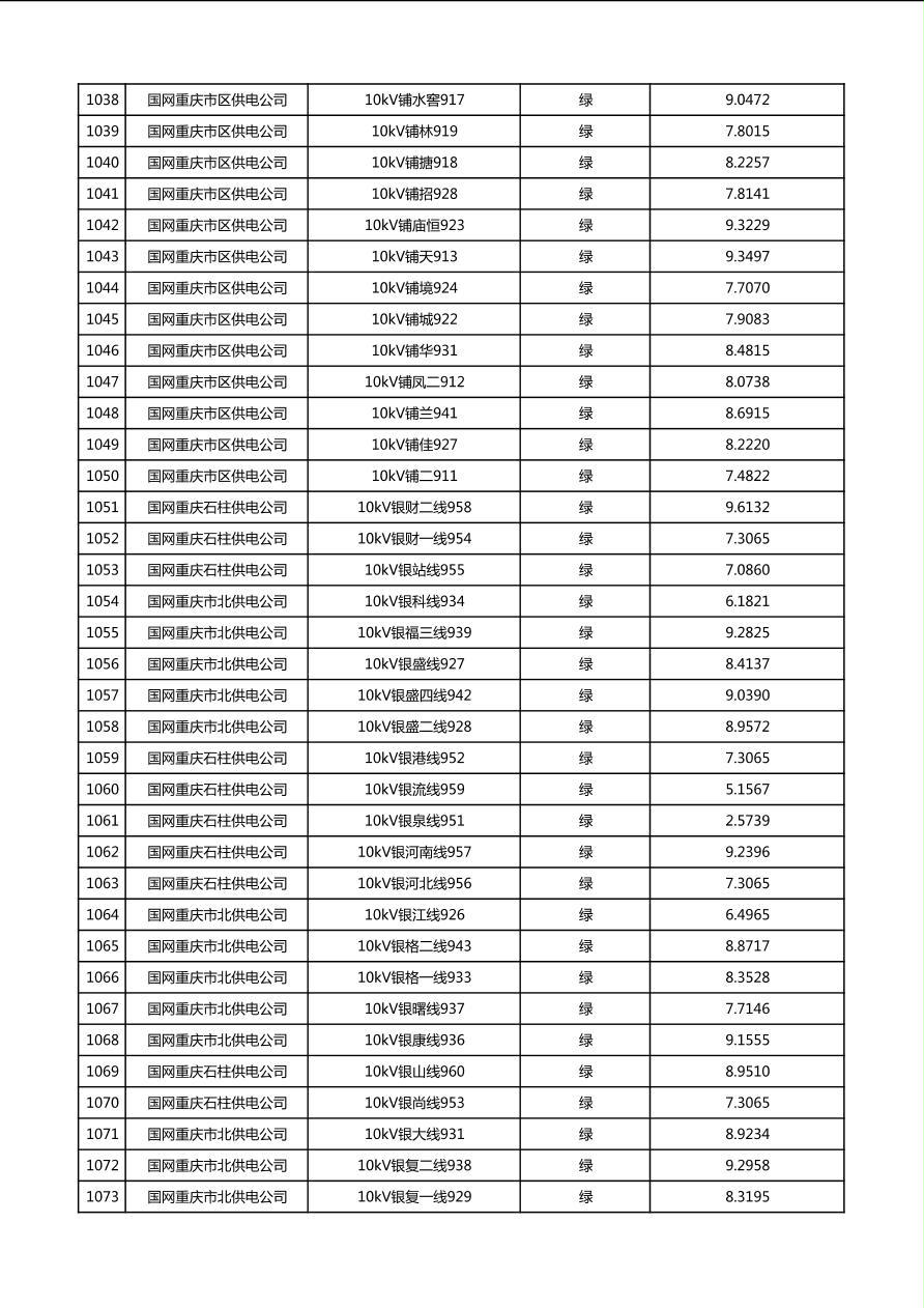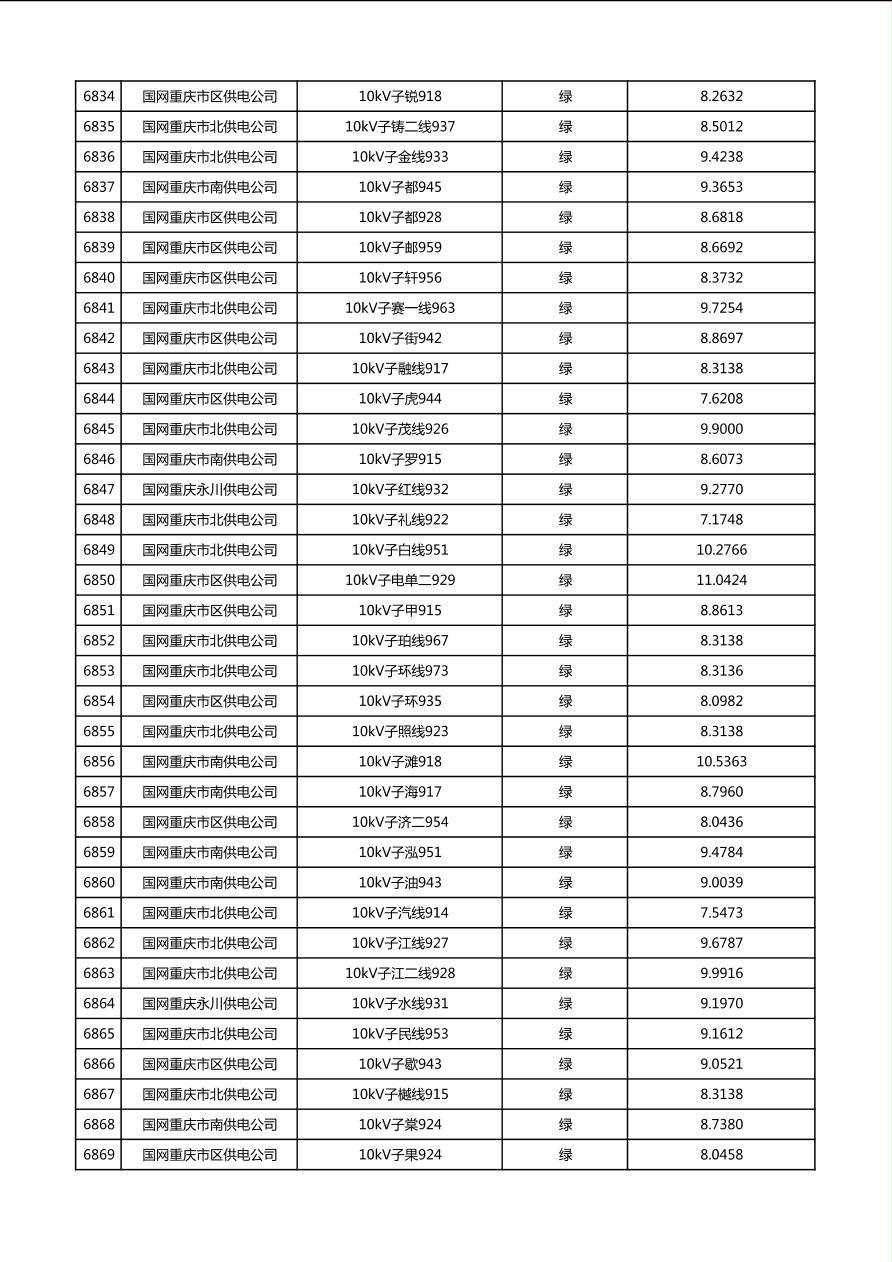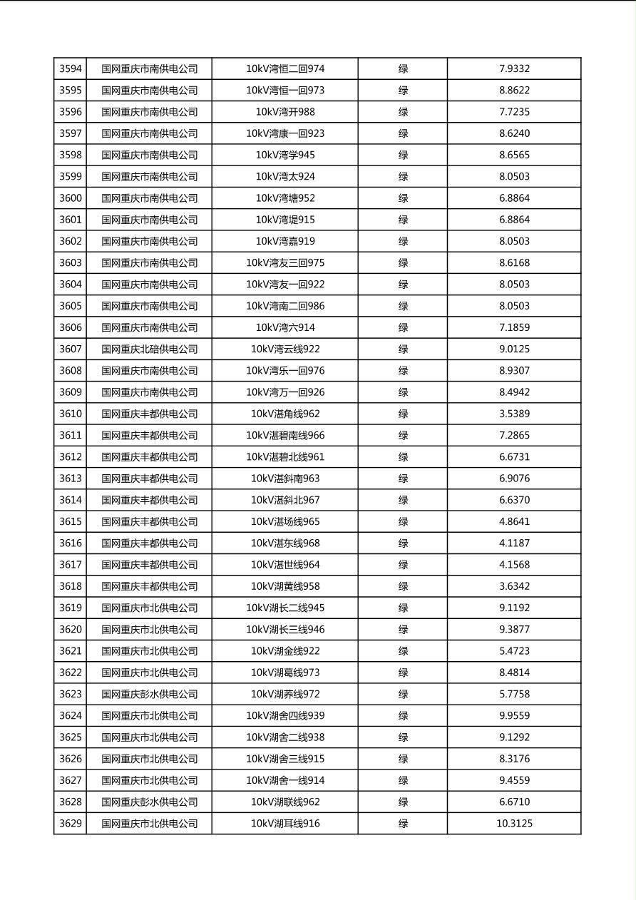 国网重庆市电力公司2026年第1季度分布式光伏可开放容量公示(配线)