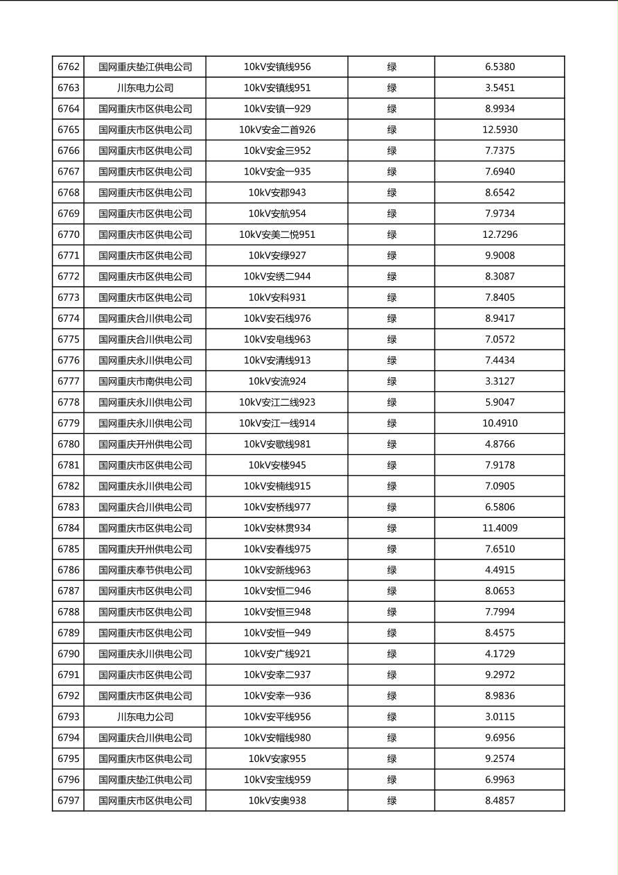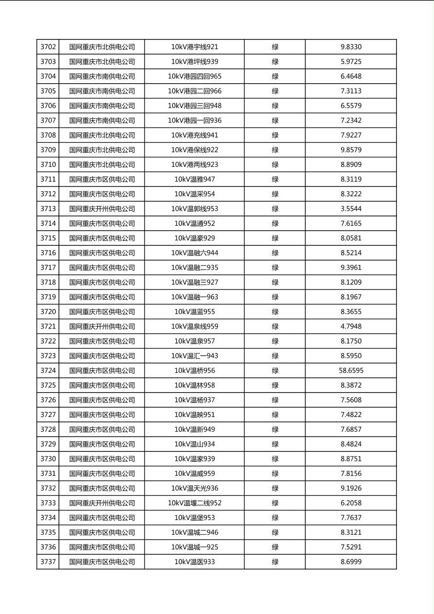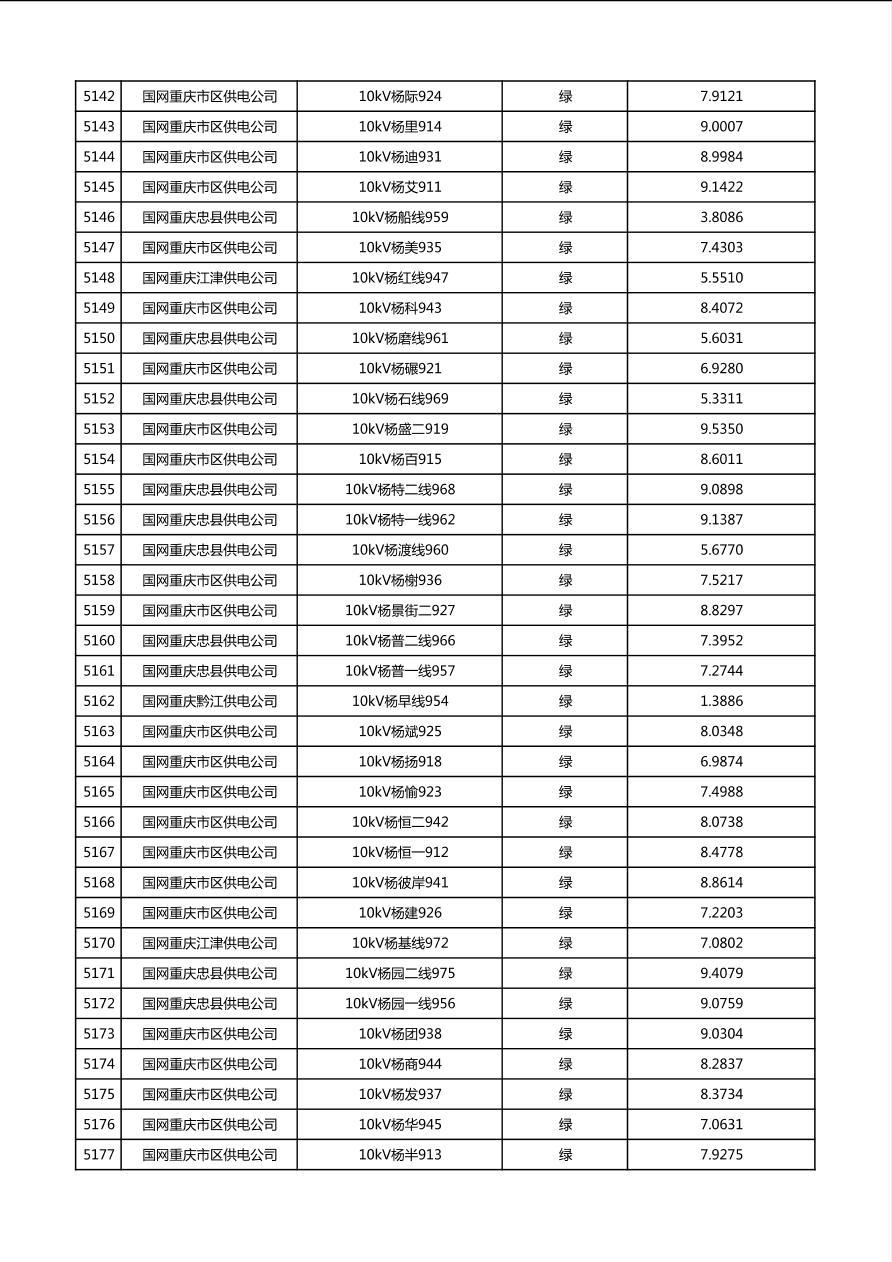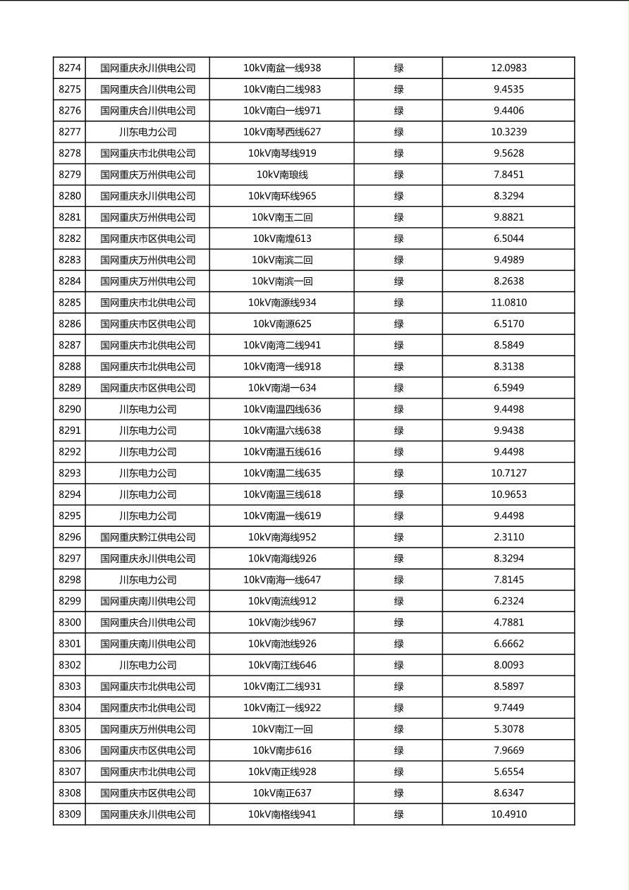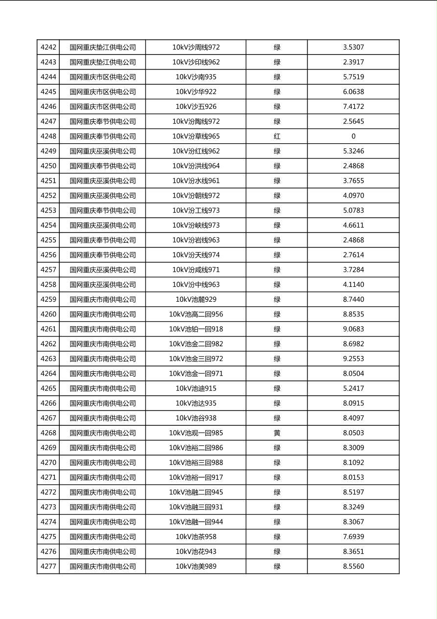 国网重庆市电力公司2026年第1季度分布式光伏可开放容量公示(配线)