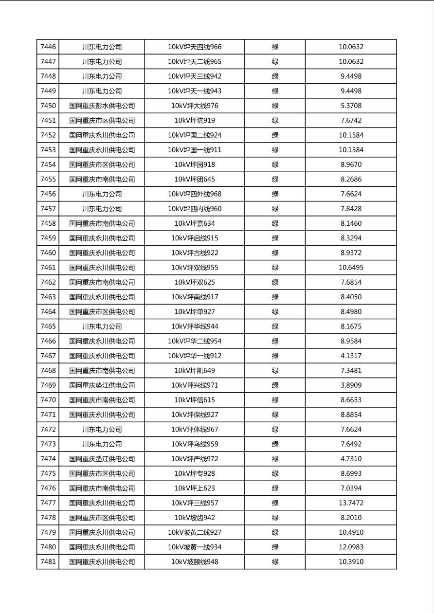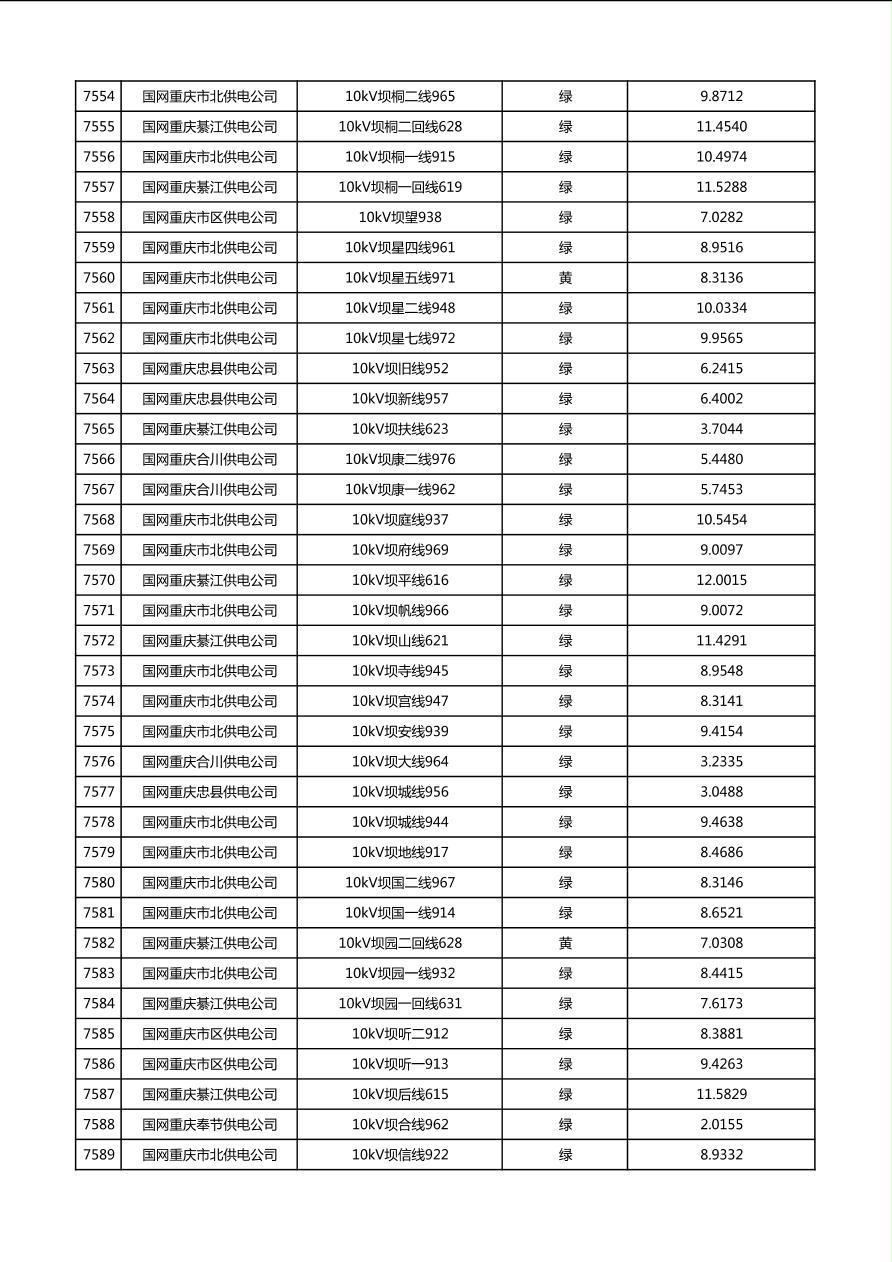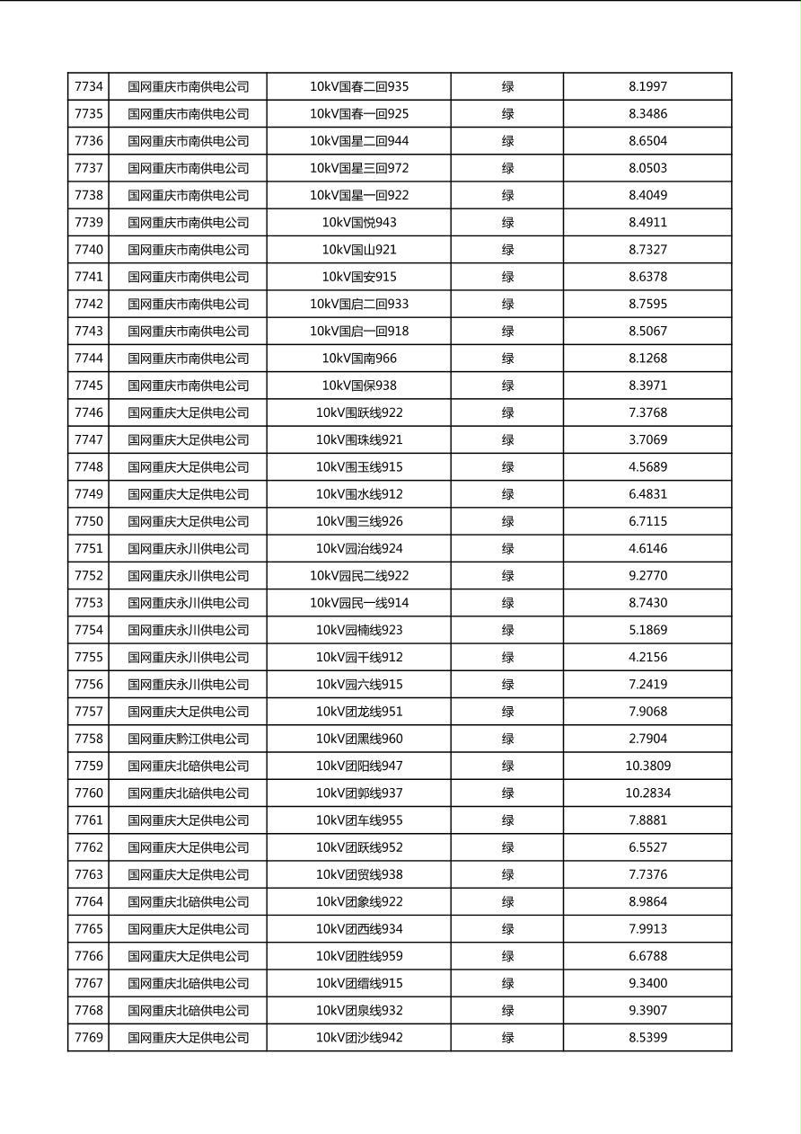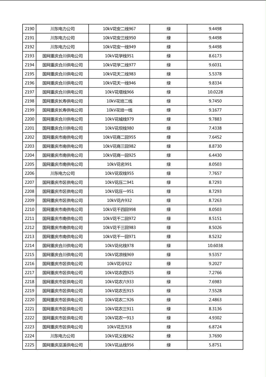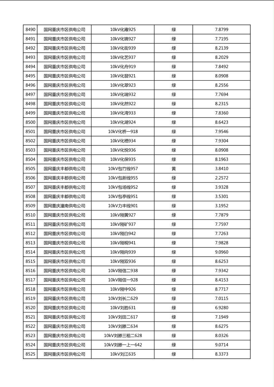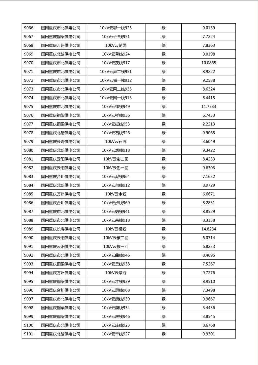 国网重庆市电力公司2026年第1季度分布式光伏可开放容量公示(配线)
