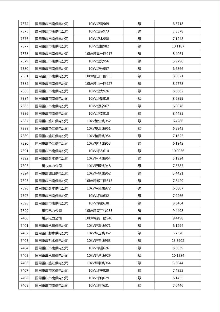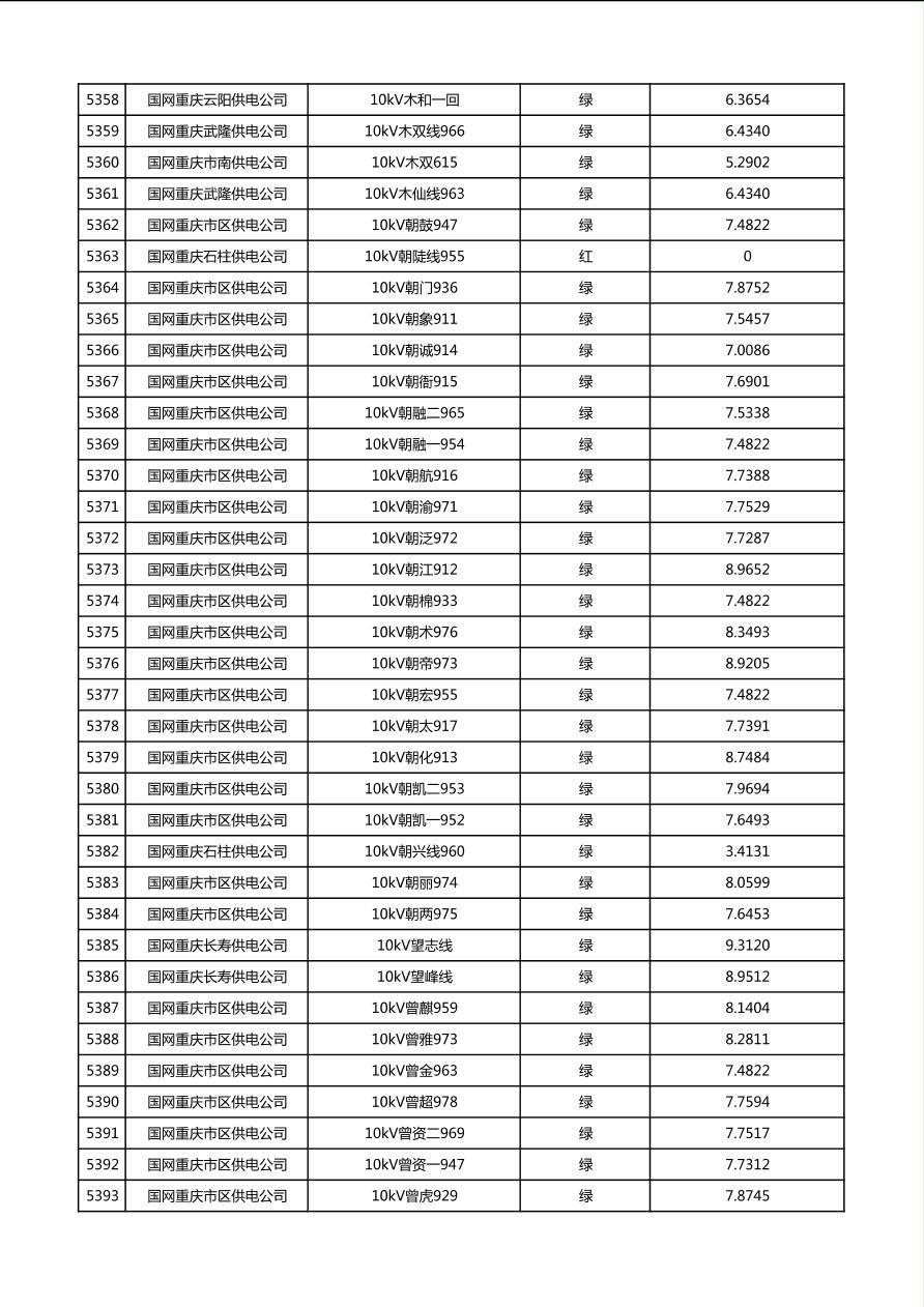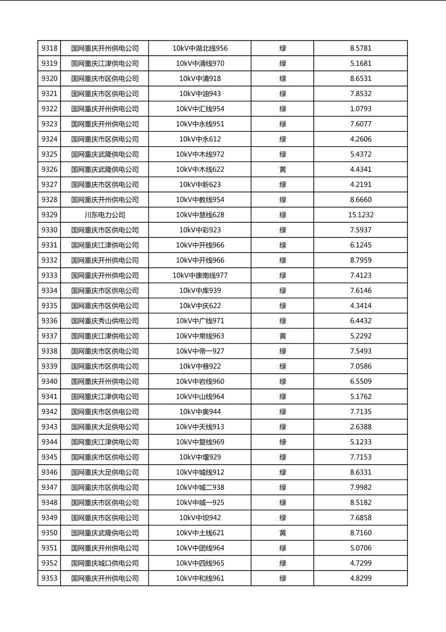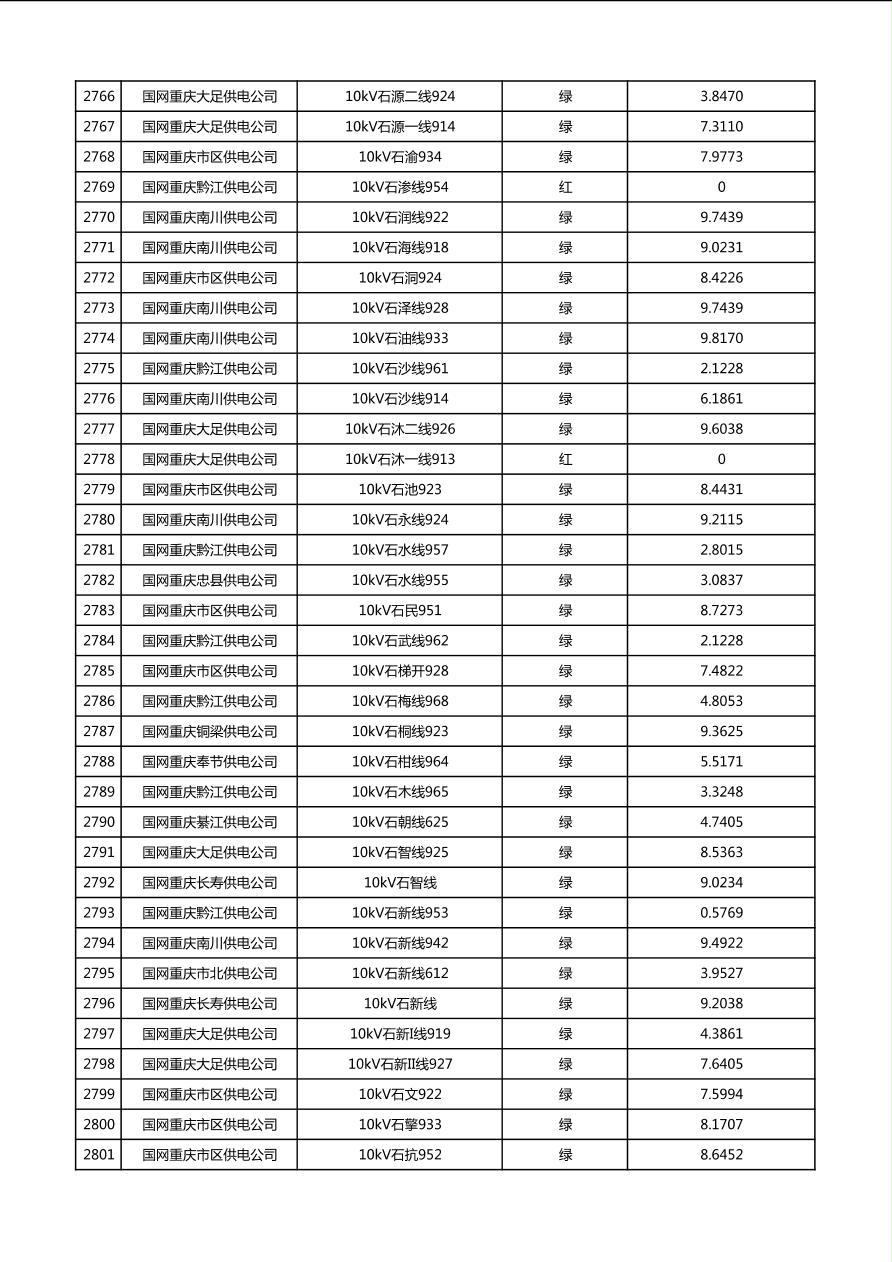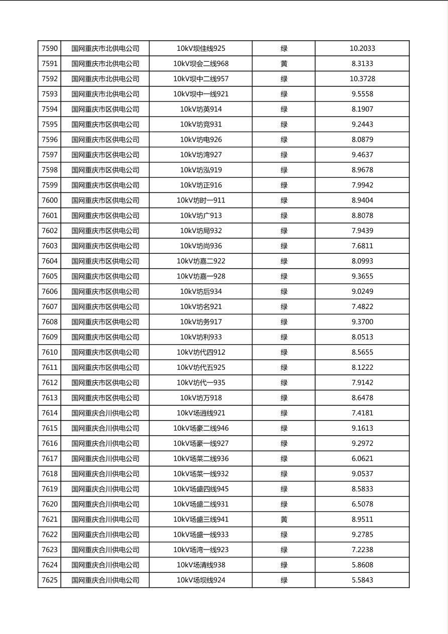 国网重庆市电力公司2026年第1季度分布式光伏可开放容量公示(配线)