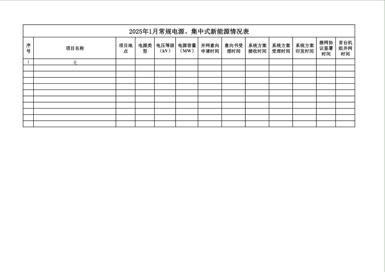 2025年1月常规电源、集中式新能源情况表