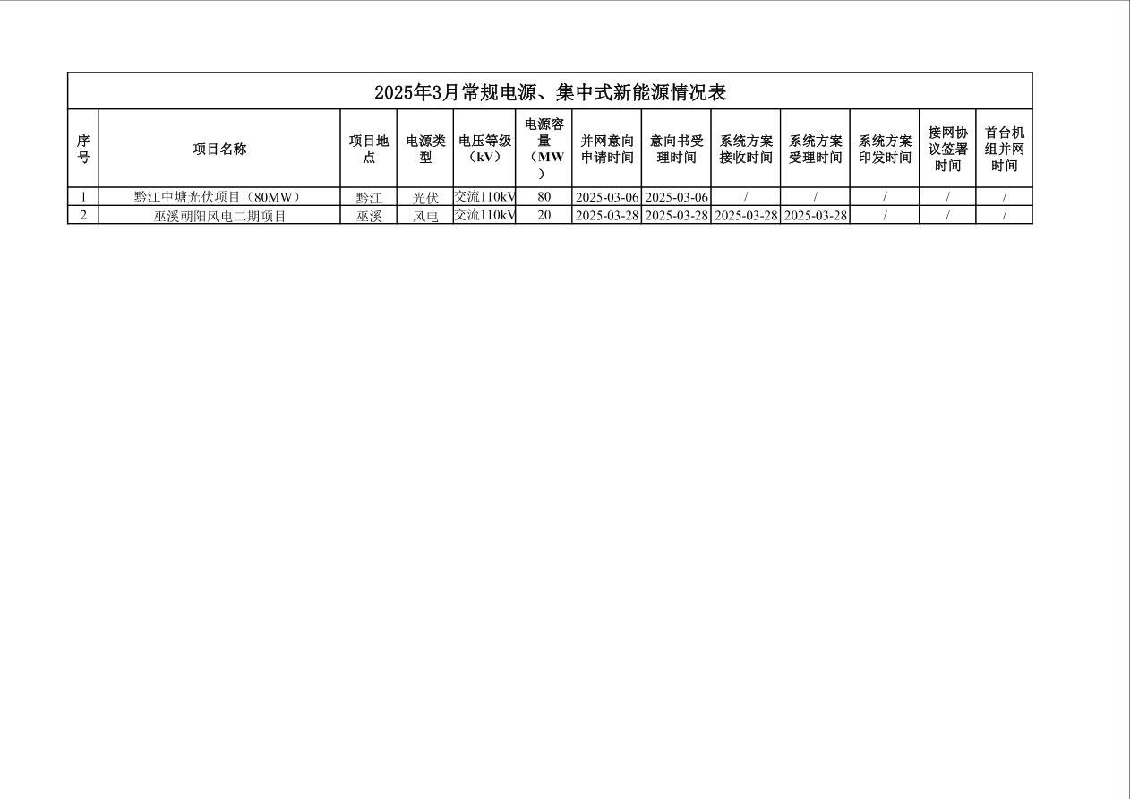 2025年3月常规电源、集中式新能源情况表
