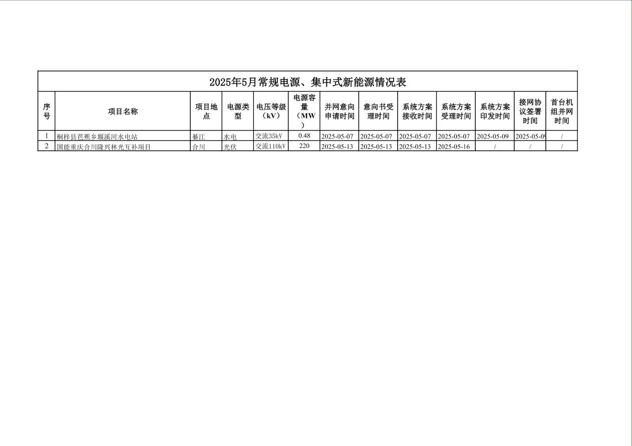 2025年5月常规电源、集中式新能源情况表